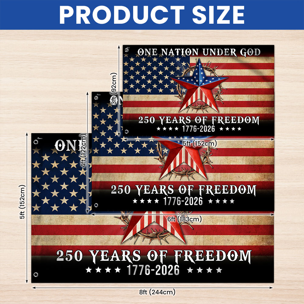 One Nation Under God Patriotic 250 Years Flag, American 1776 2026 Grommet Flag