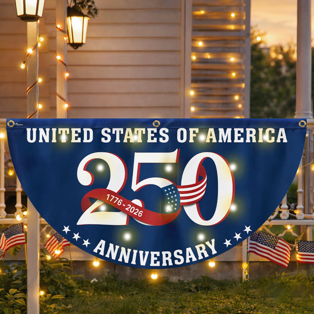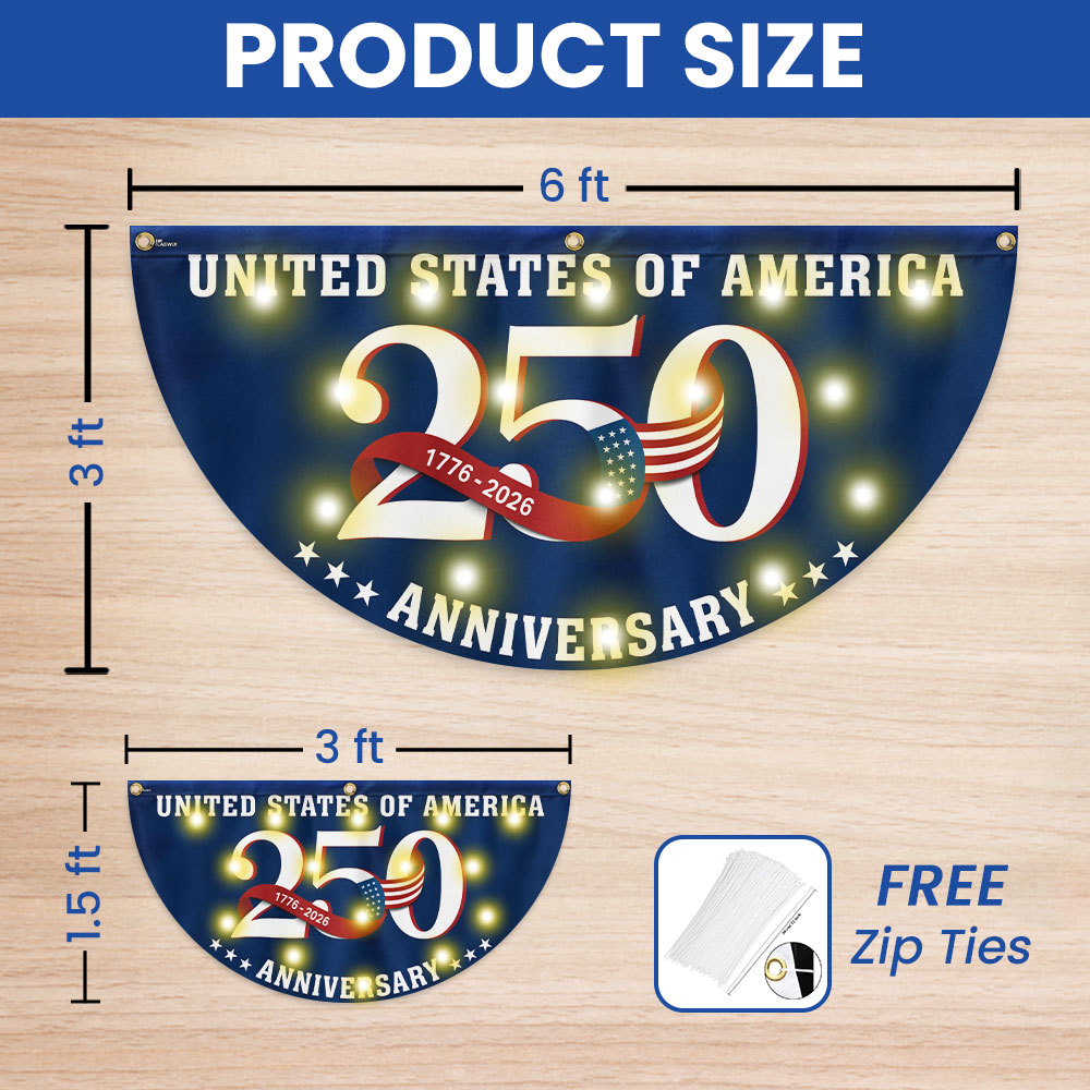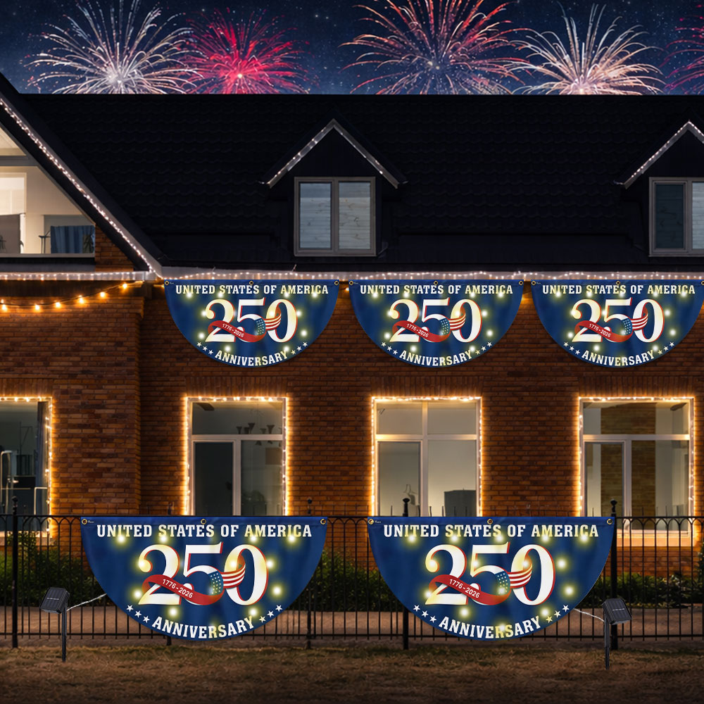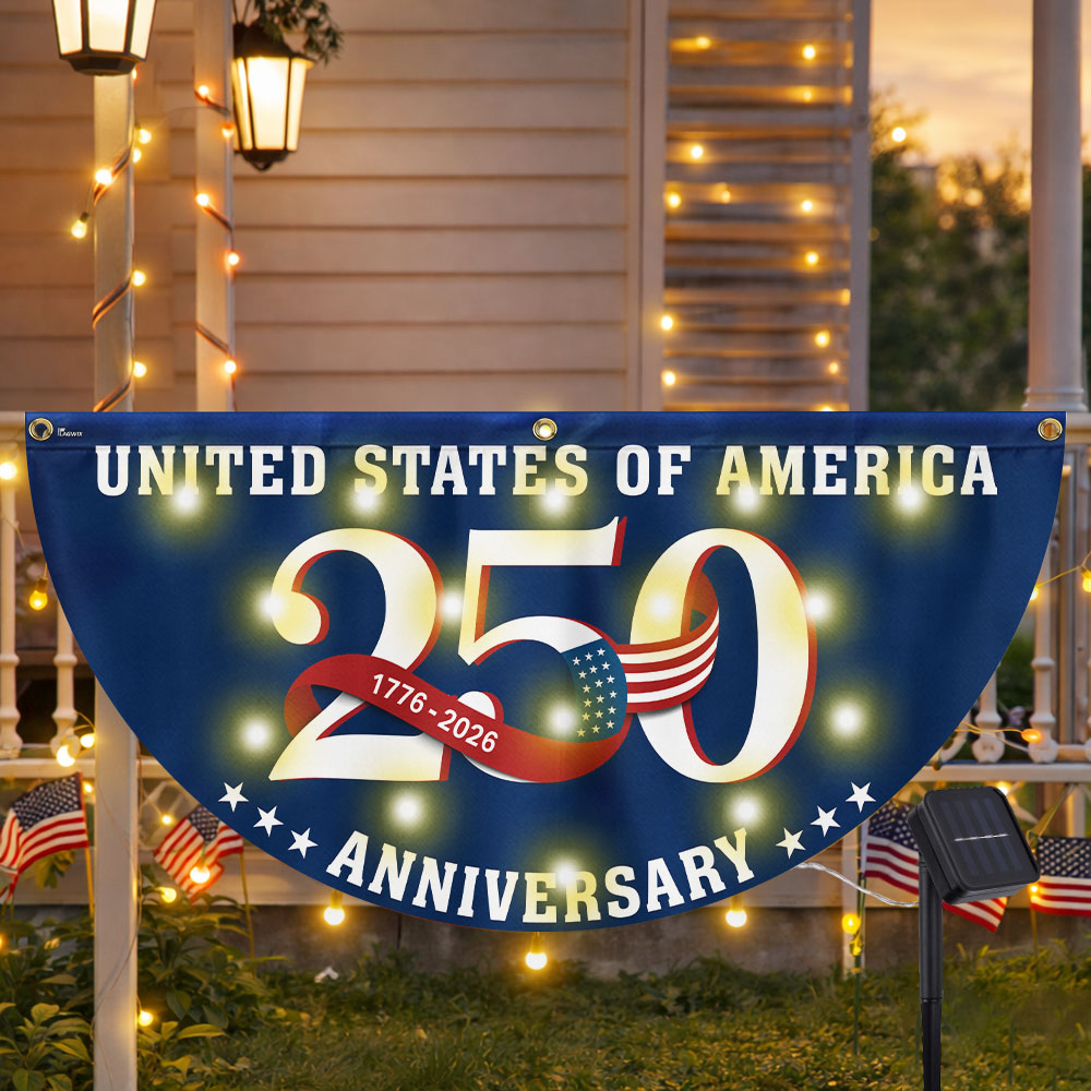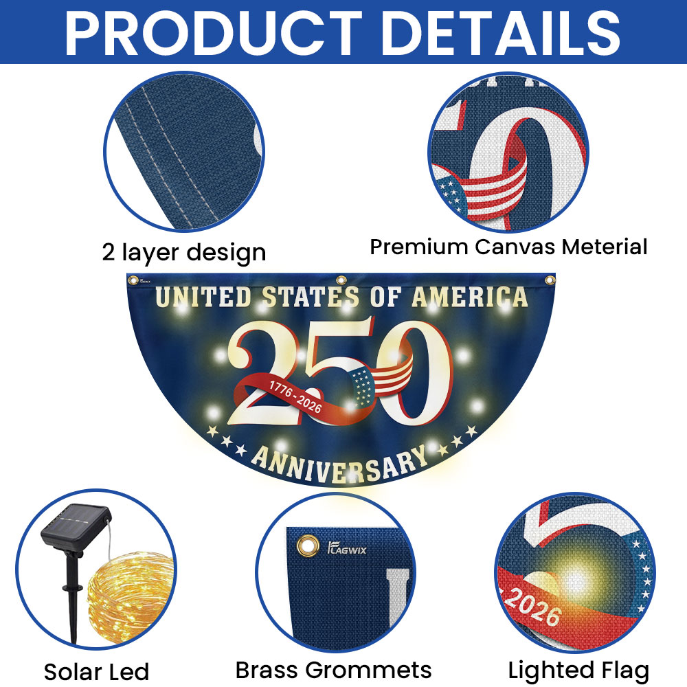 Patriotic 250 Years 1776 2026 Flag Decor, America Semiquincentennial Solar Led Fan Flag