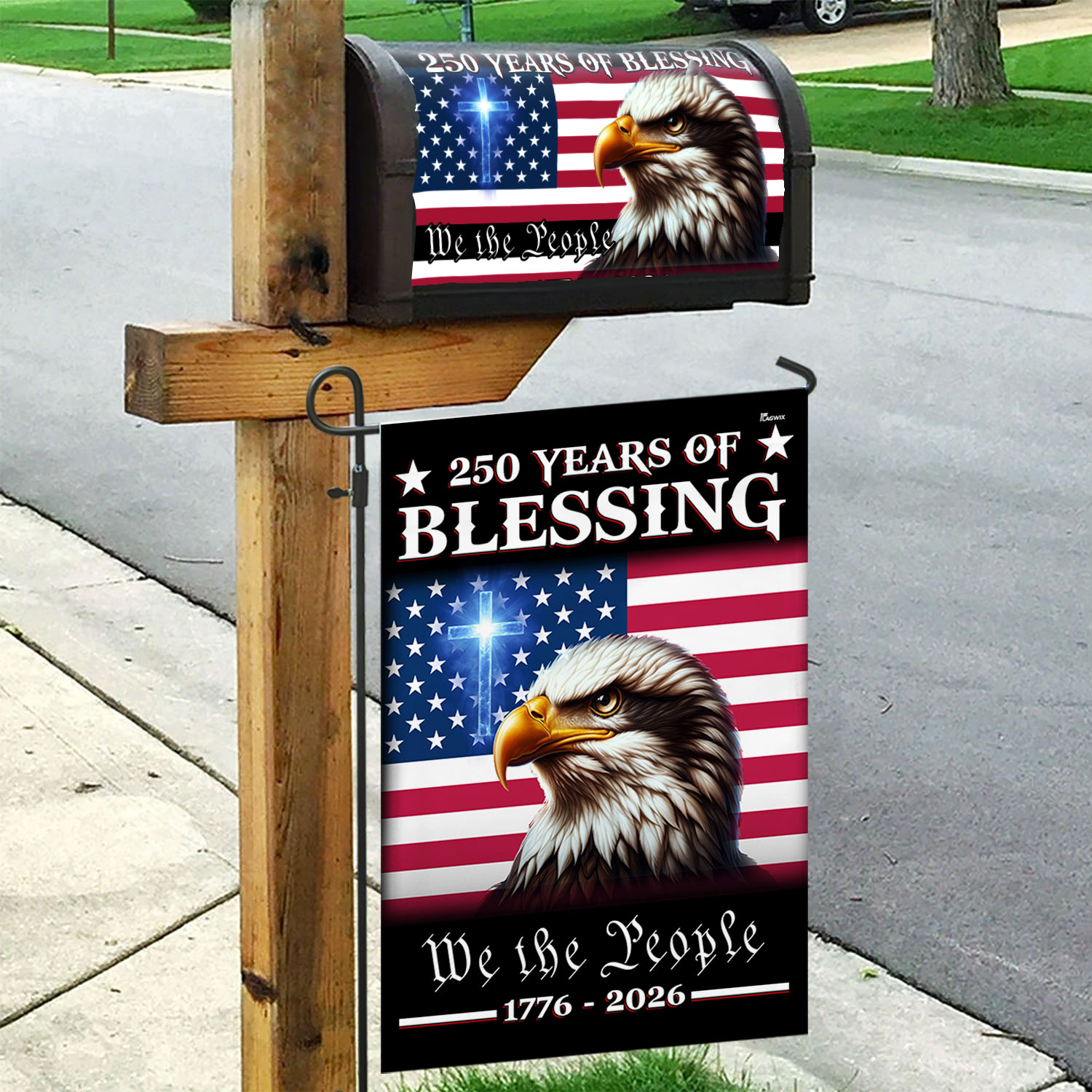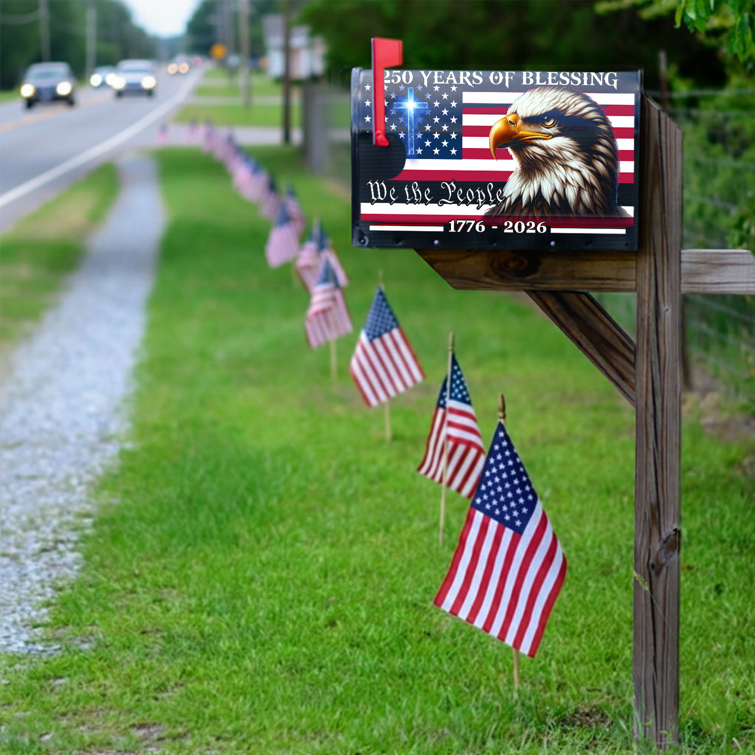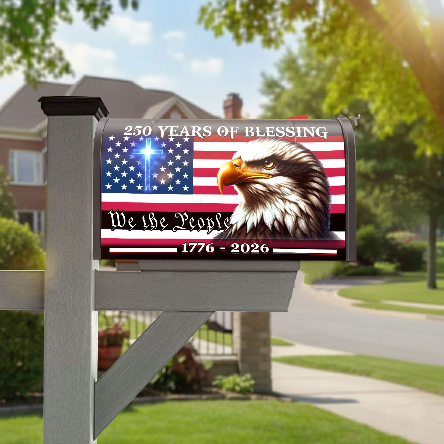 Patriotic 250 Years of Blessing, 1776 2026 American Flag Mailbox Cover