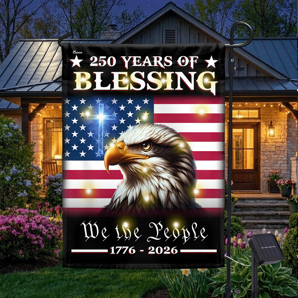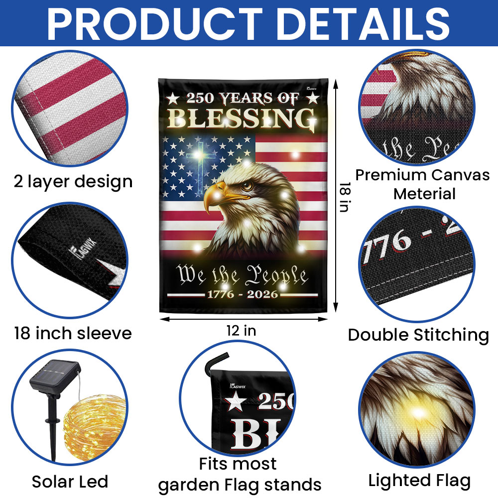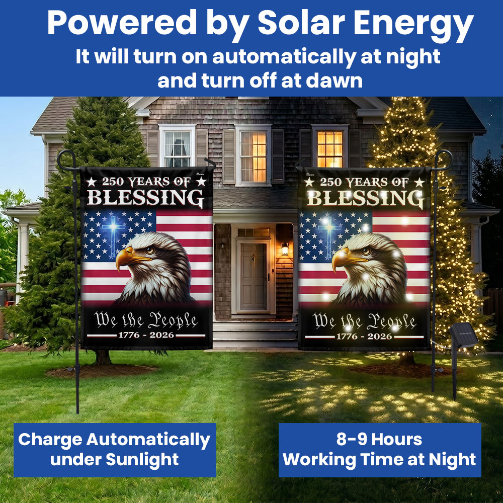 Patriotic 250 Years of Blessing 1776 2026 Flag, We The People American Solar LED Flag Outdoor Decor