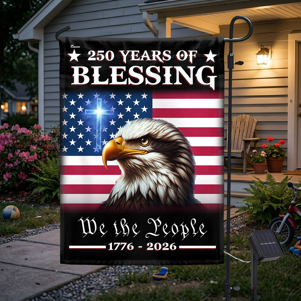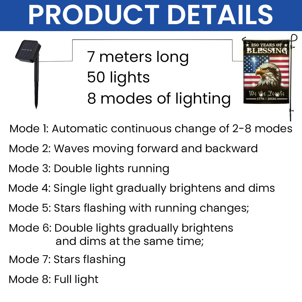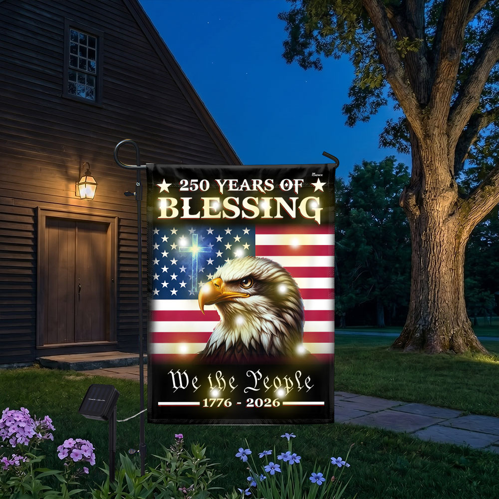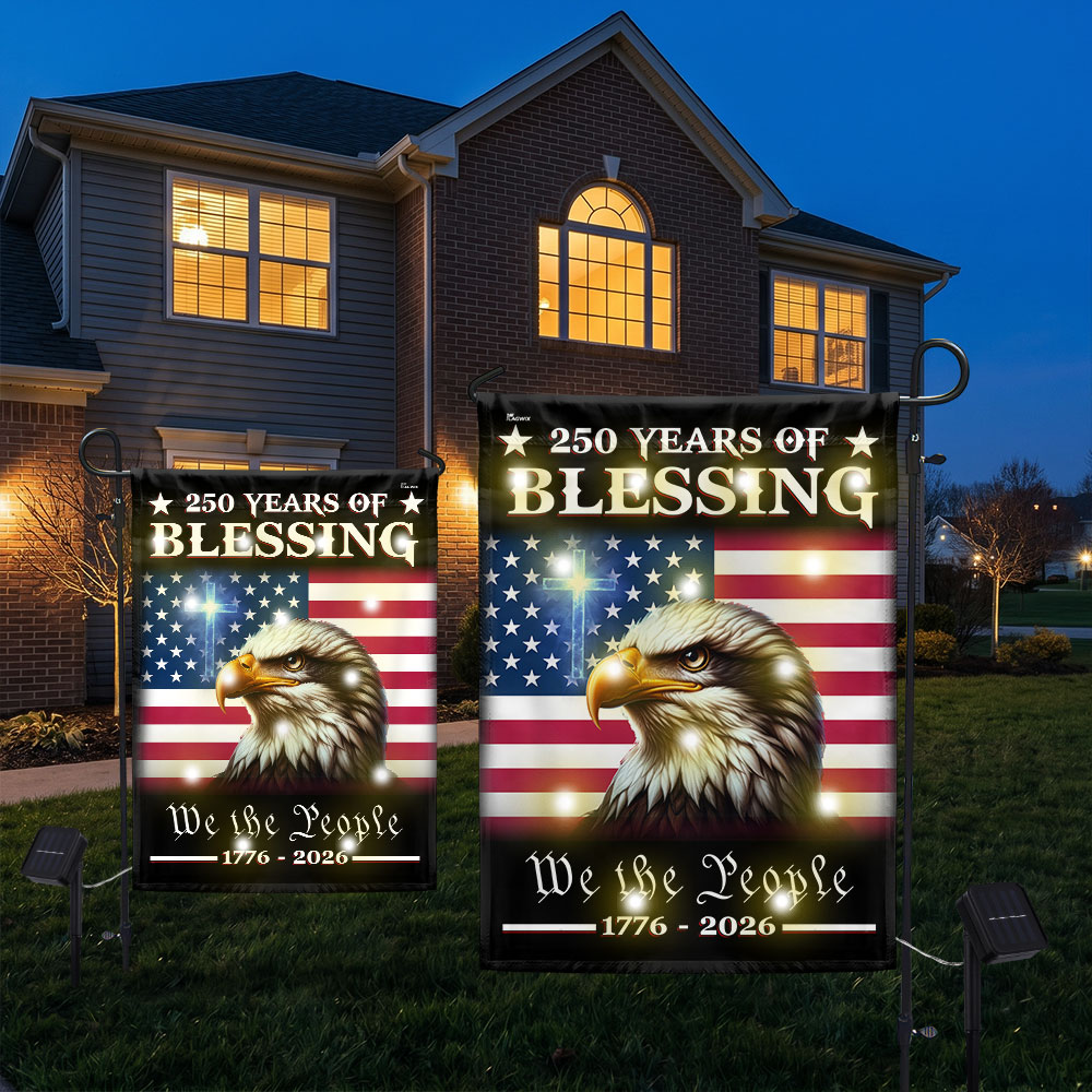 Patriotic 250 Years of Blessing 1776 2026 Flag, We The People American Solar LED Flag Outdoor Decor