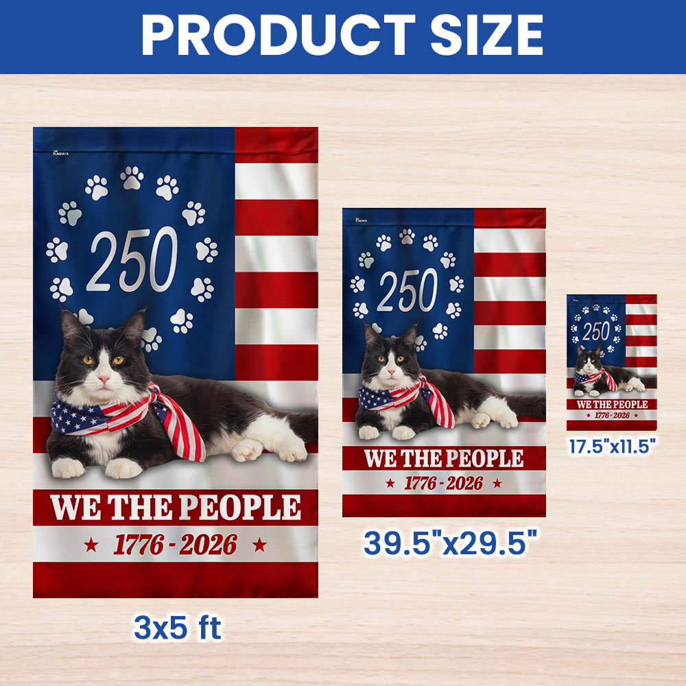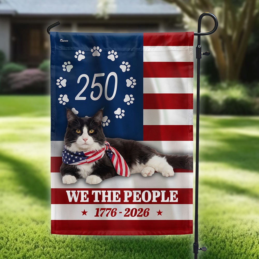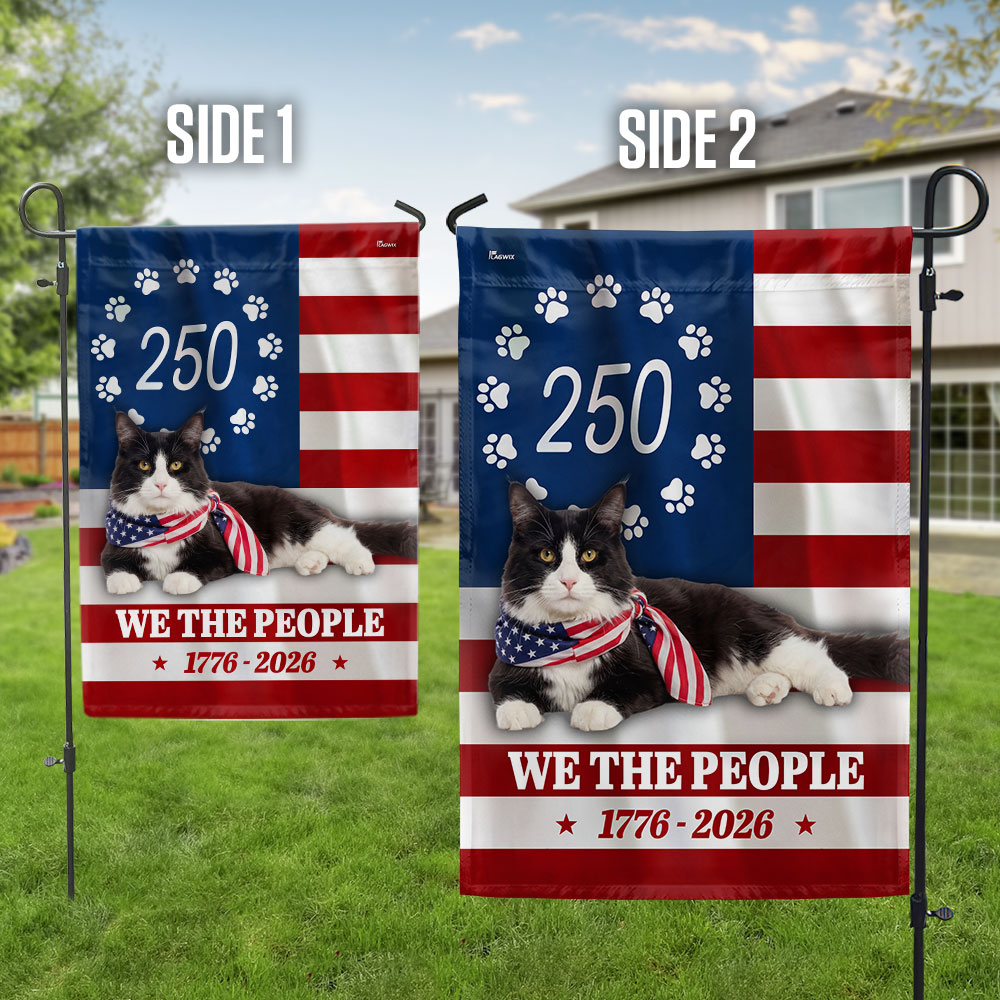 Patriotic American Cat Garden Flag, 250 Years We The People 1776 2026 Flag Decor
