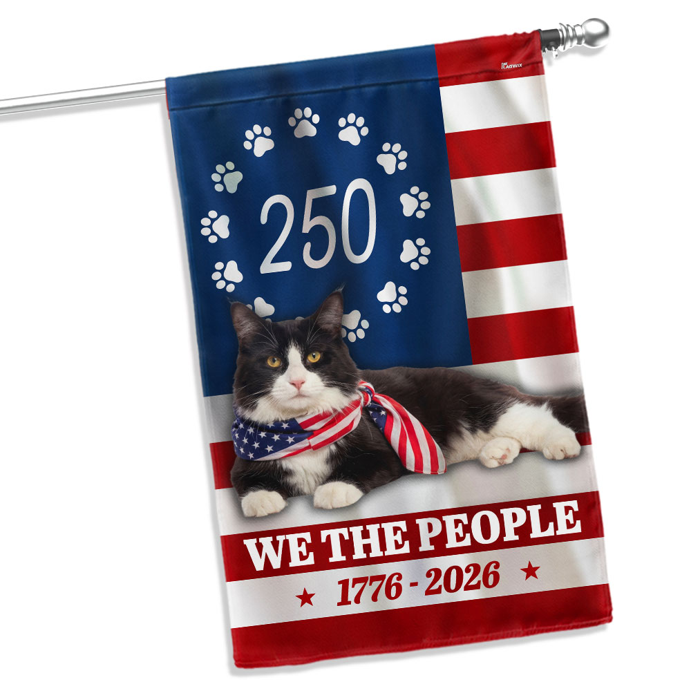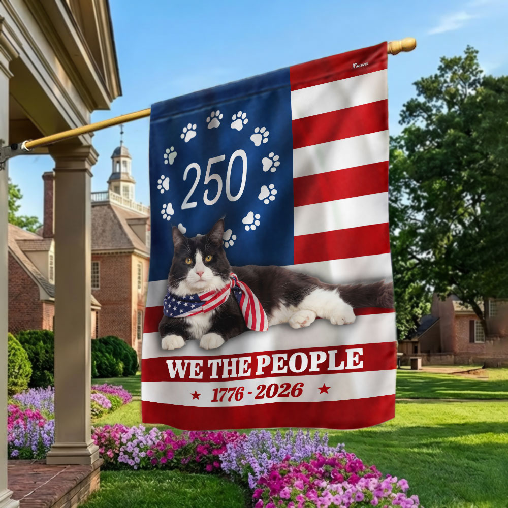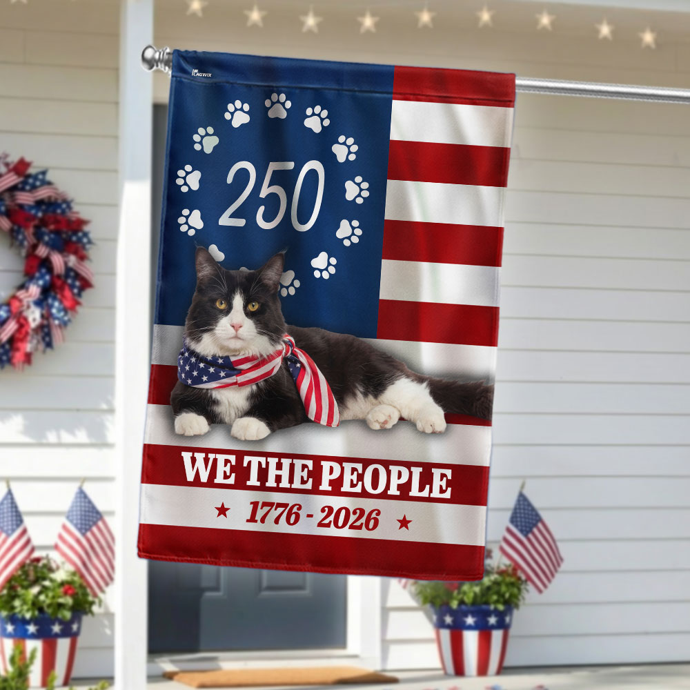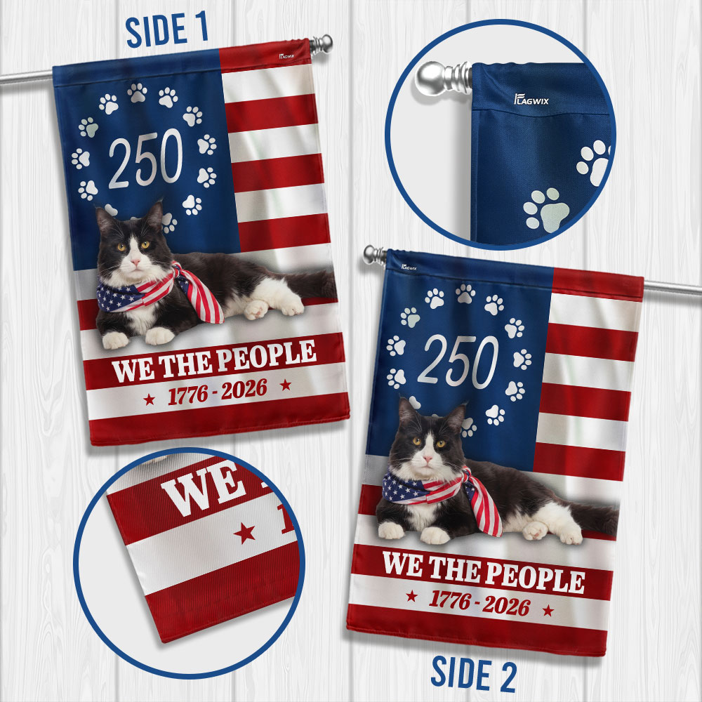 Patriotic American Cat Garden Flag, 250 Years We The People 1776 2026 Flag Decor