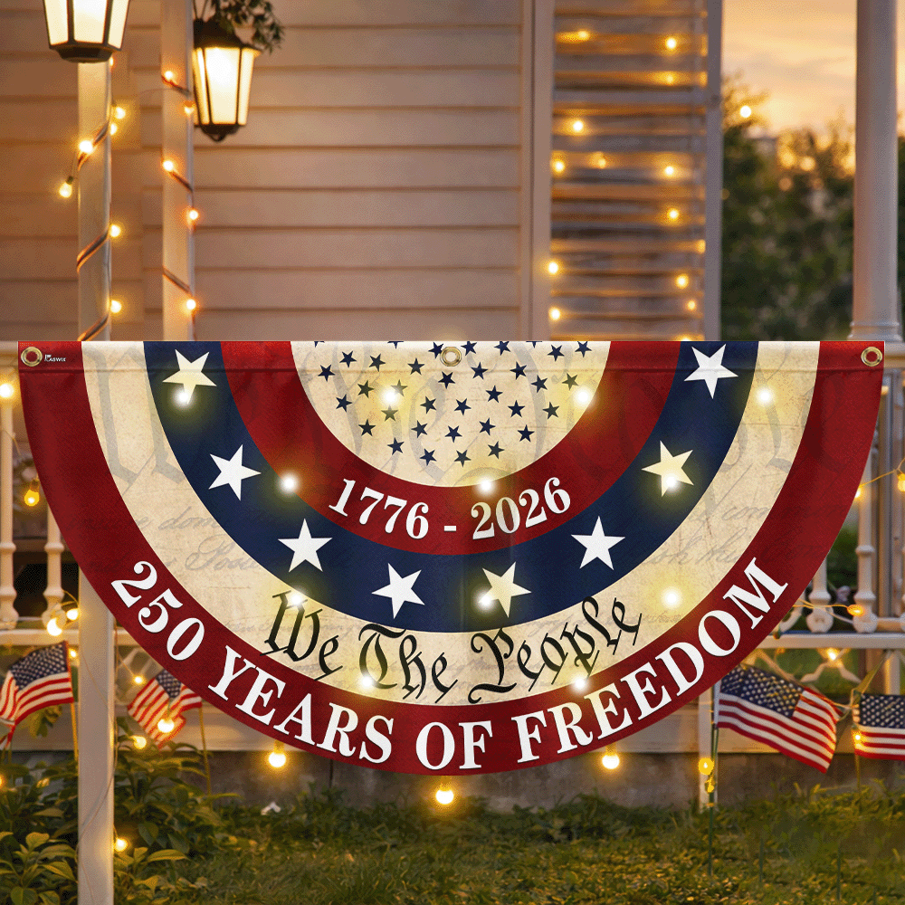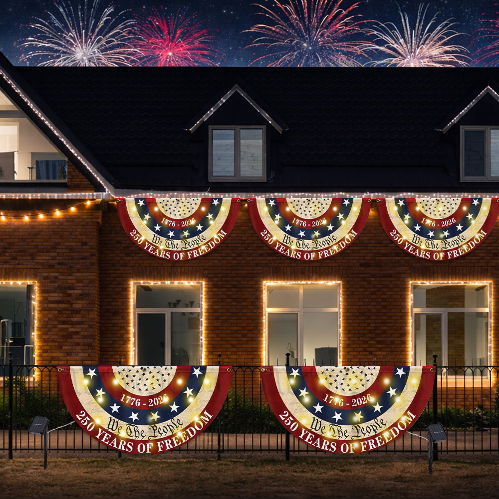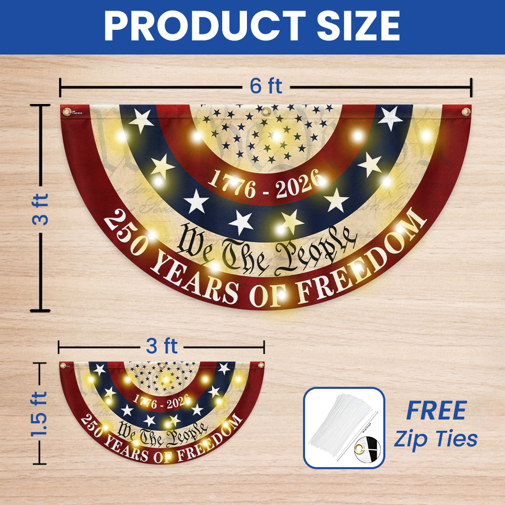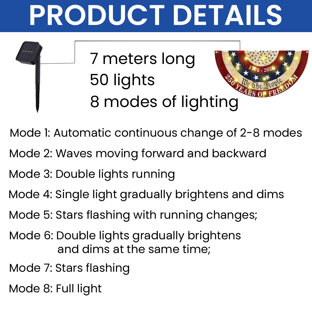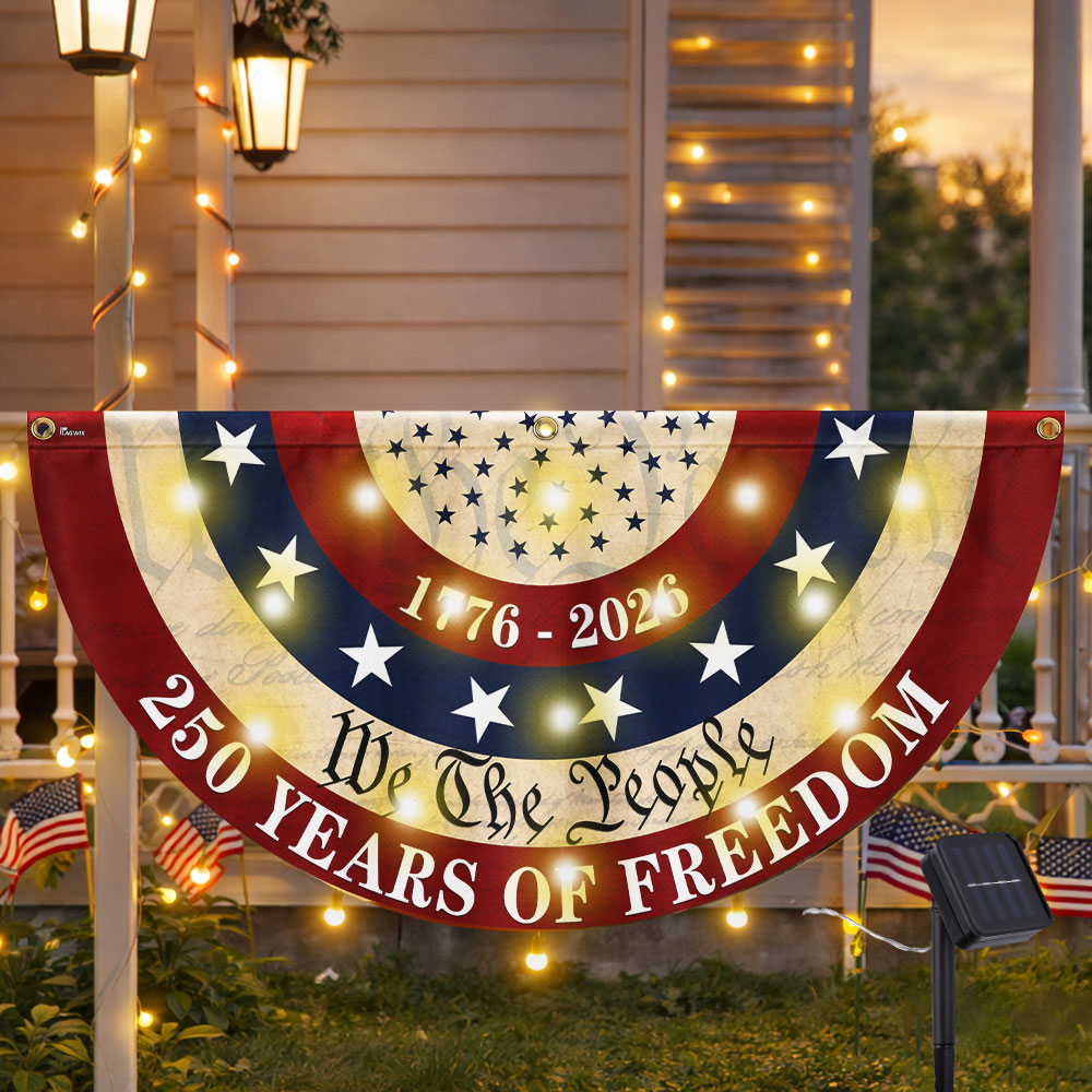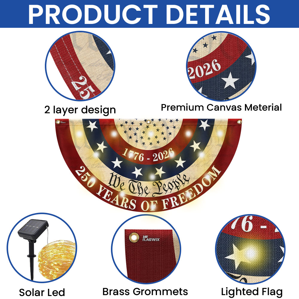 Patriotic American Fan Flag, 250 Years of Freedom 1776 2026 Solar Led Flag Decor