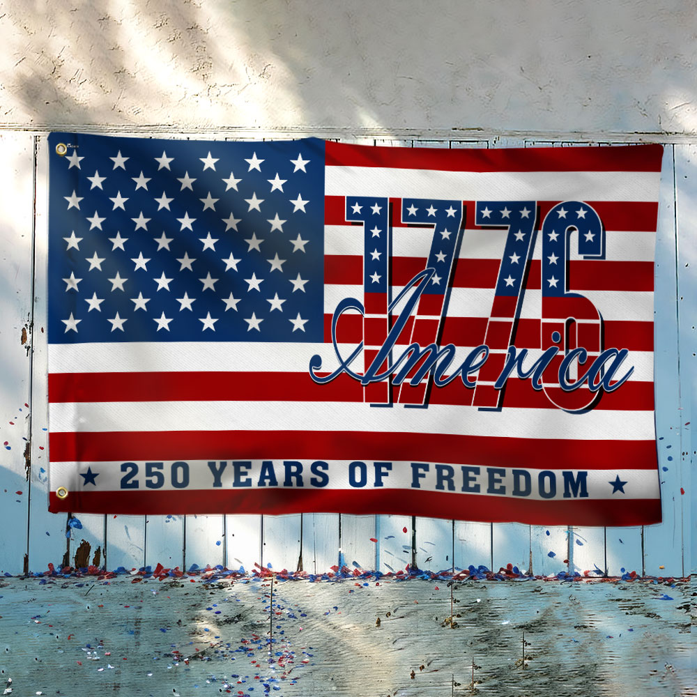 Patriotic American Flag, 1776 America 250 Years of Freedom Grommet Flag