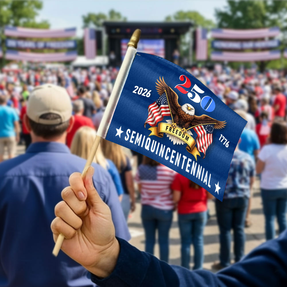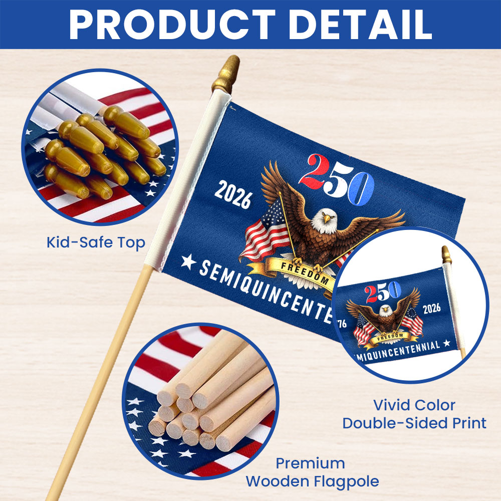 Patriotic American Flag, 250 Years of Freedom 1776 2026 Handheld Flag