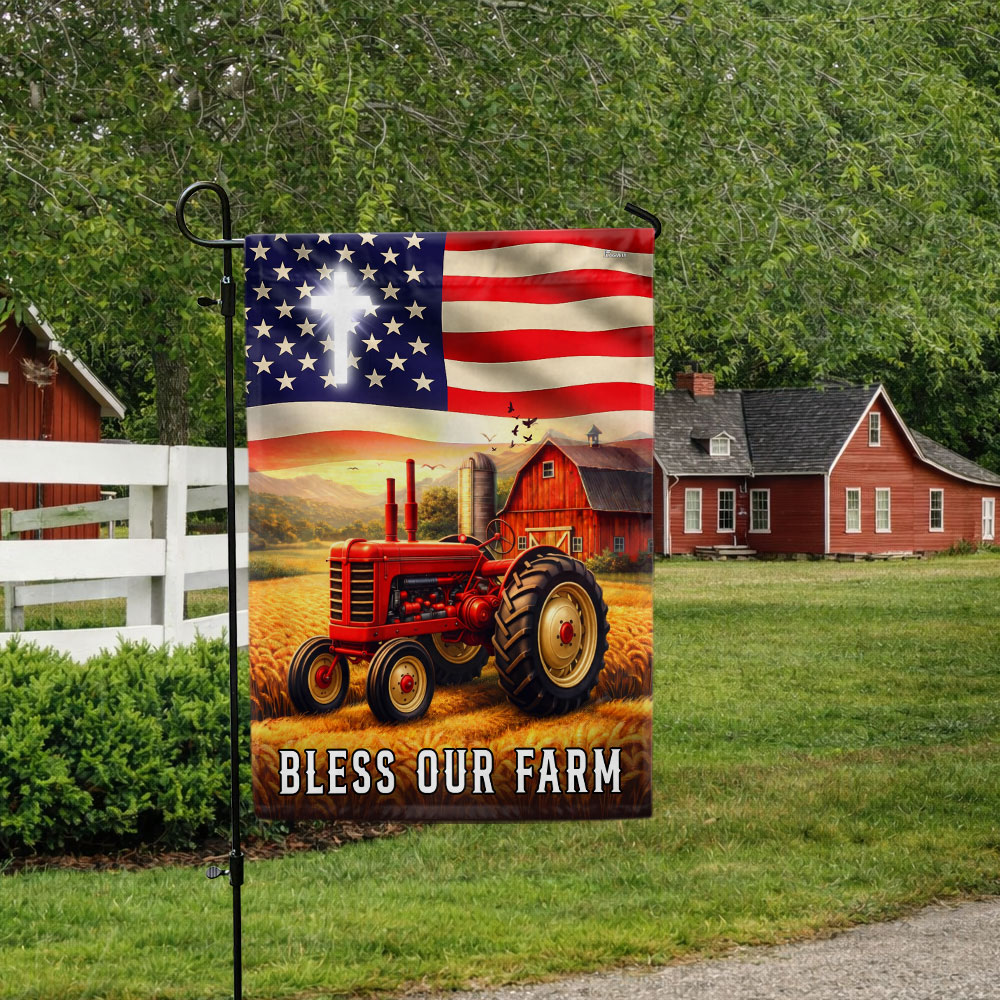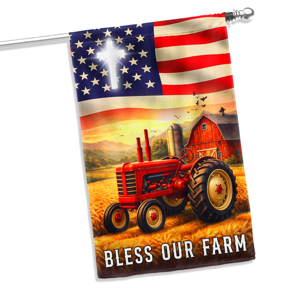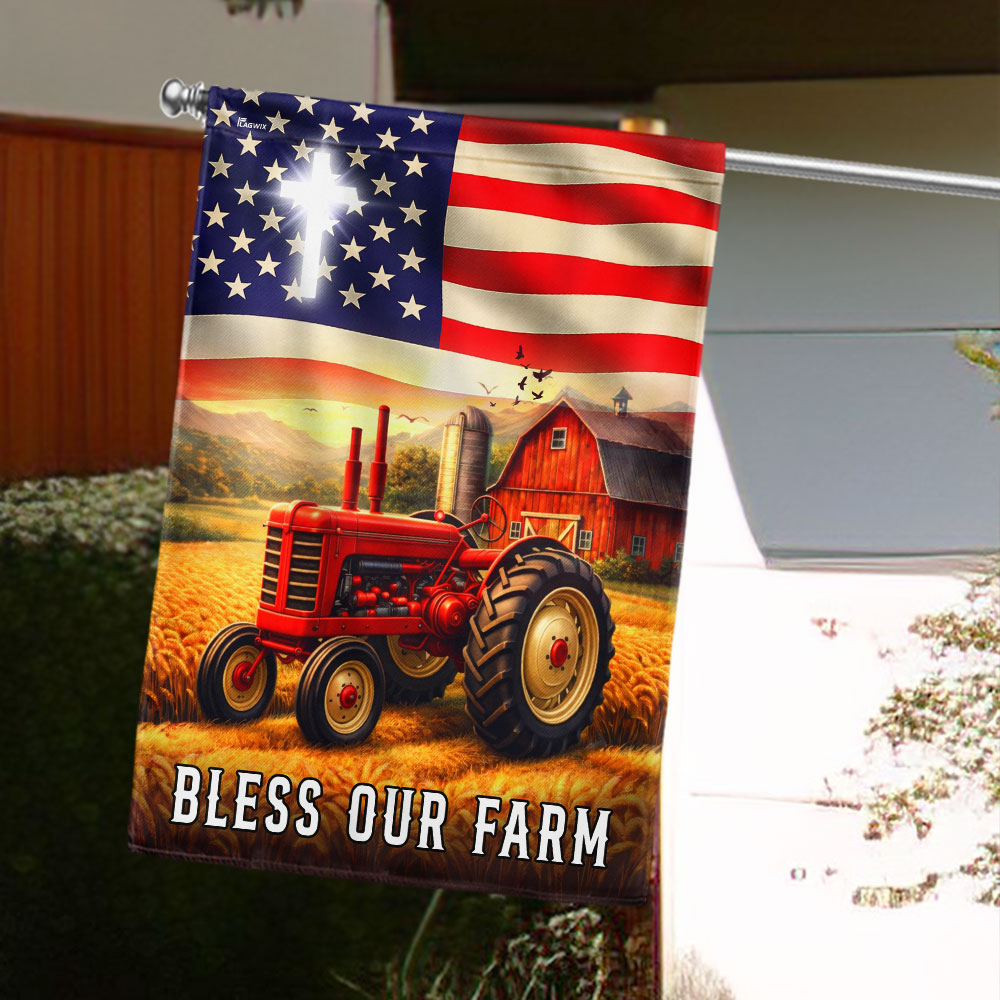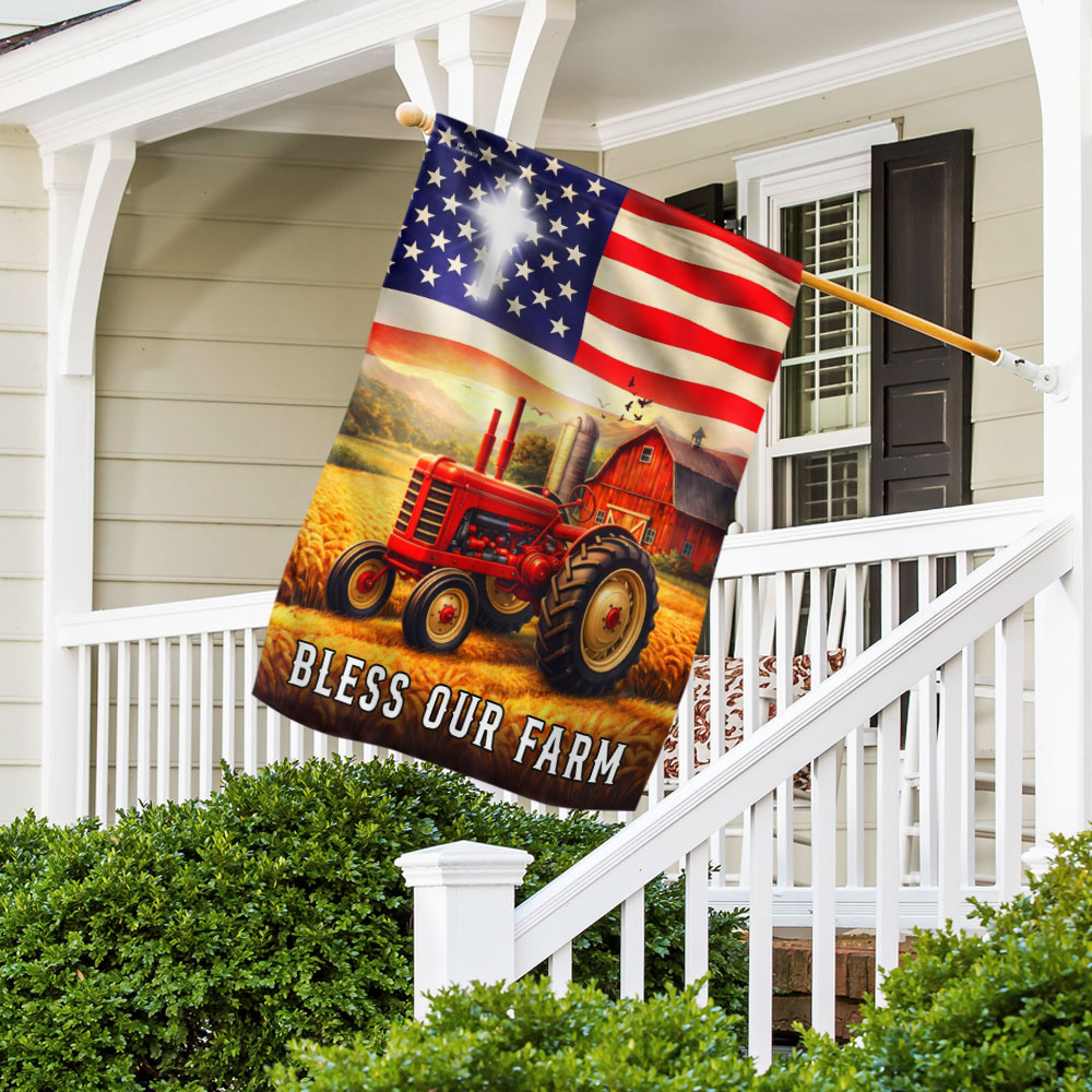 Patriotic Bless Our Farm Outdoor Flag, Tractor Red Barn American Flag