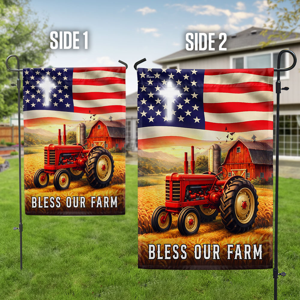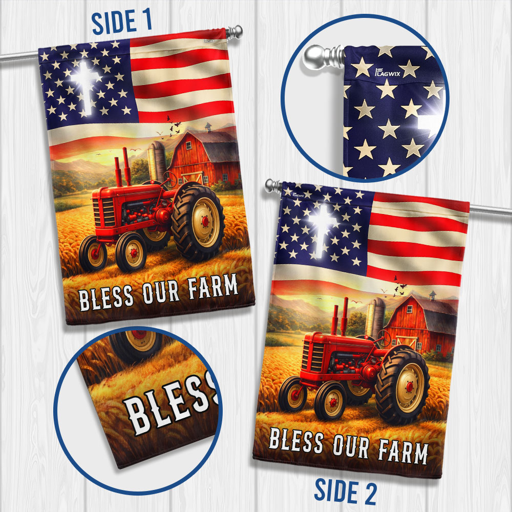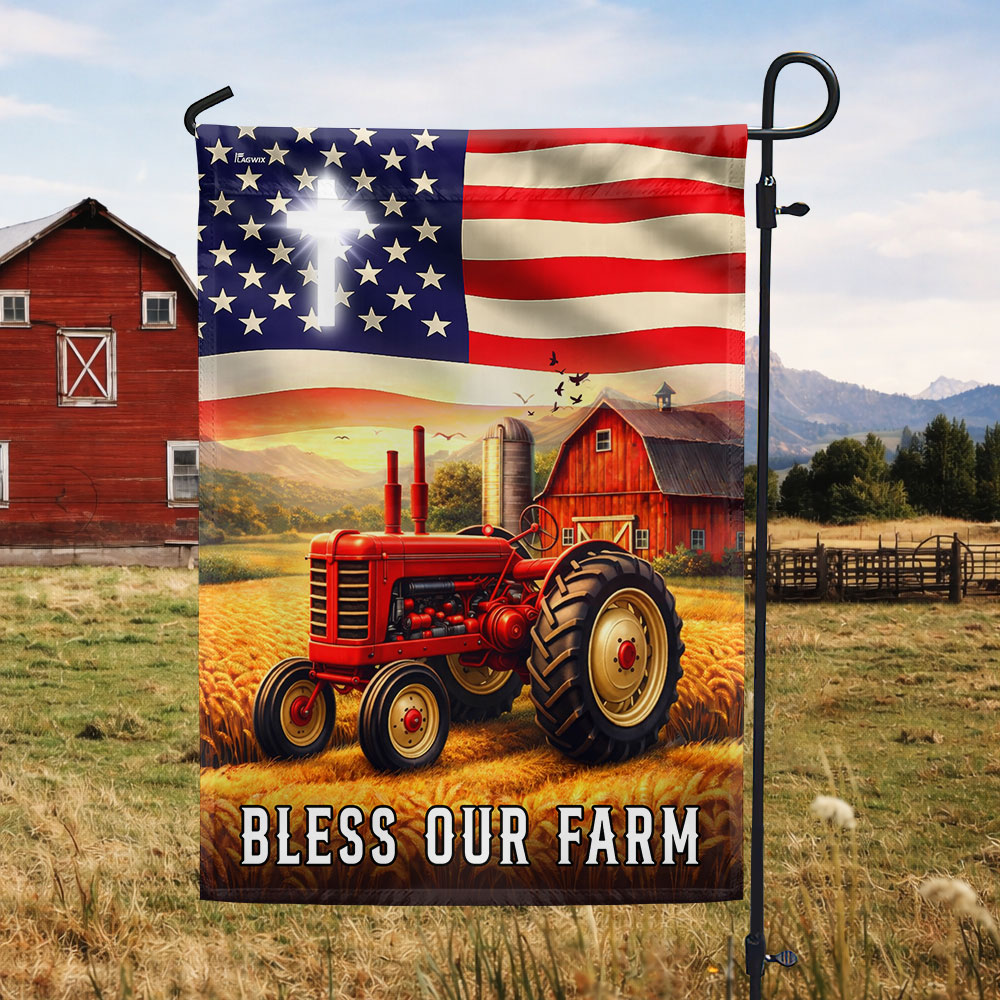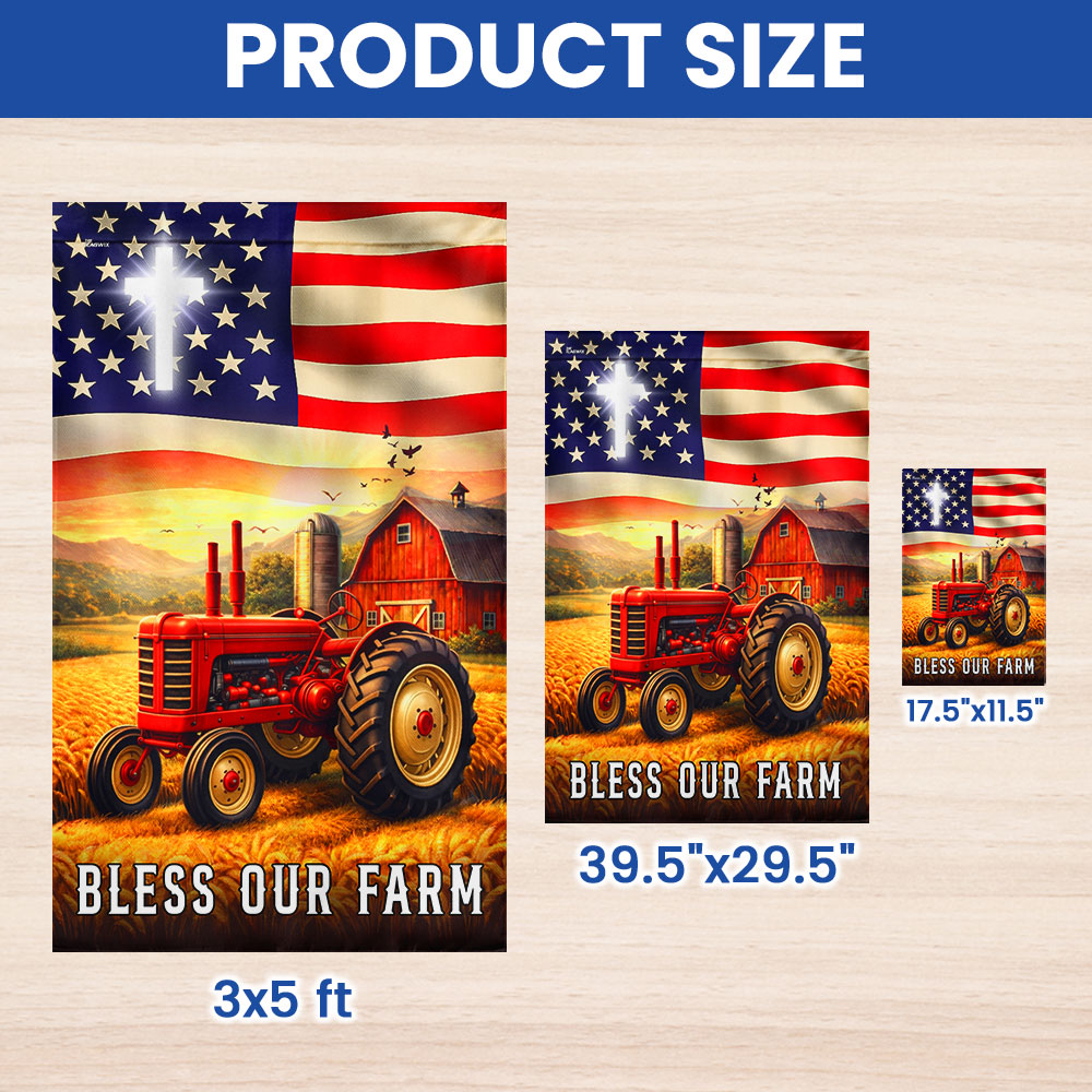 Patriotic Bless Our Farm Outdoor Flag, Tractor Red Barn American Flag