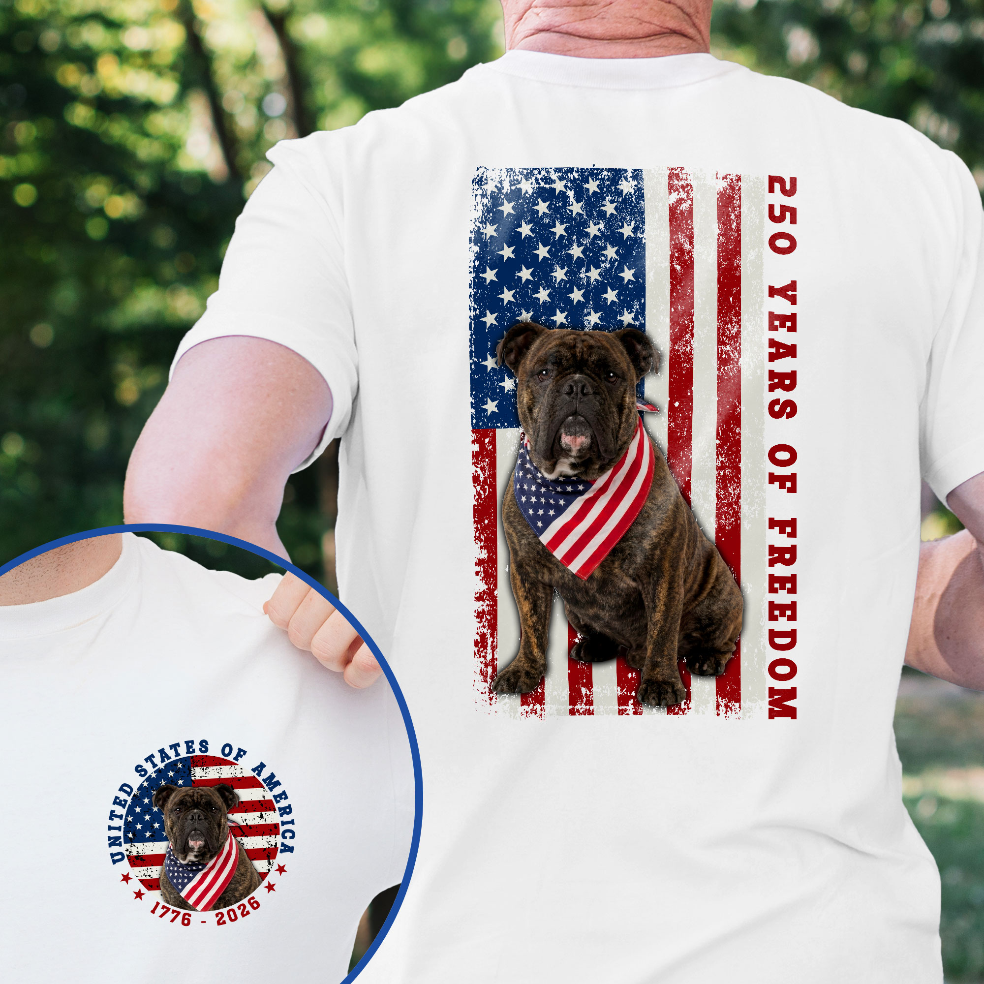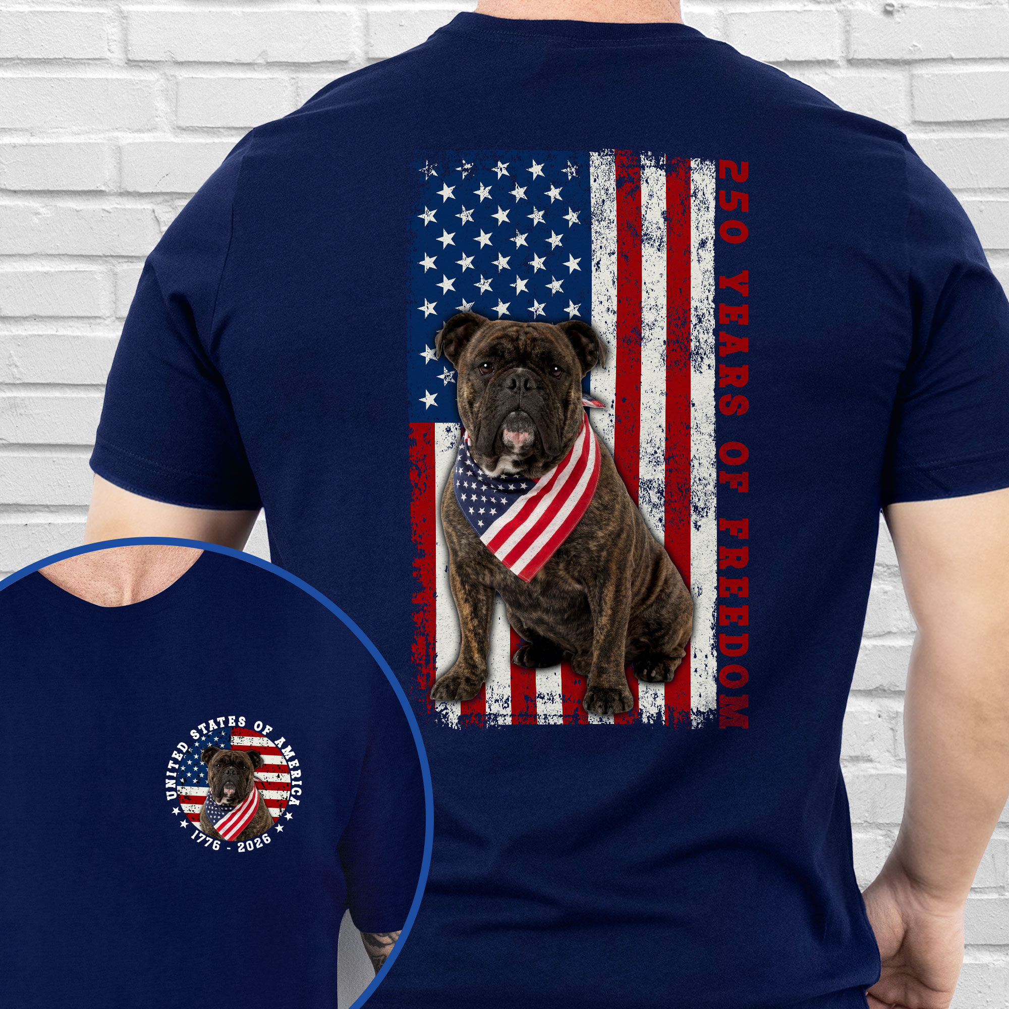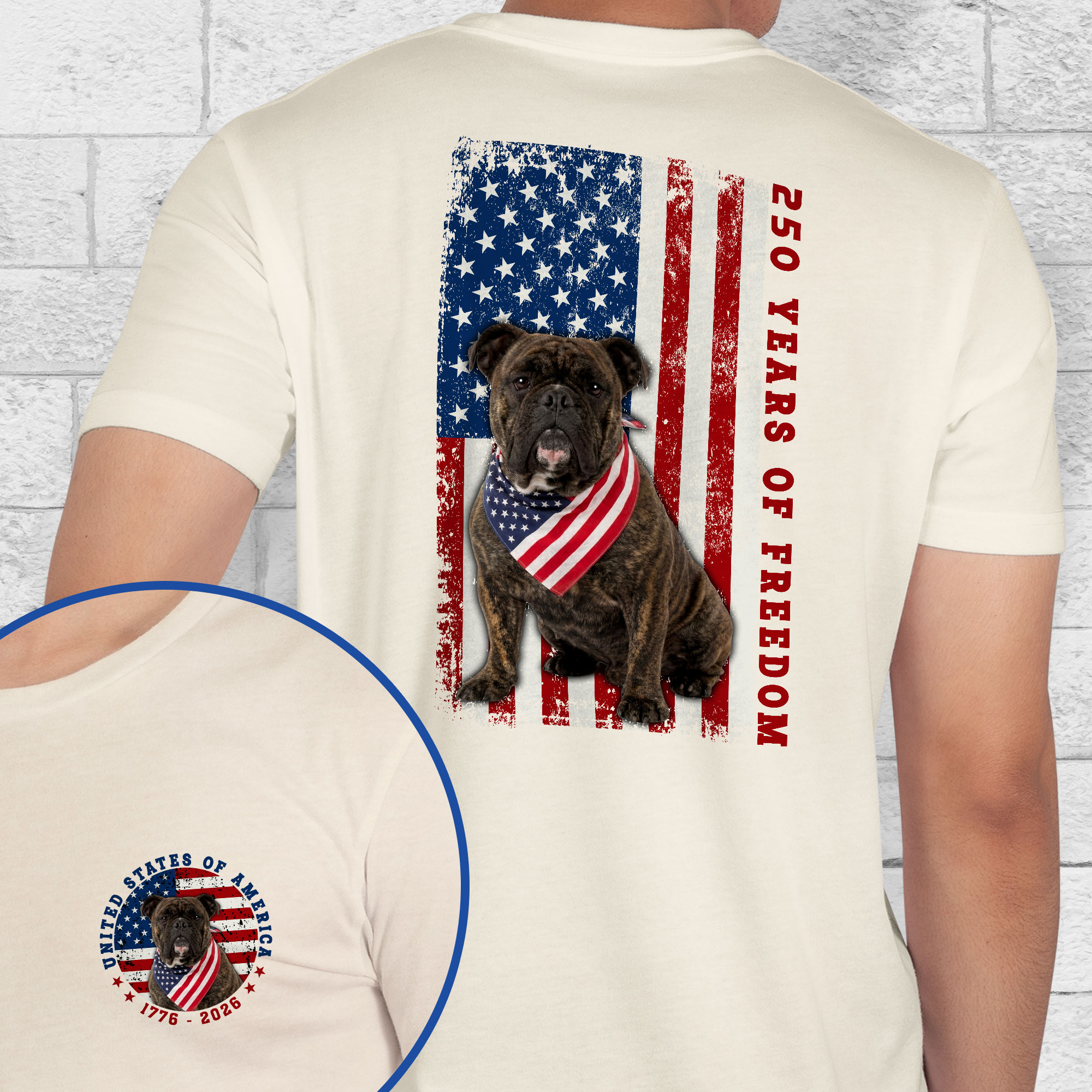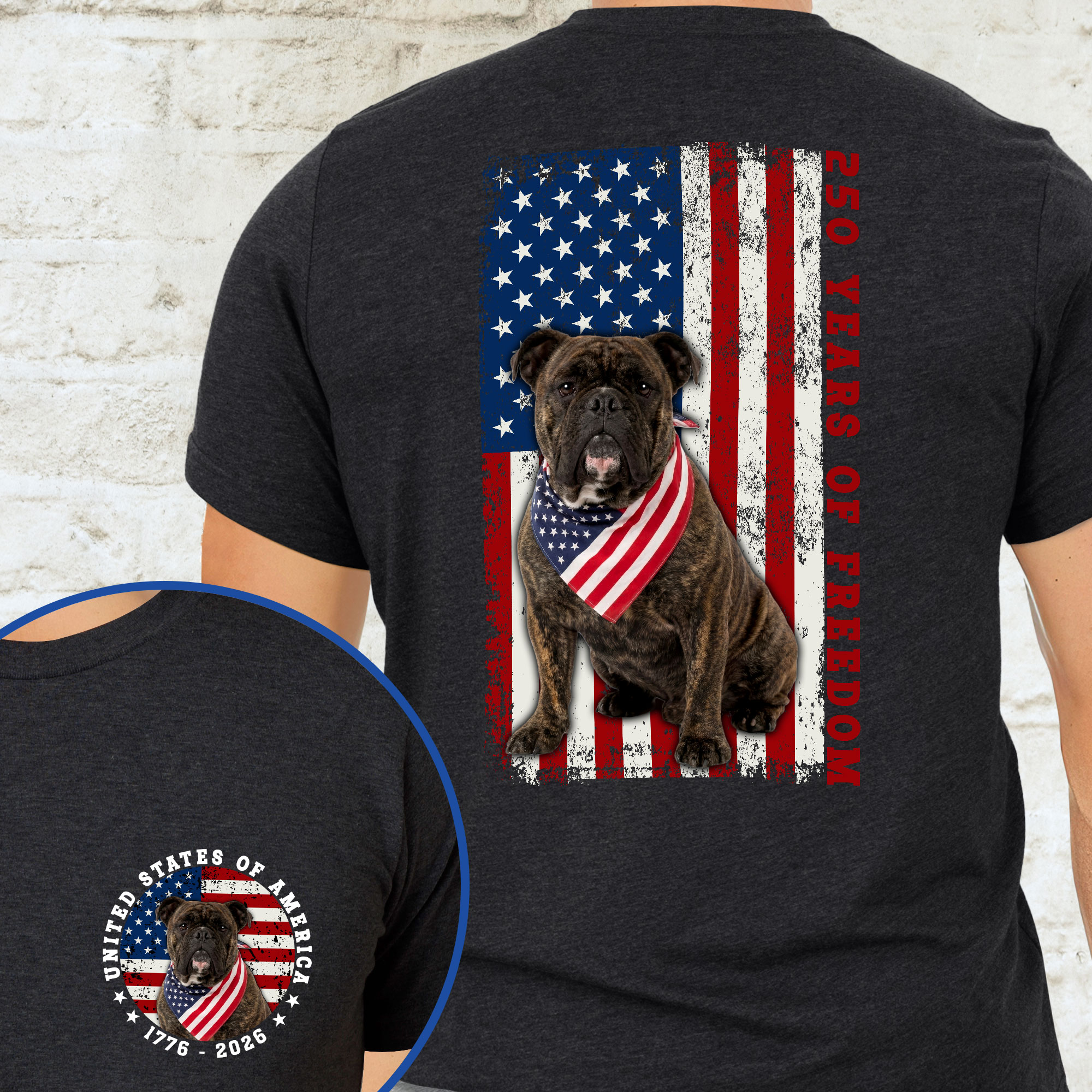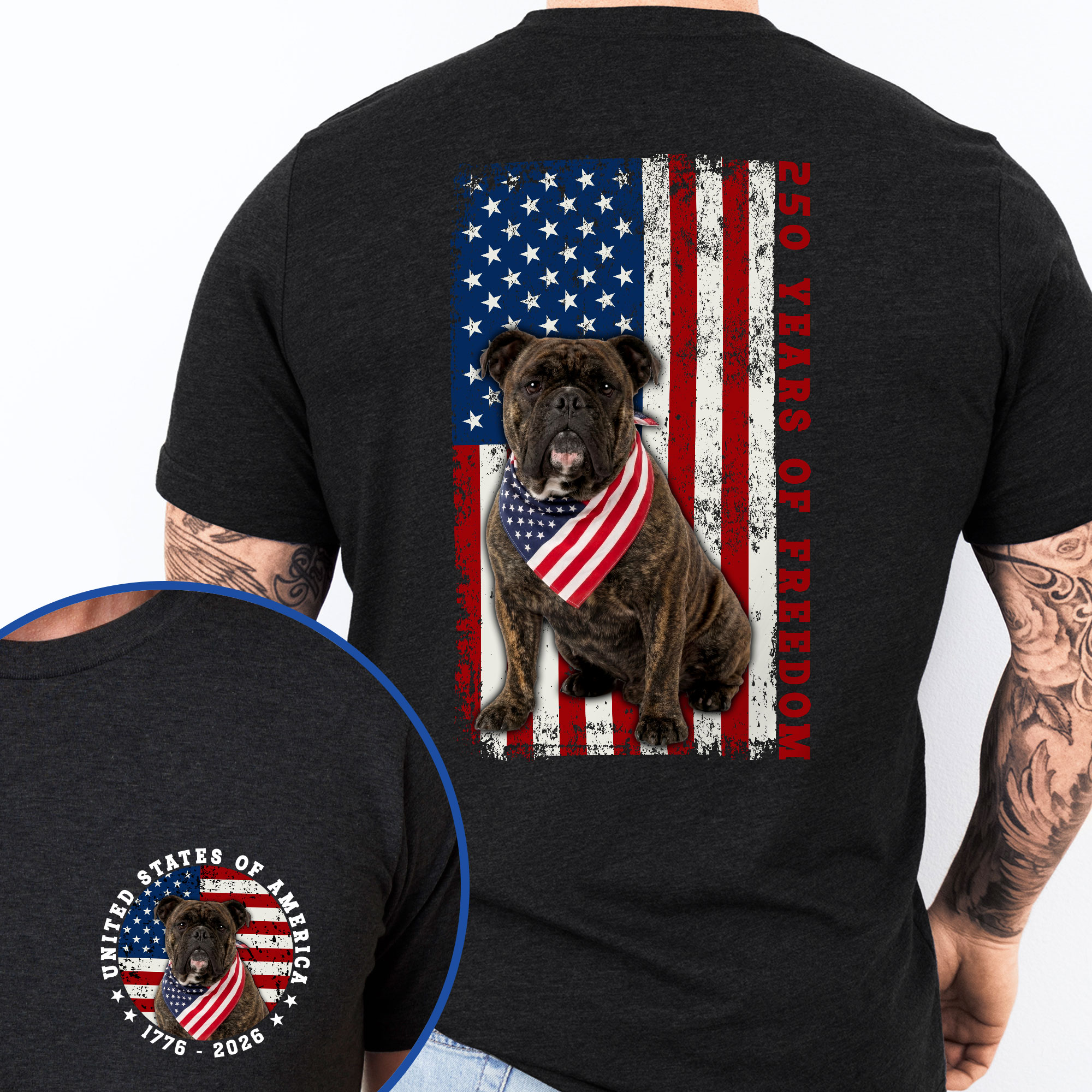 Patriotic Bulldog American T-shirt, 250 Years of Freedom 1776 2026 Tee for Dog Lovers