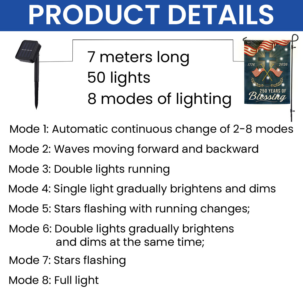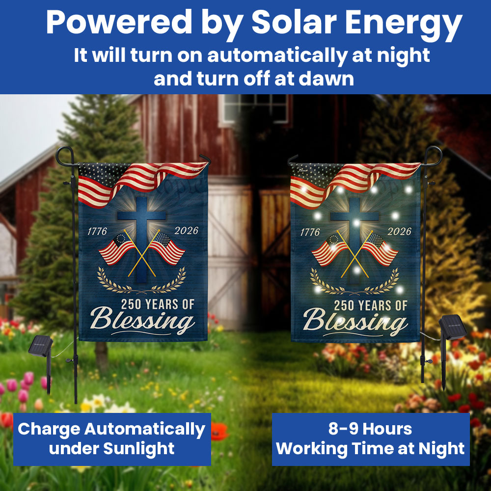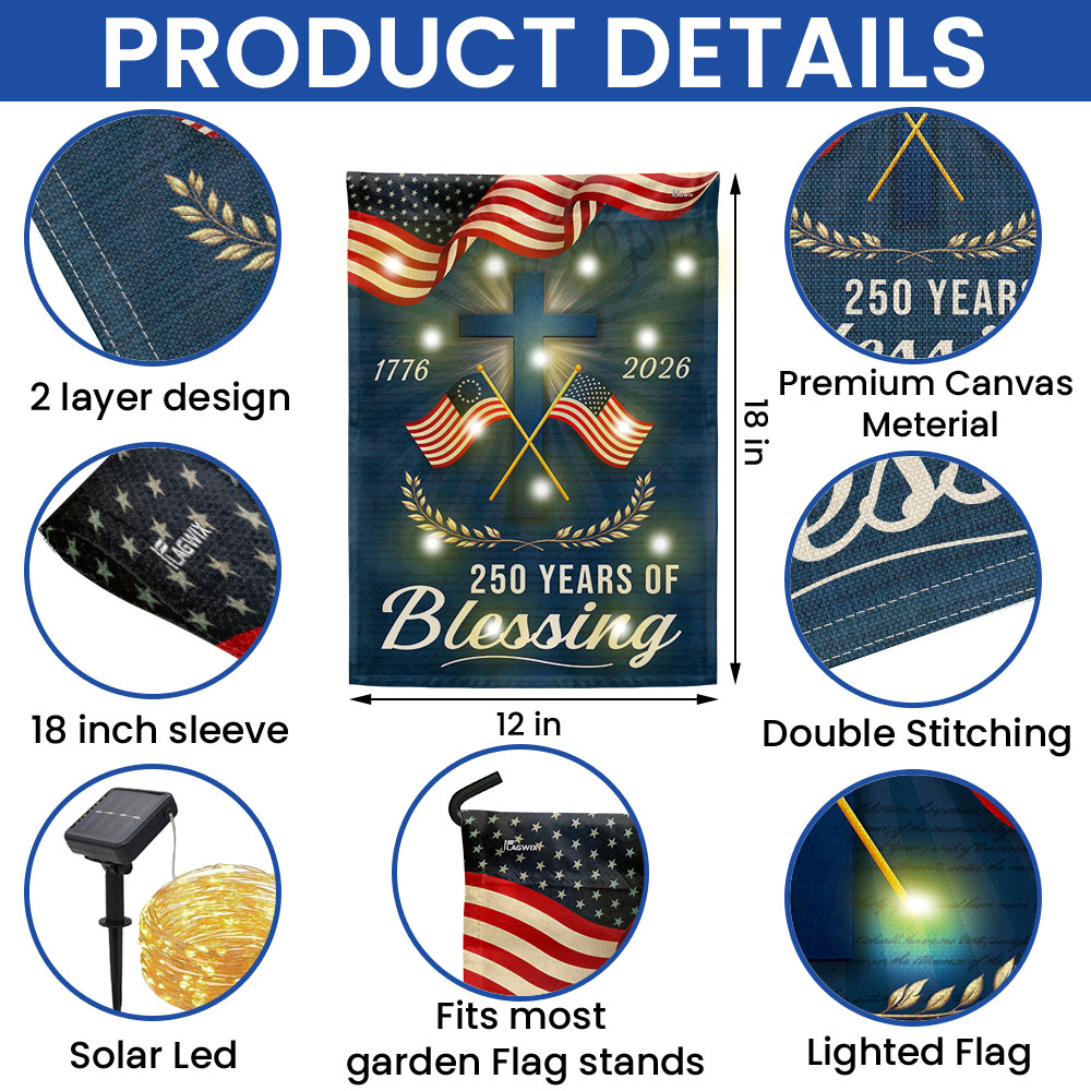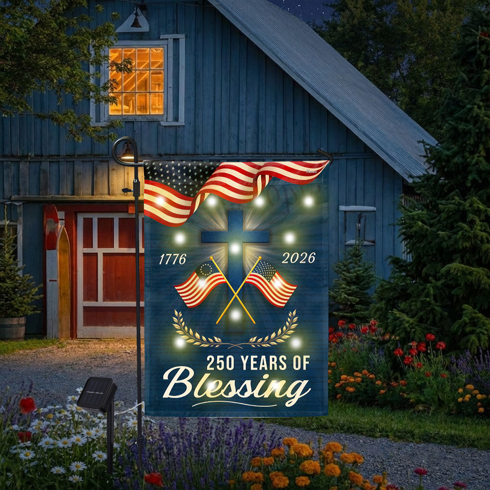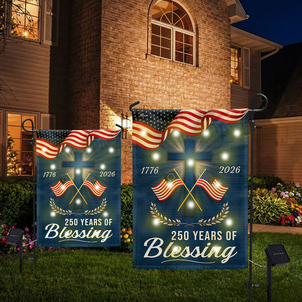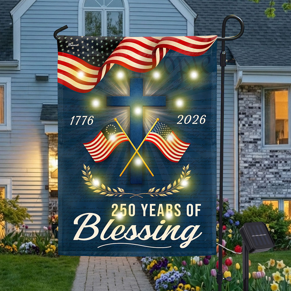 Patriotic Christian 250 Years of Blessings Garden Flag, American 1776 2026 Solar LED Flag
