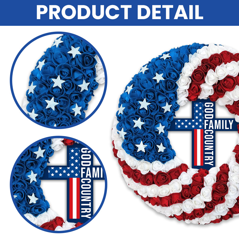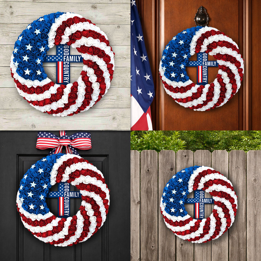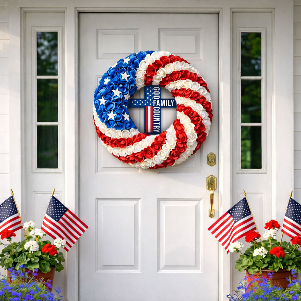 Patriotic Christian Cross Front Door Wreath for 250 Years of America Decor