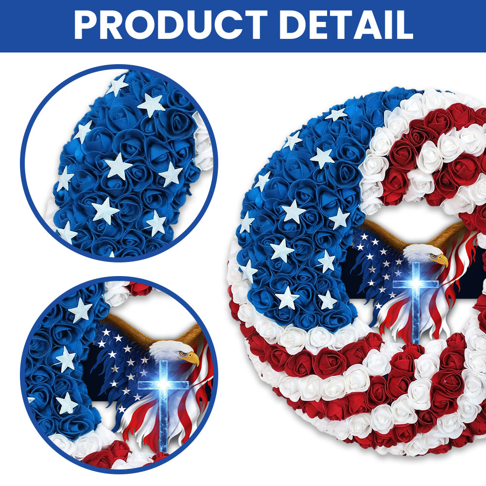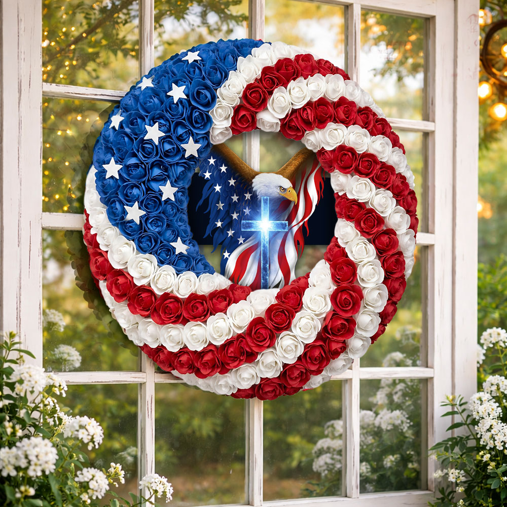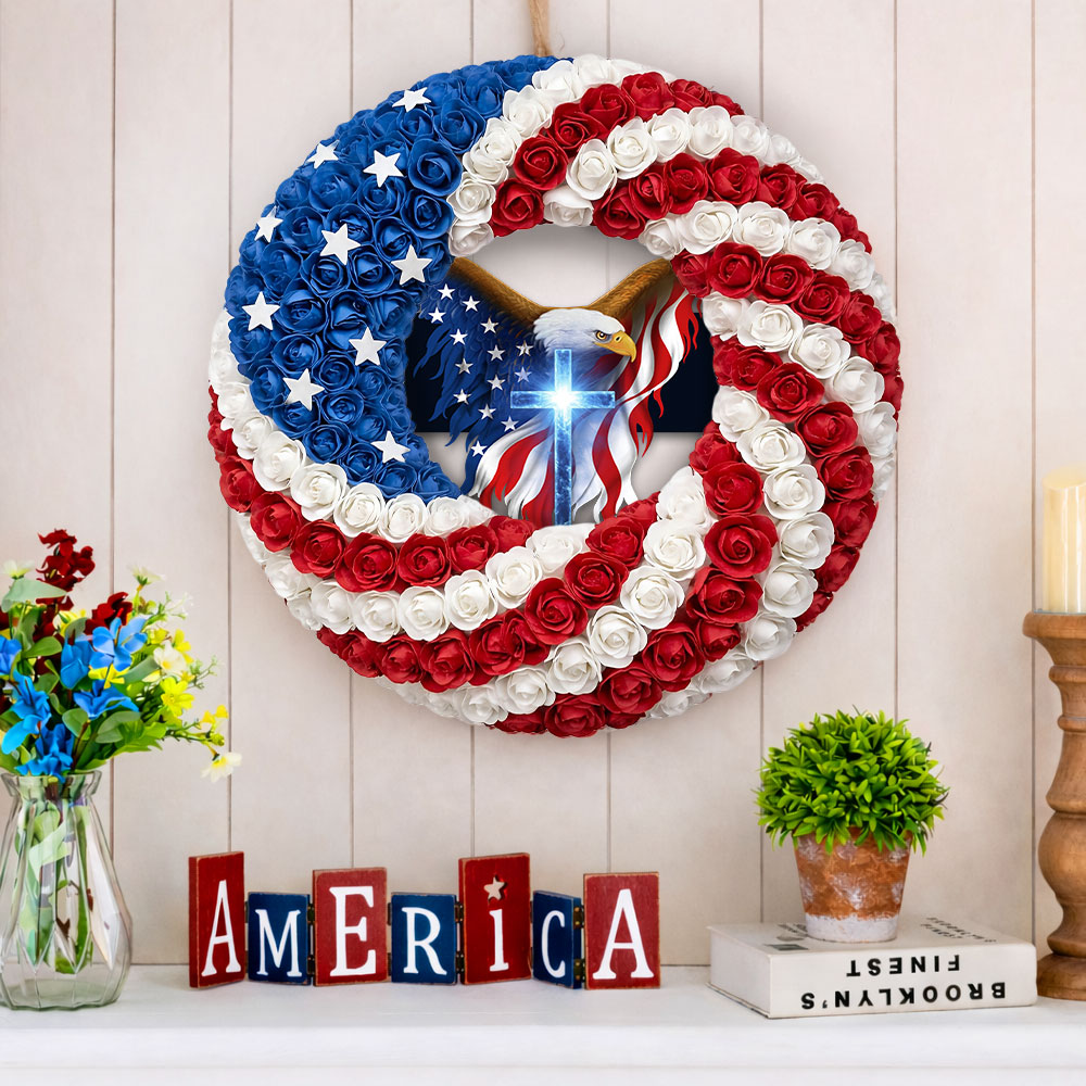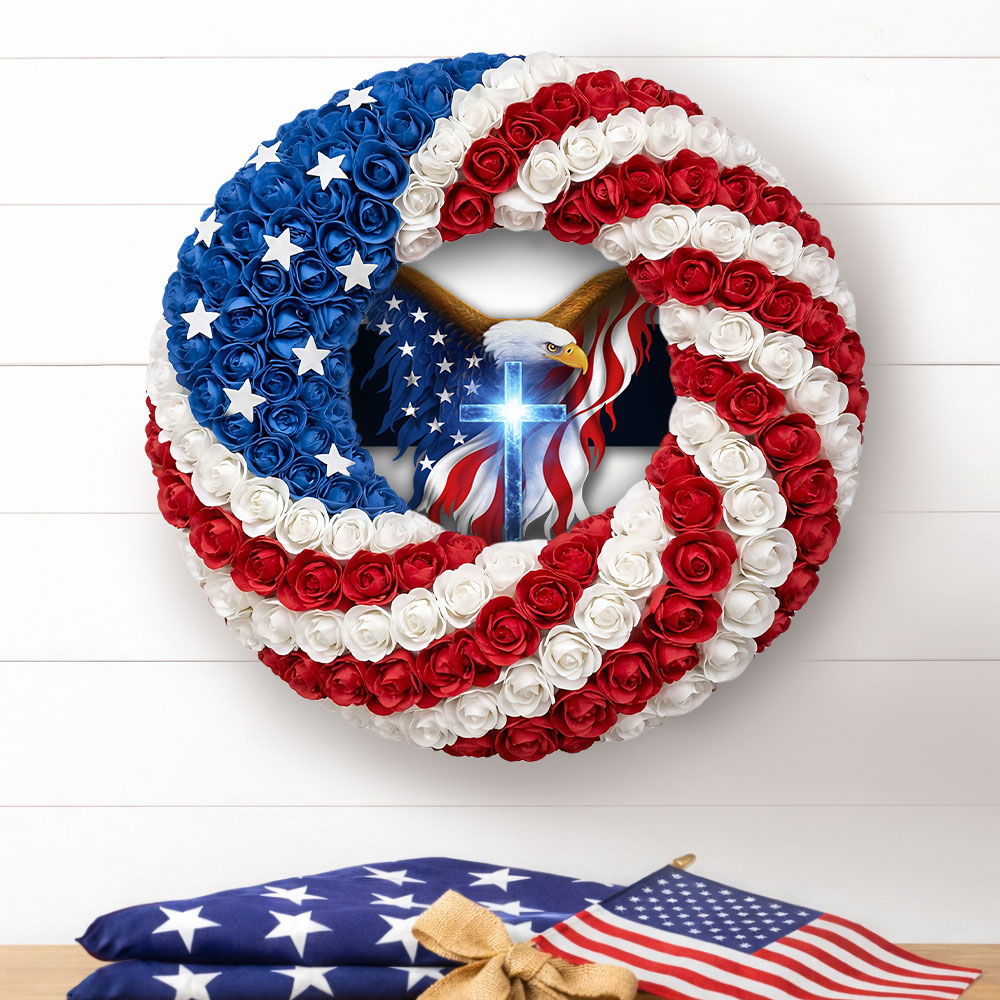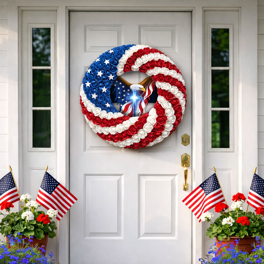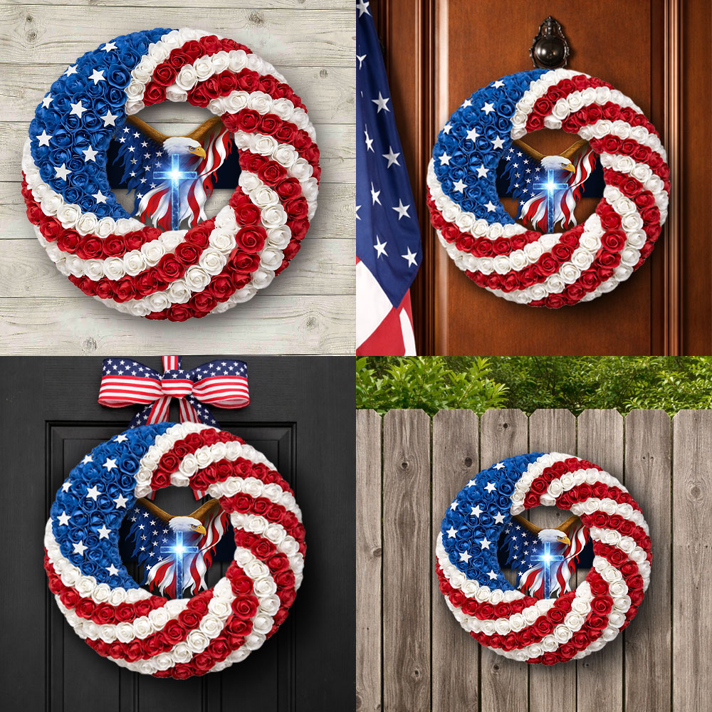 Patriotic Christian Eagle Cross Front Door Wreath for 250 Years of America
