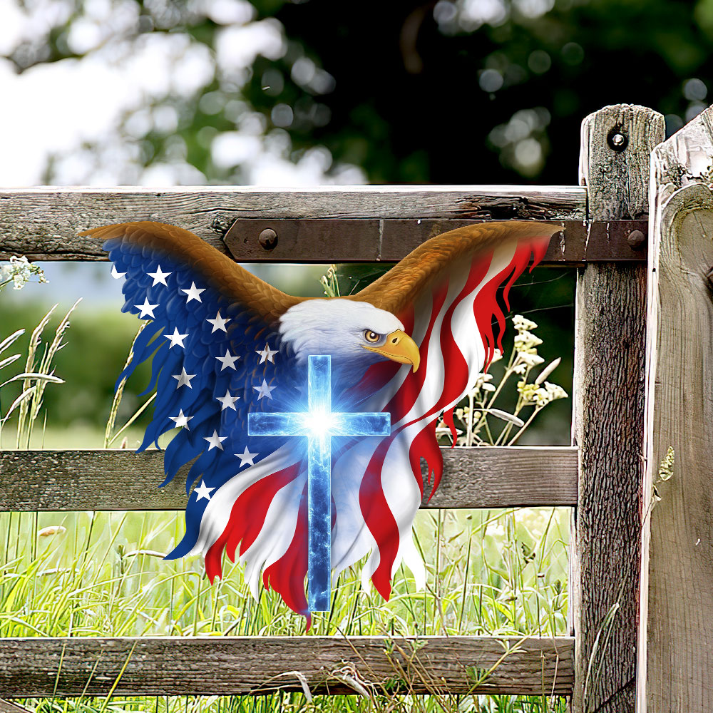 Patriotic Christian Eagle Cross Hanging Metal Sign, 250 Years Wall Art Decor