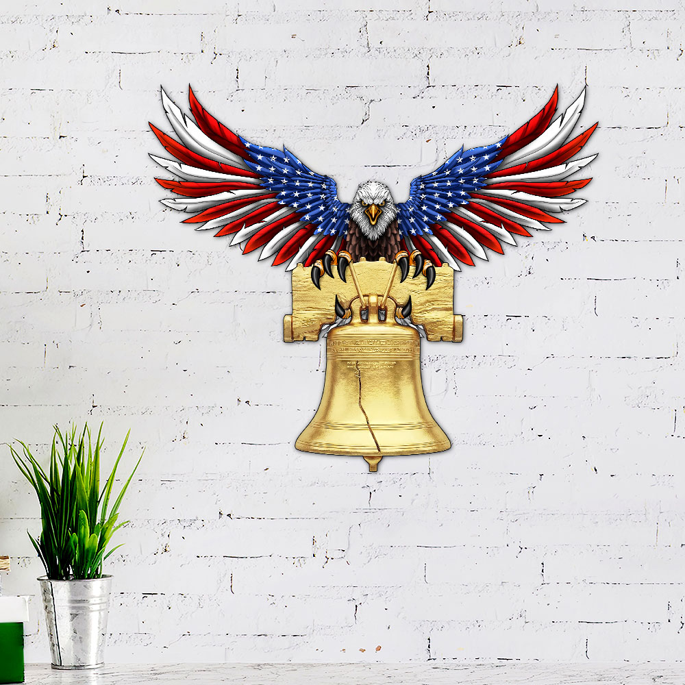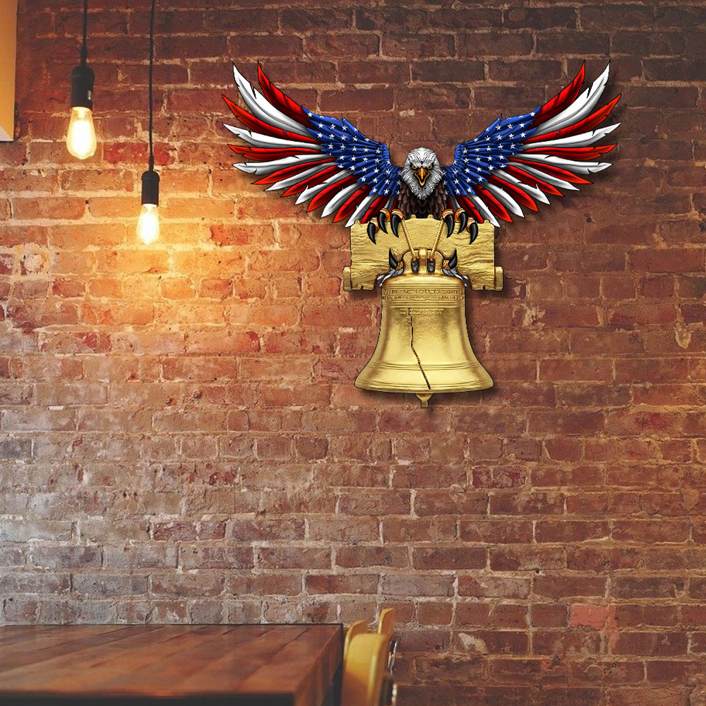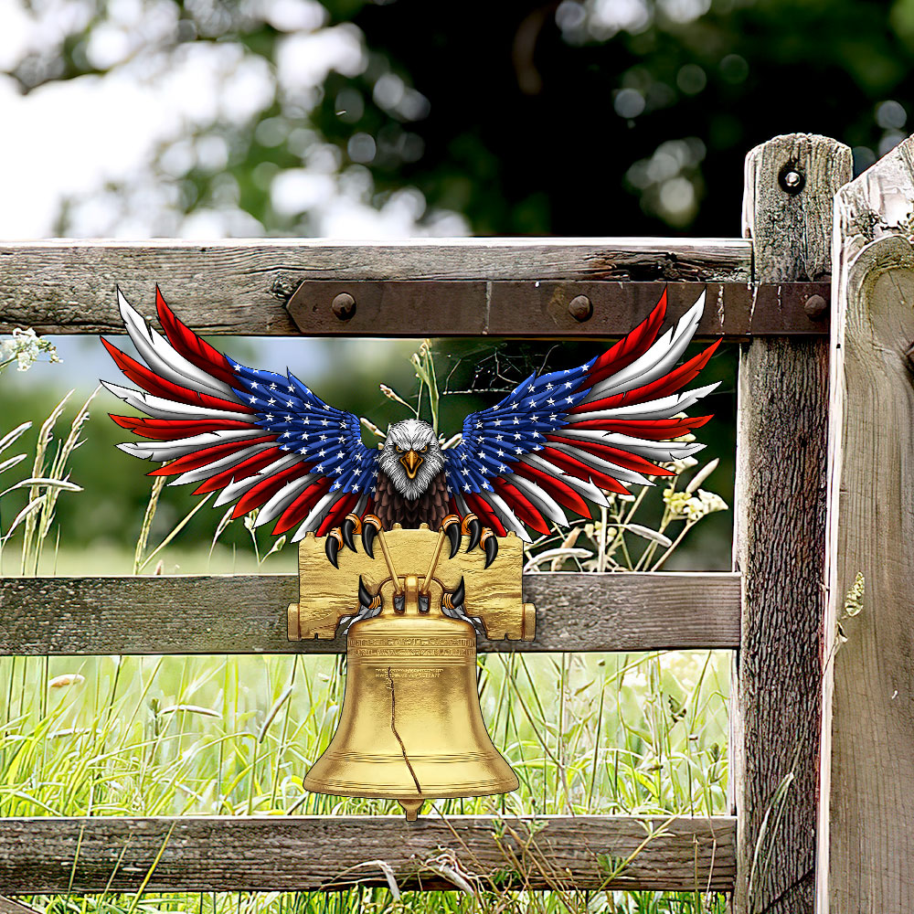Patriotic Eagle with Liberty Bell Hanging Metal Sign
