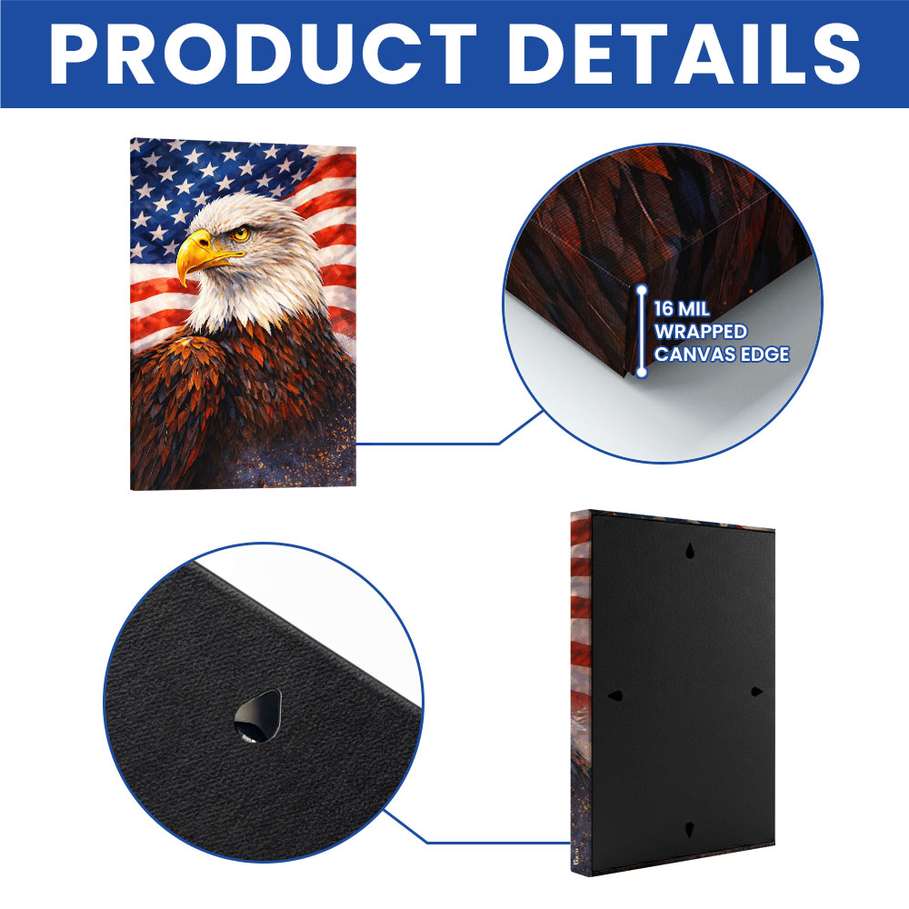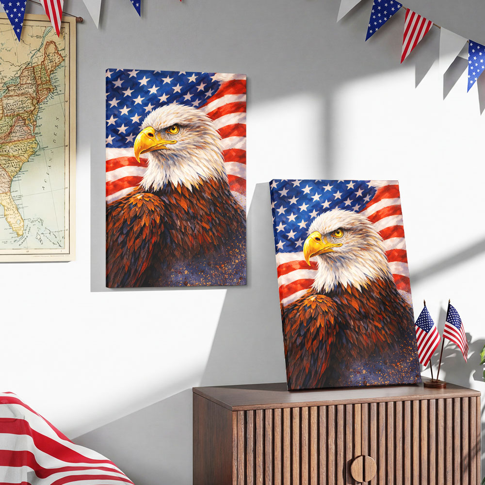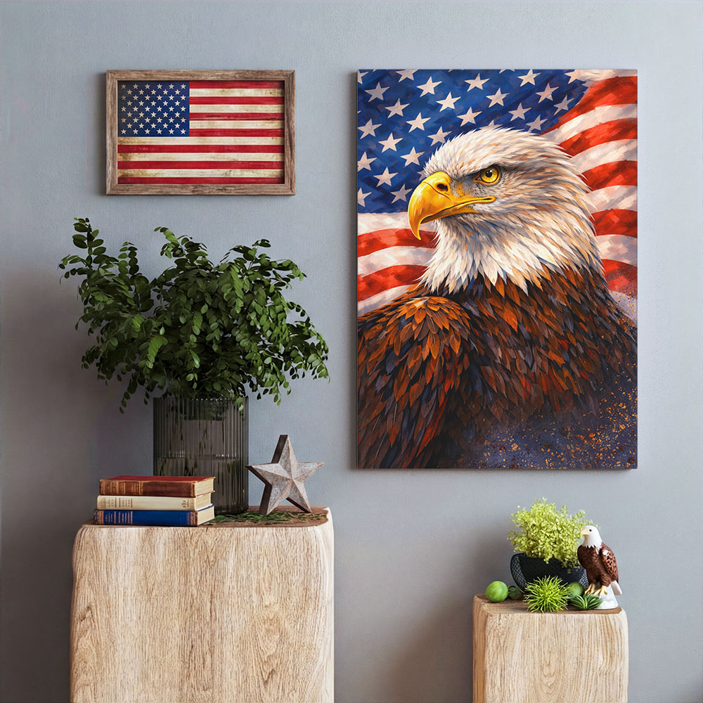 Patriotic Eagle with Painting American Flag Canvas Wall Art Decor