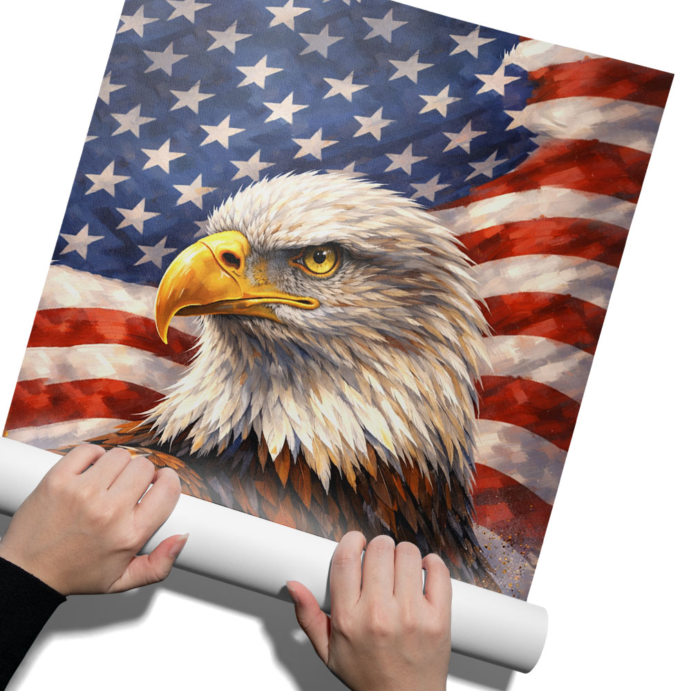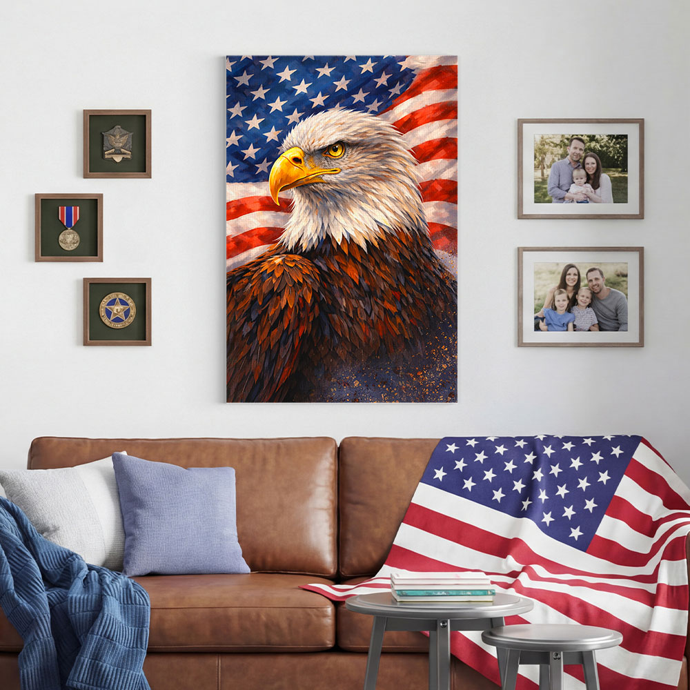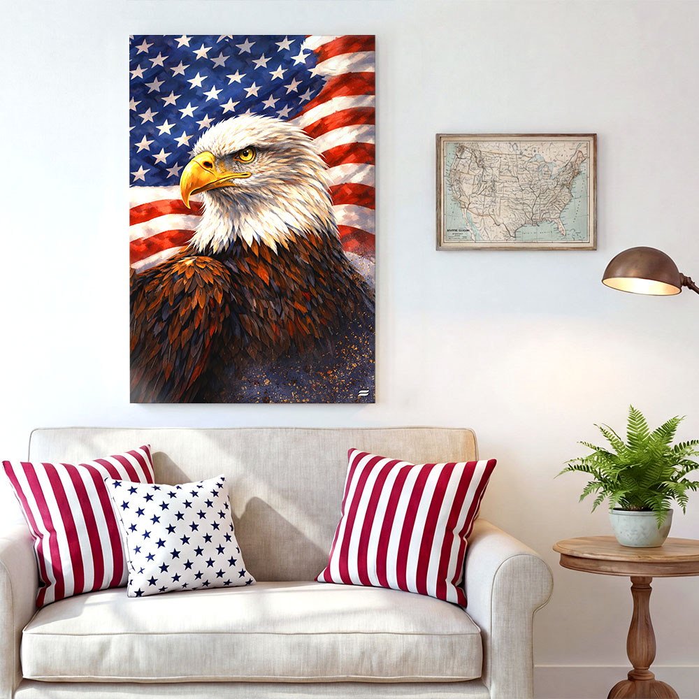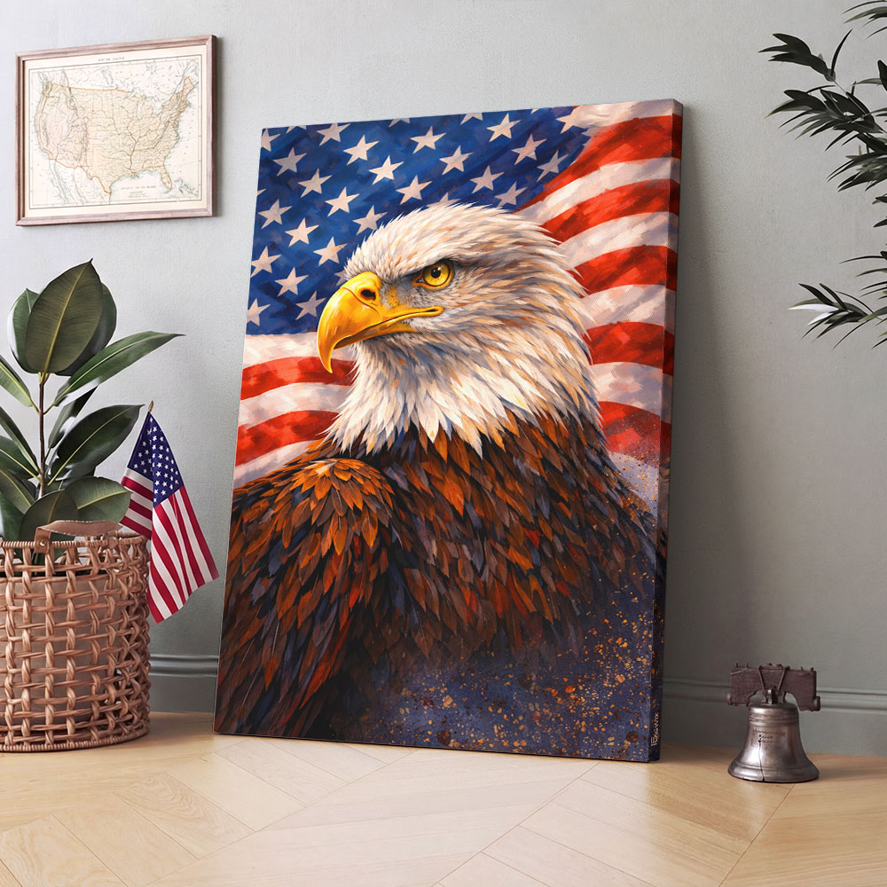 Patriotic Eagle with Painting American Flag Canvas Wall Art Decor