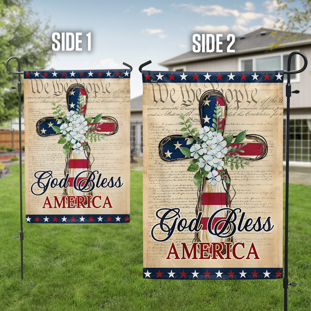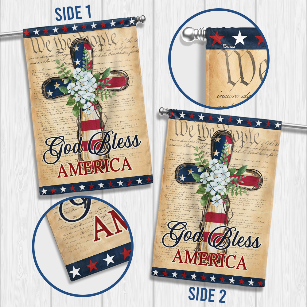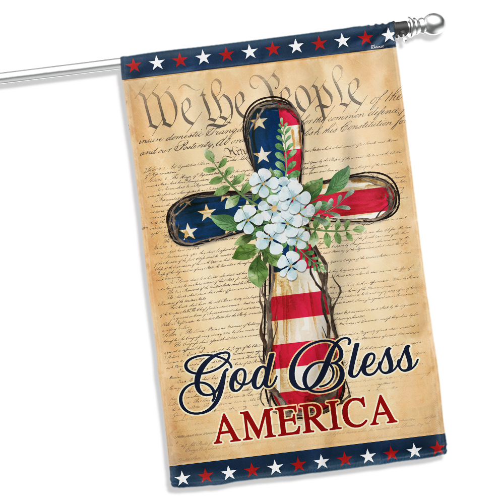 Patriotic God Bless America 4th of July Christian Cross Flag MLN5657NTH