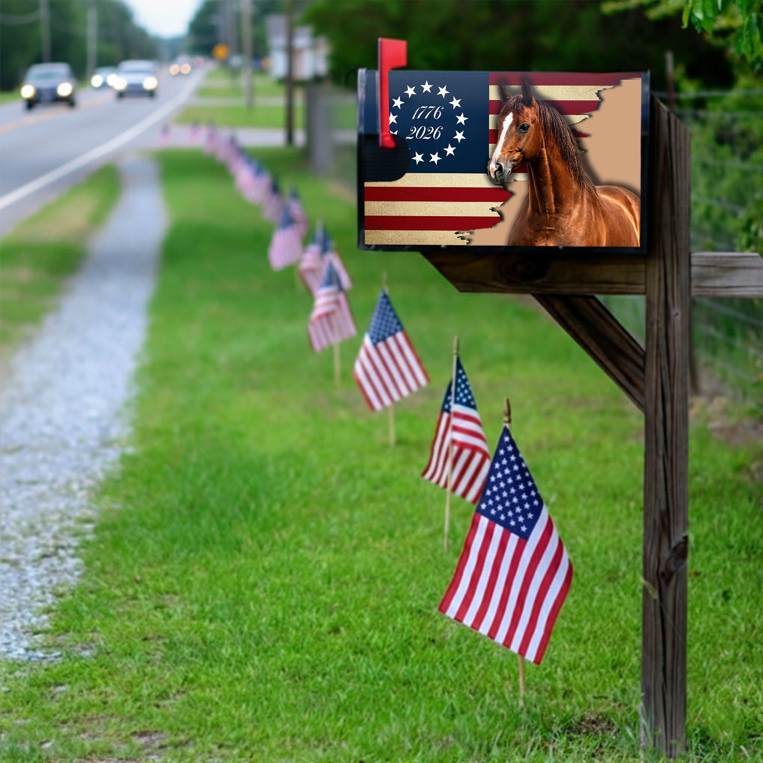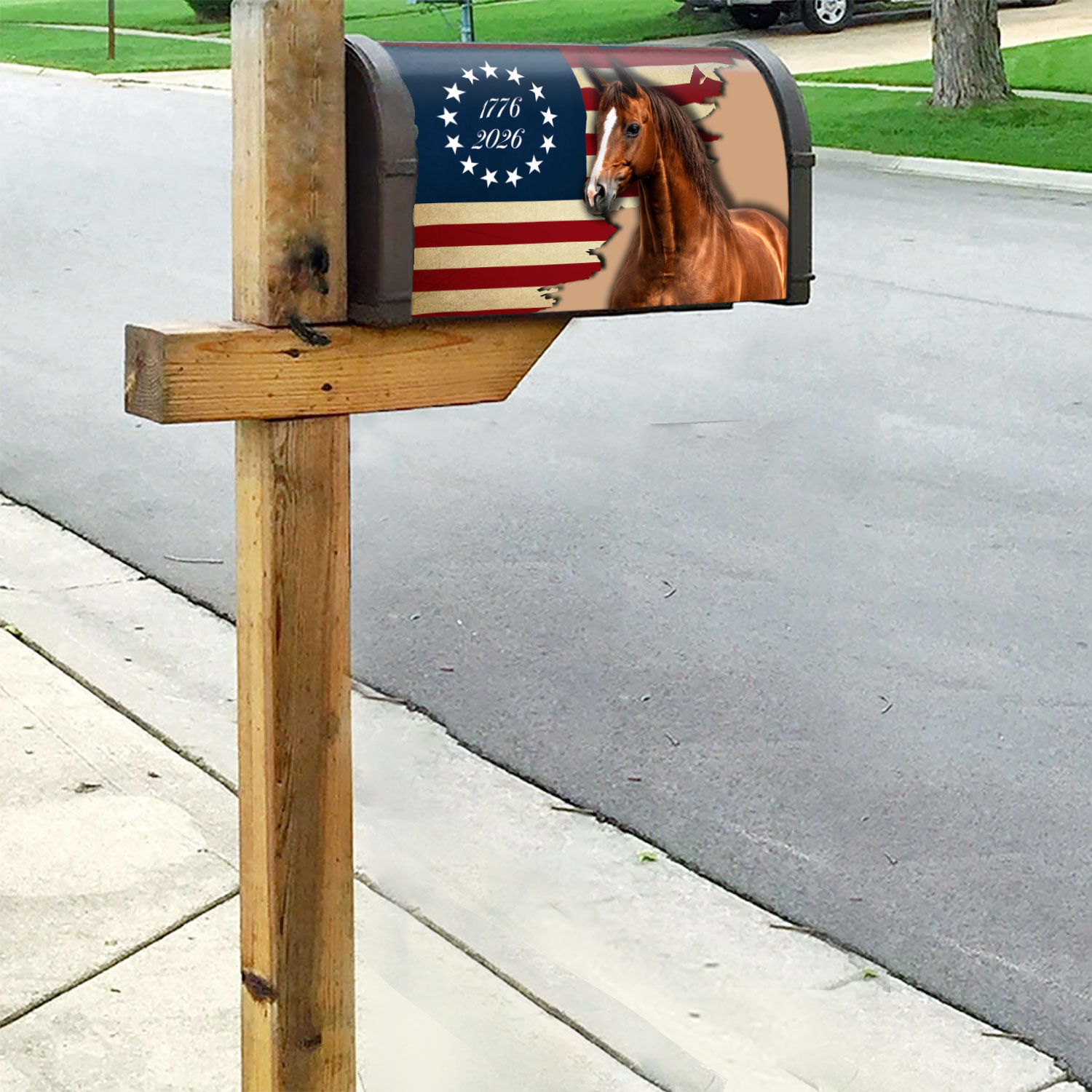 Patriotic Horse Betsy Ross 250 USA Flag Mailbox Cover for Decoration