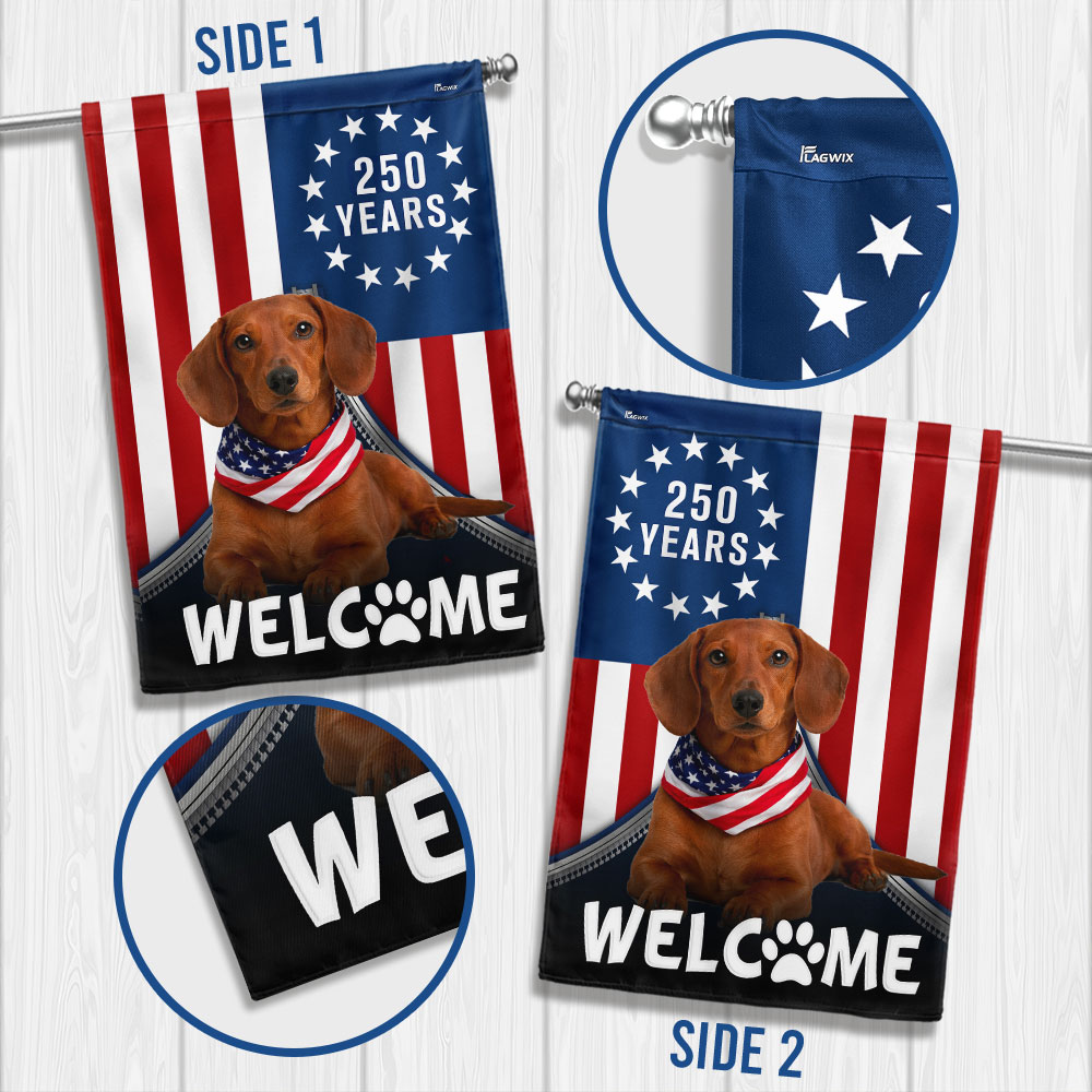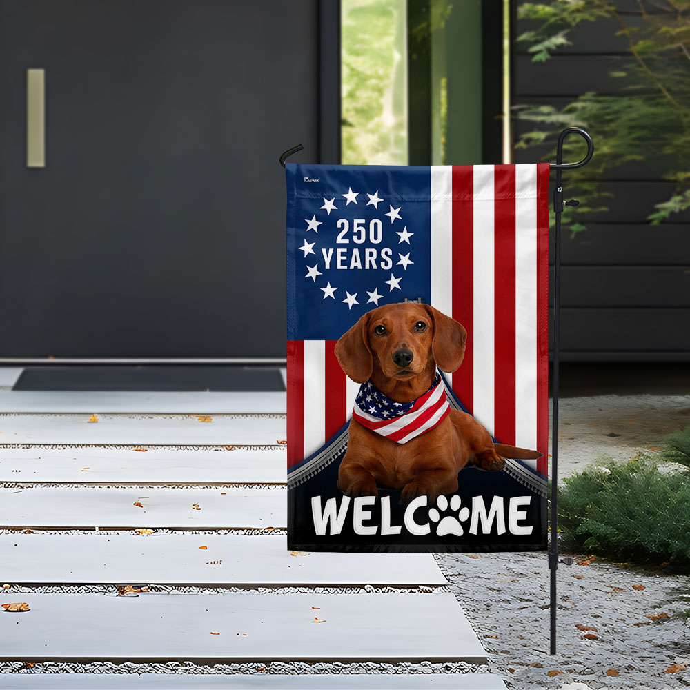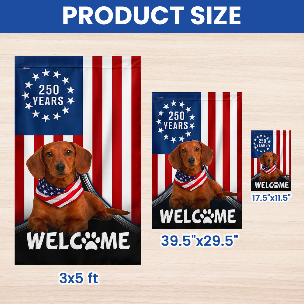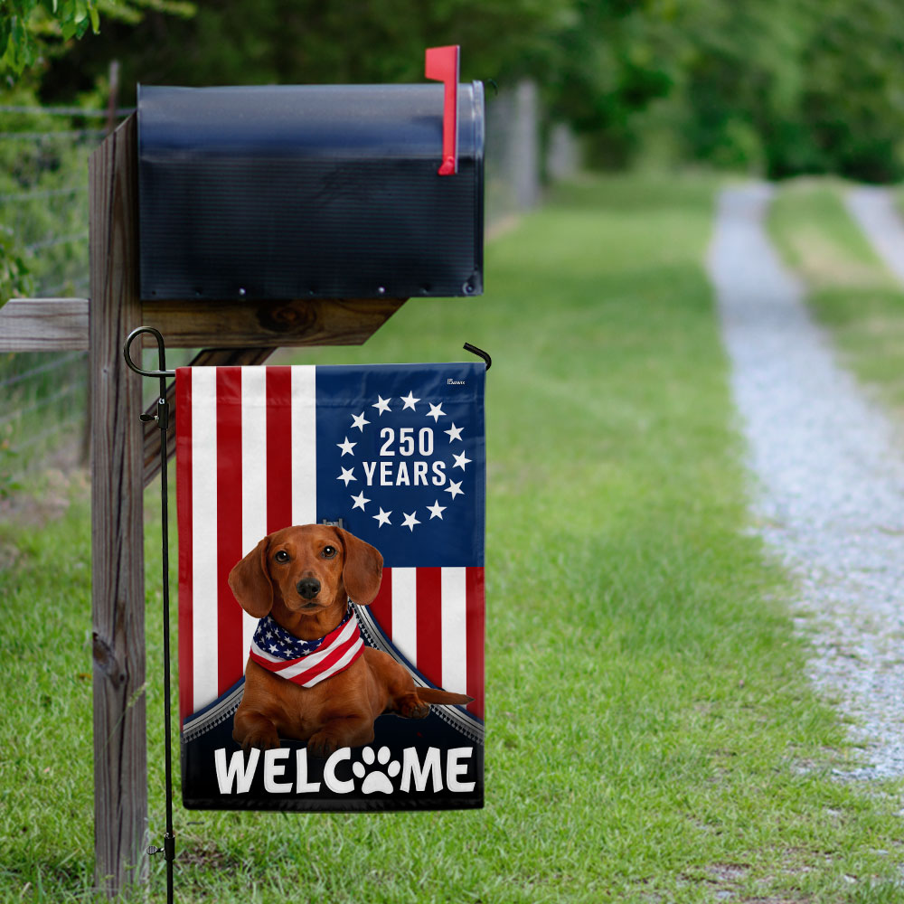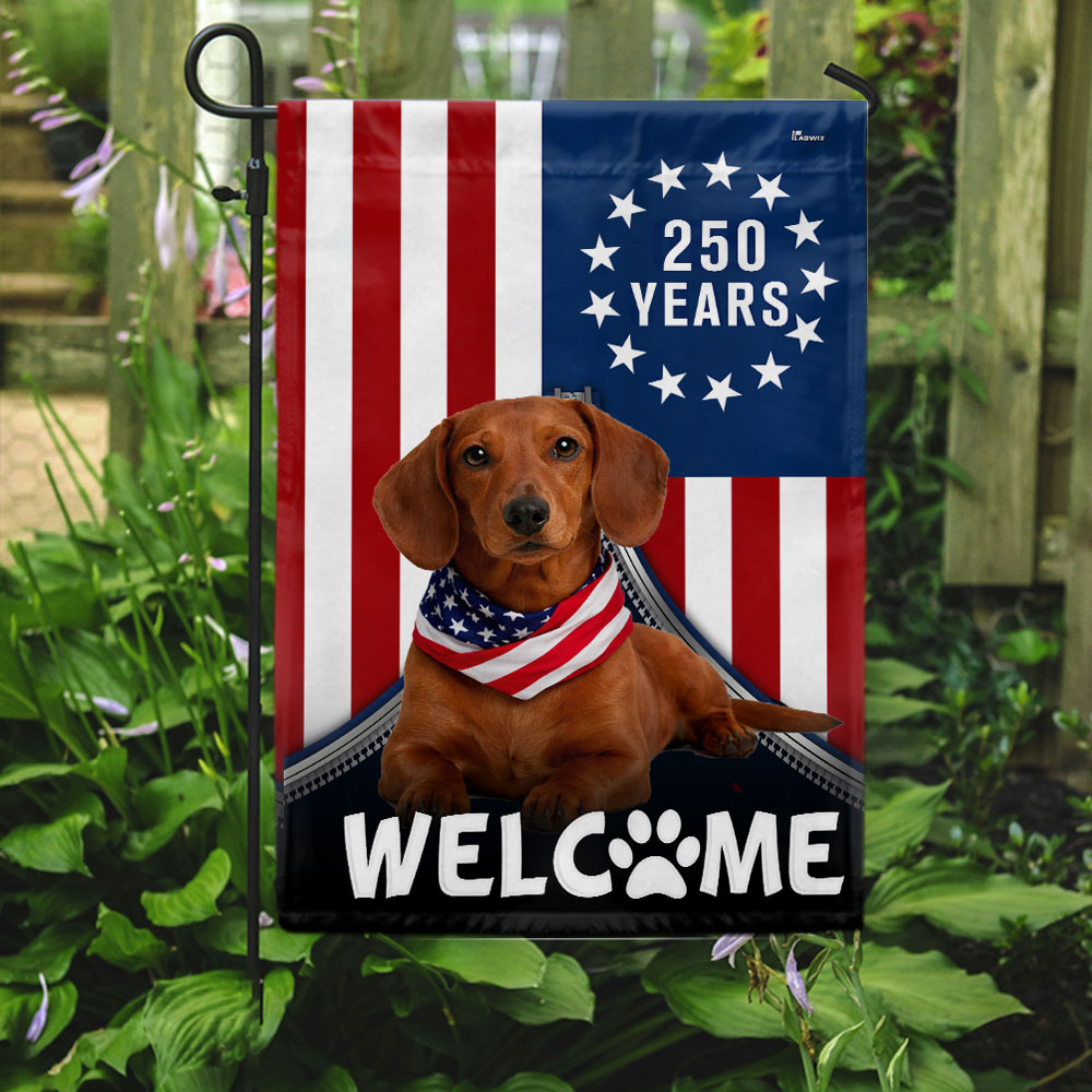 Patriotic Welcome Dog Garden Flag, 250 Years Dachshund Betsy Ross Flag Decor