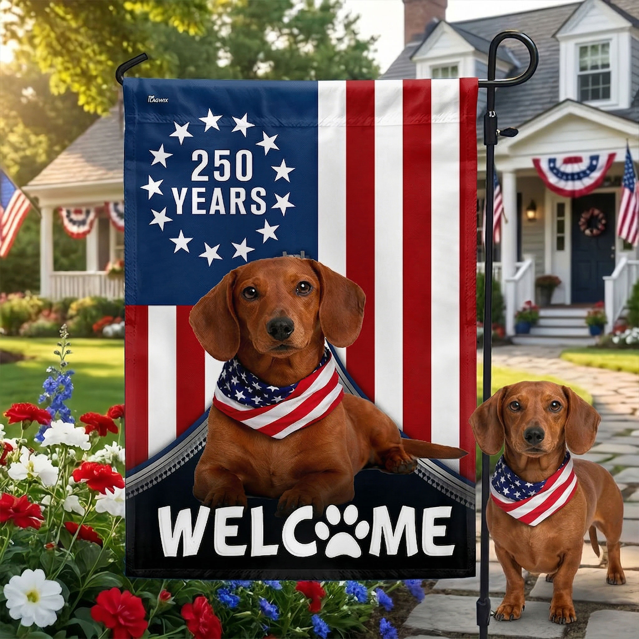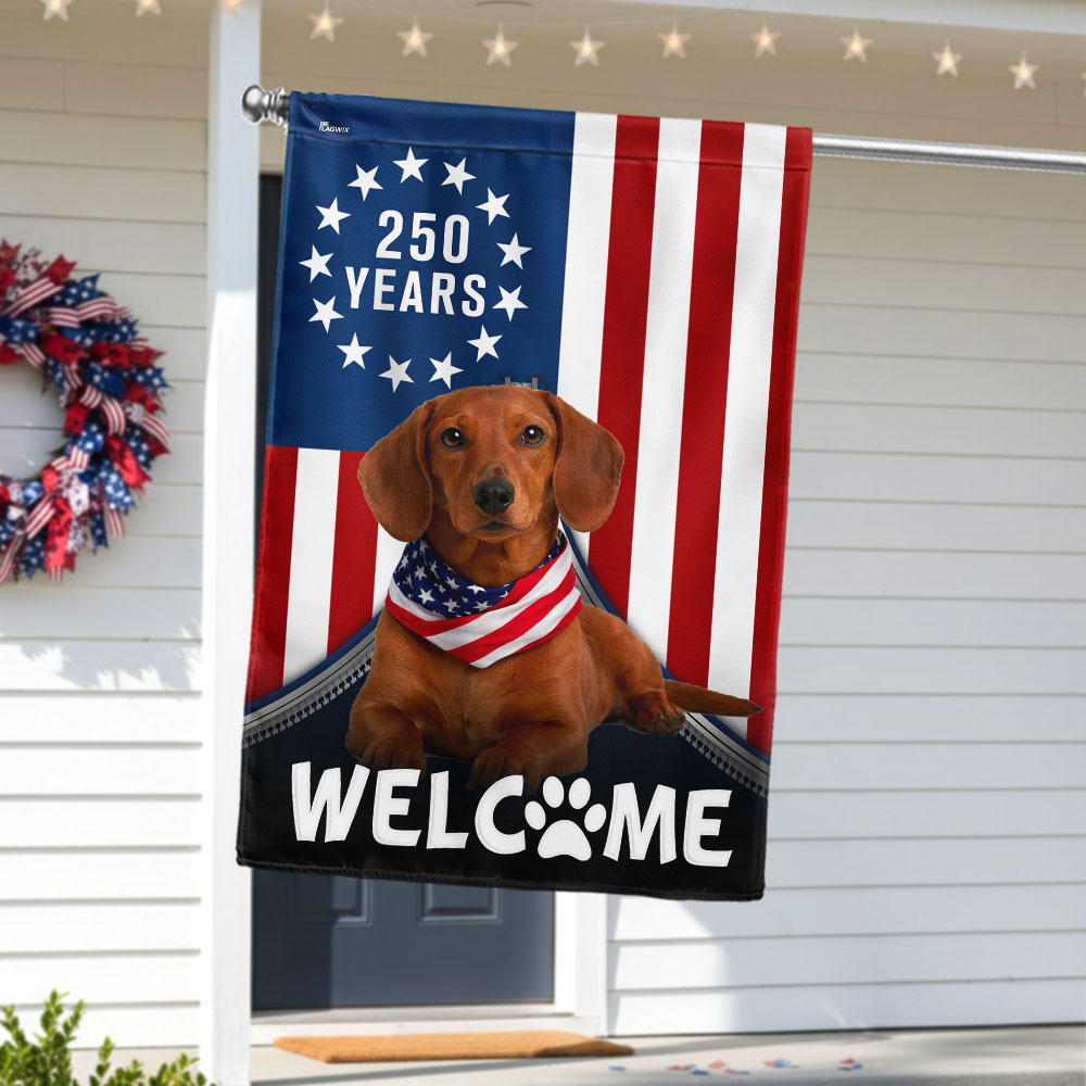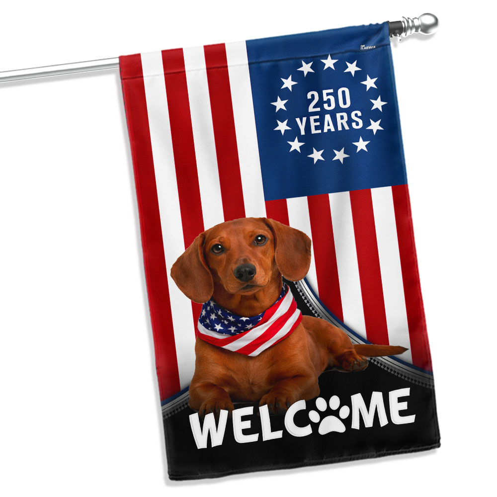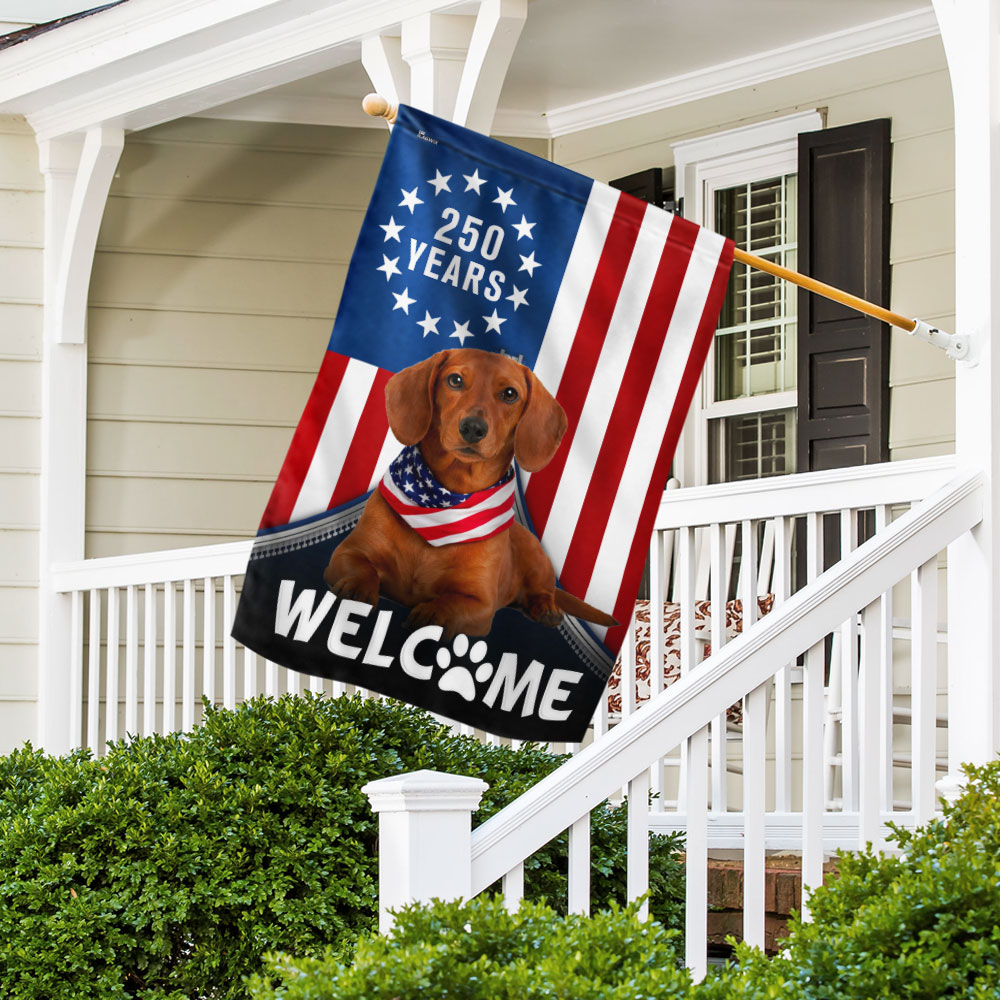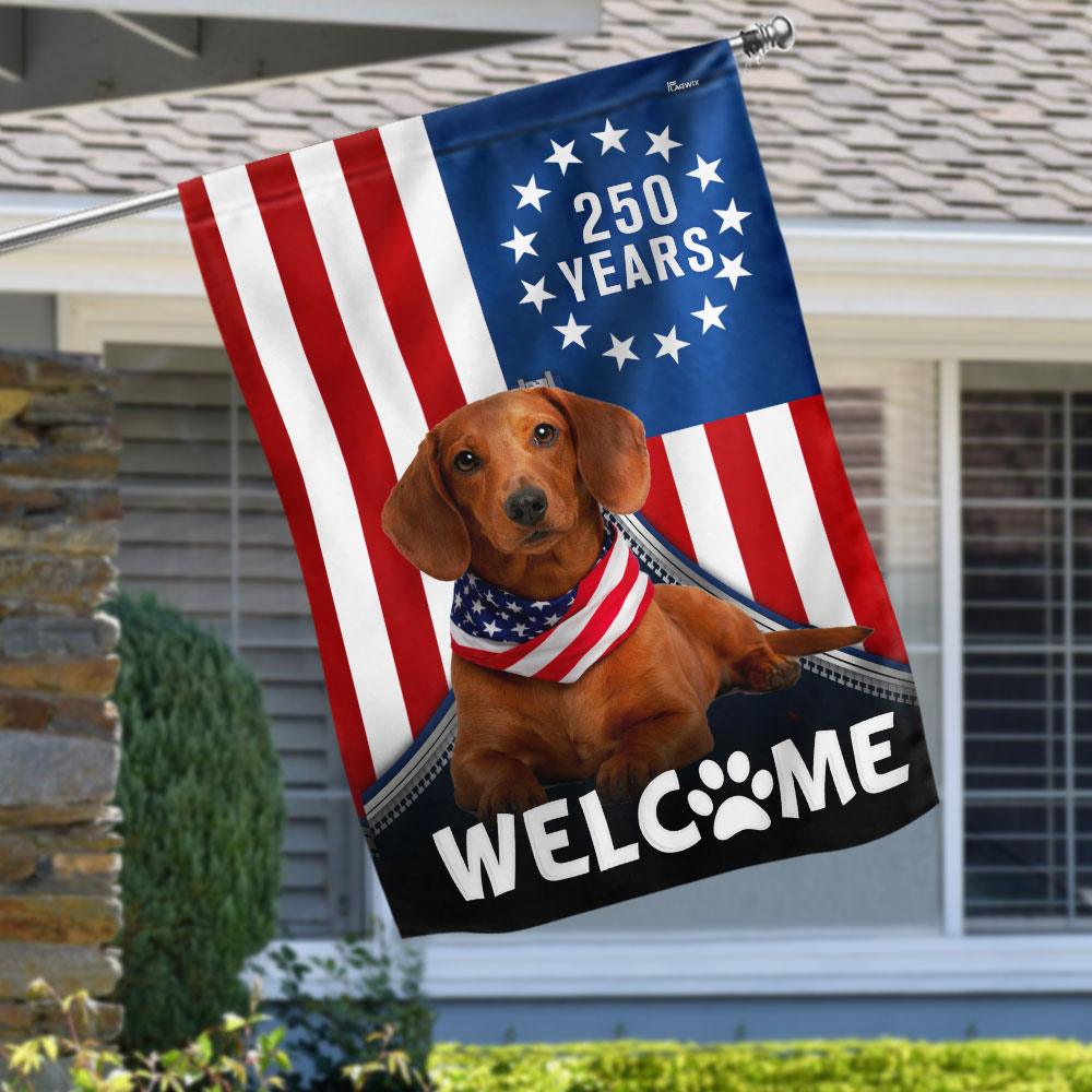 Patriotic Welcome Dog Garden Flag, 250 Years Dachshund Betsy Ross Flag Decor