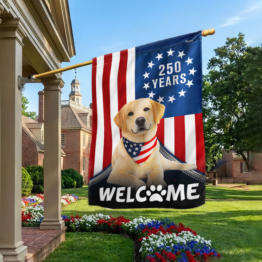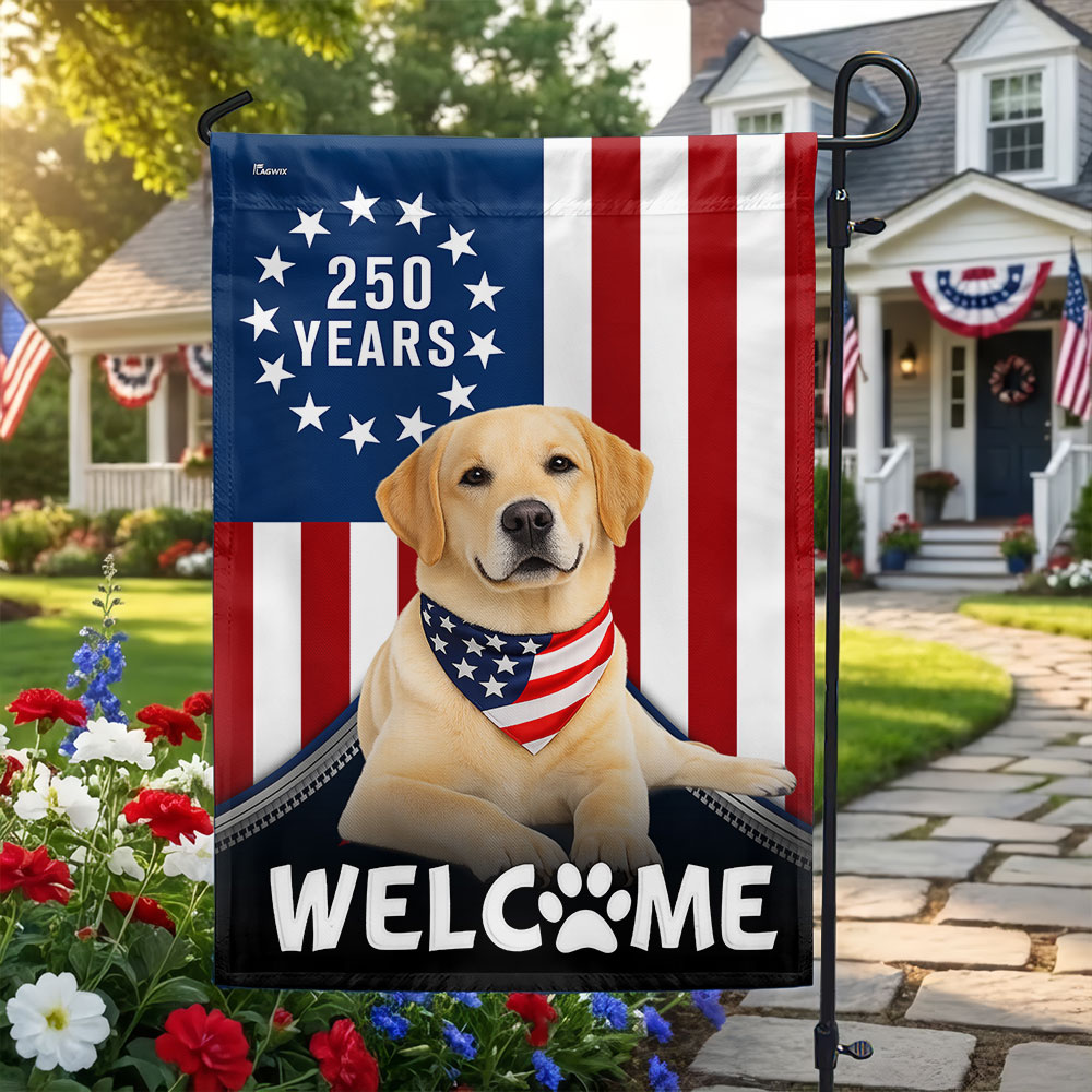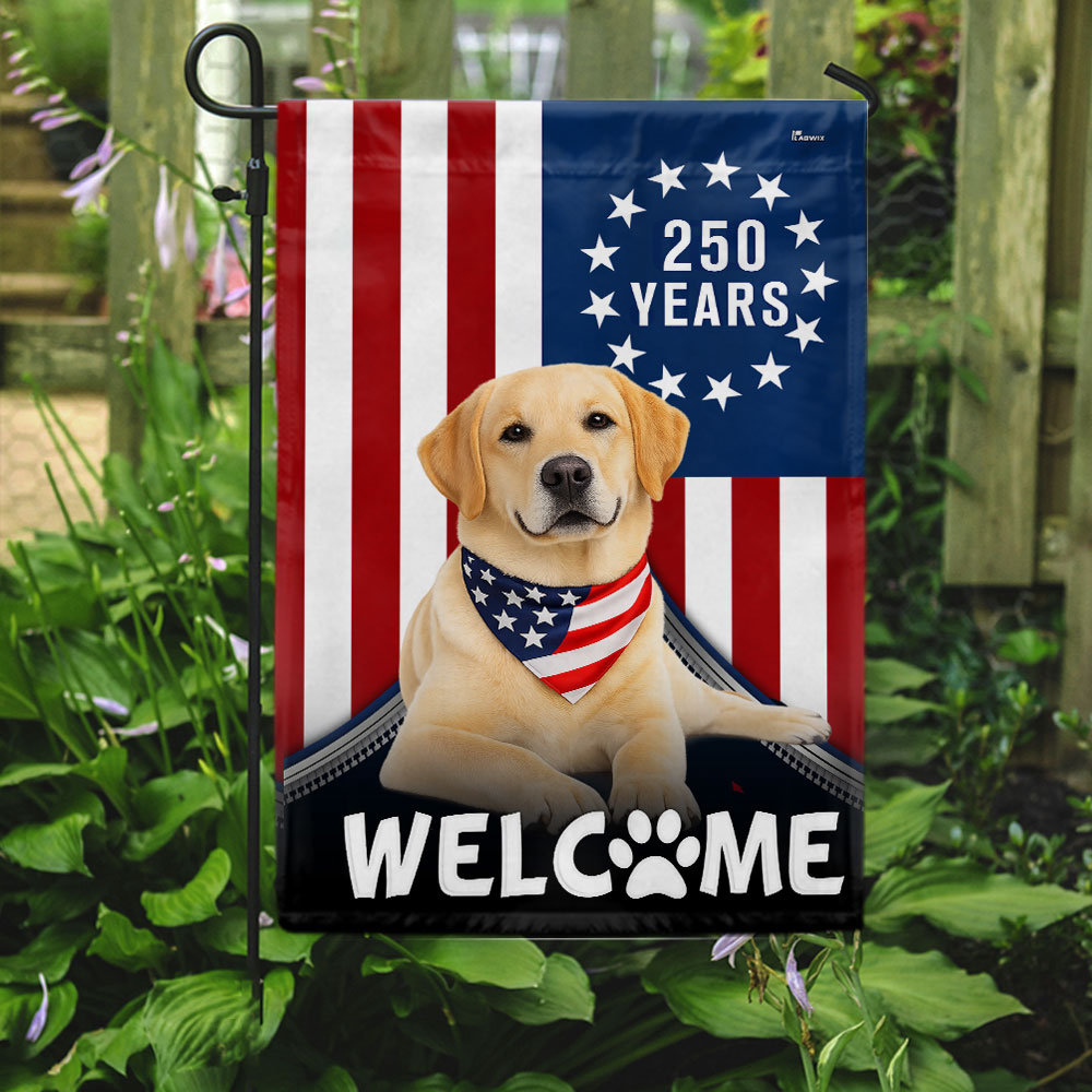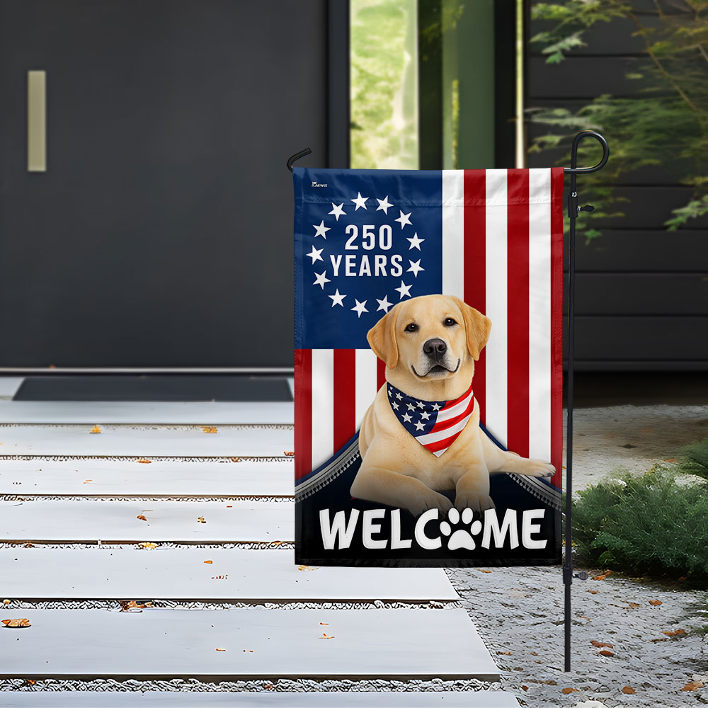 Patriotic Welcome Dog Garden Flag, 250 Years Labrador Retriever Flag Decor for Dog Lovers