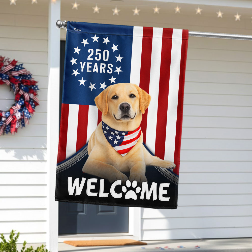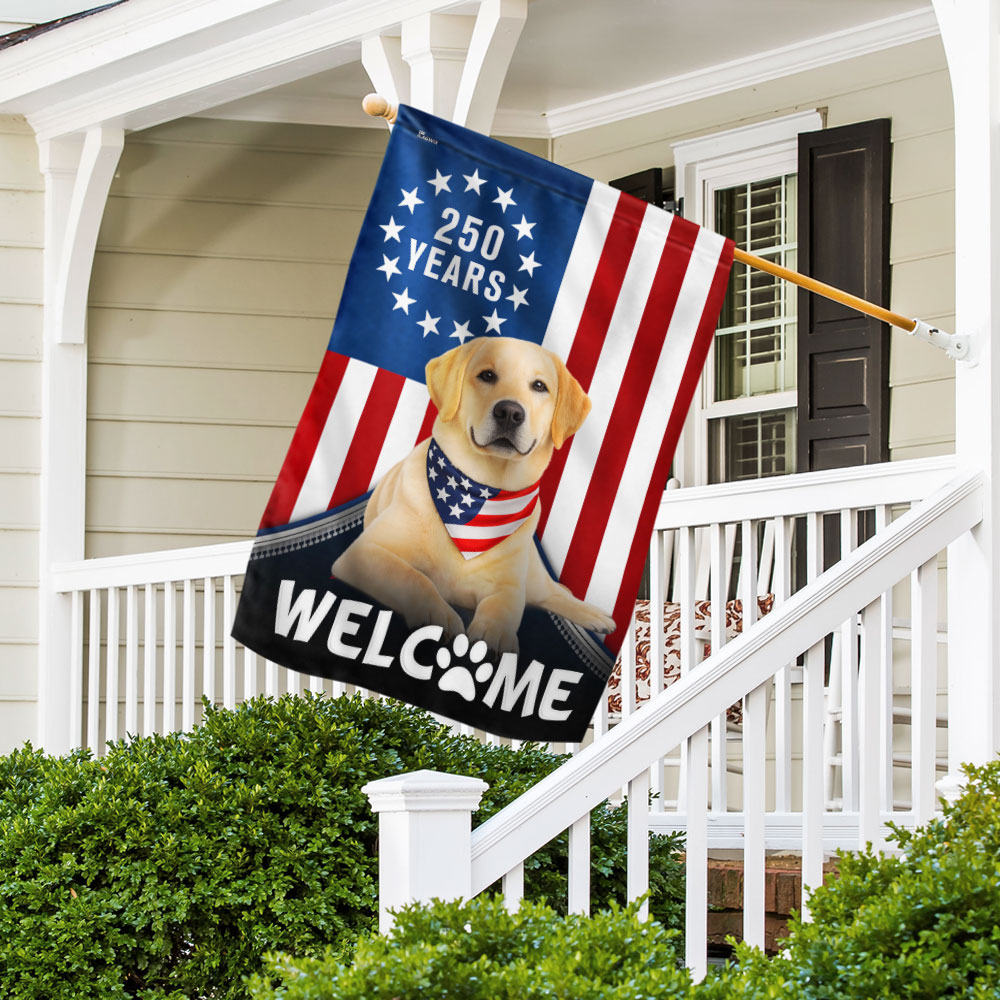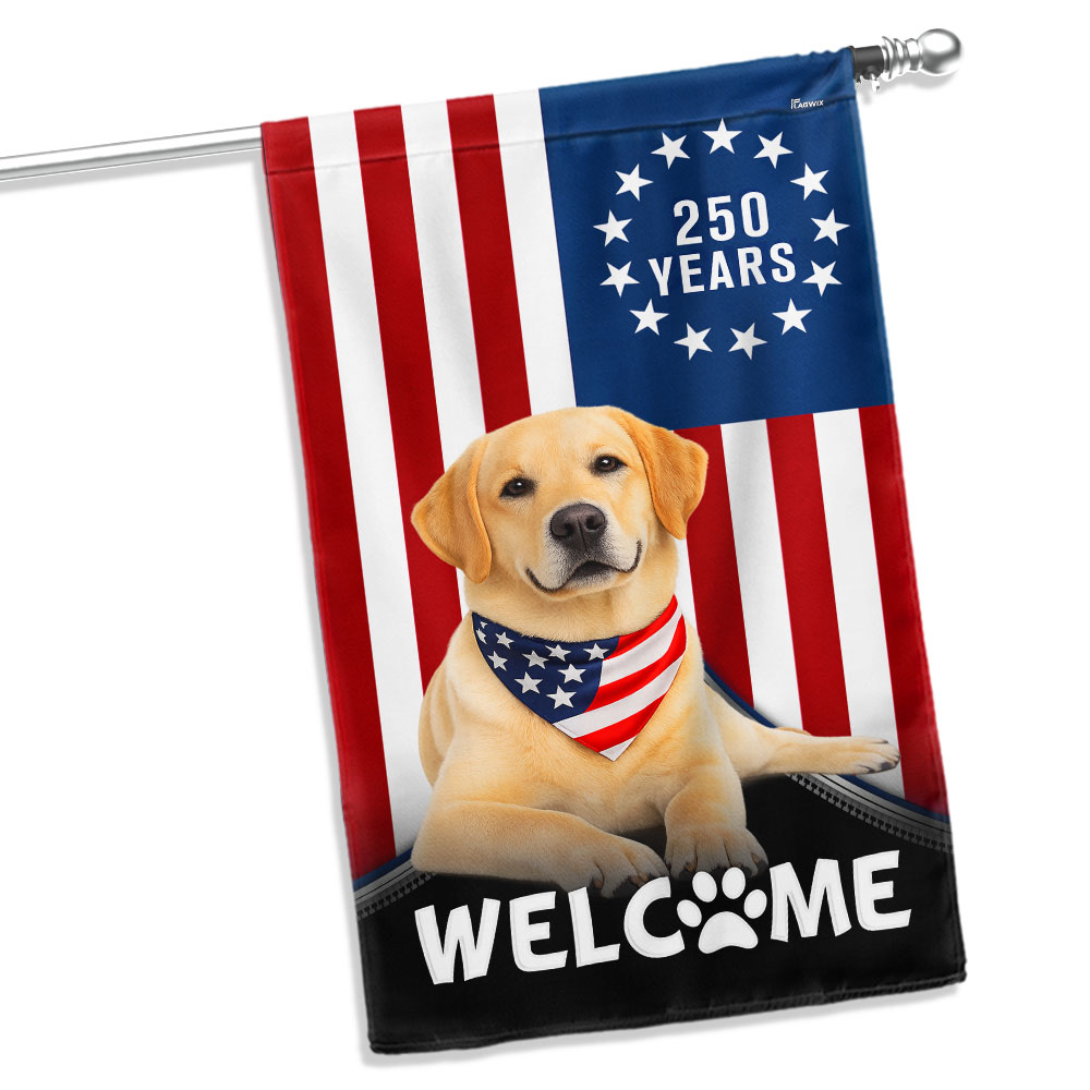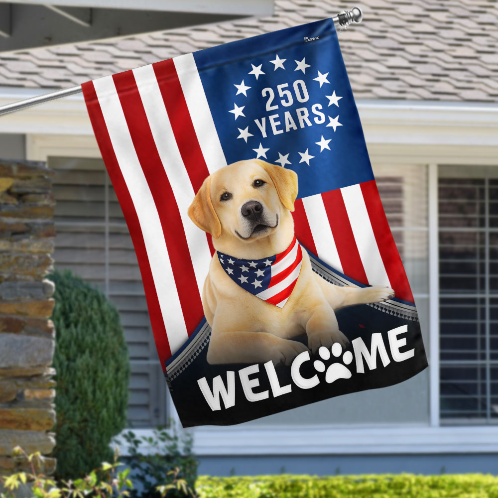 Patriotic Welcome Dog Garden Flag, 250 Years Labrador Retriever Flag Decor for Dog Lovers