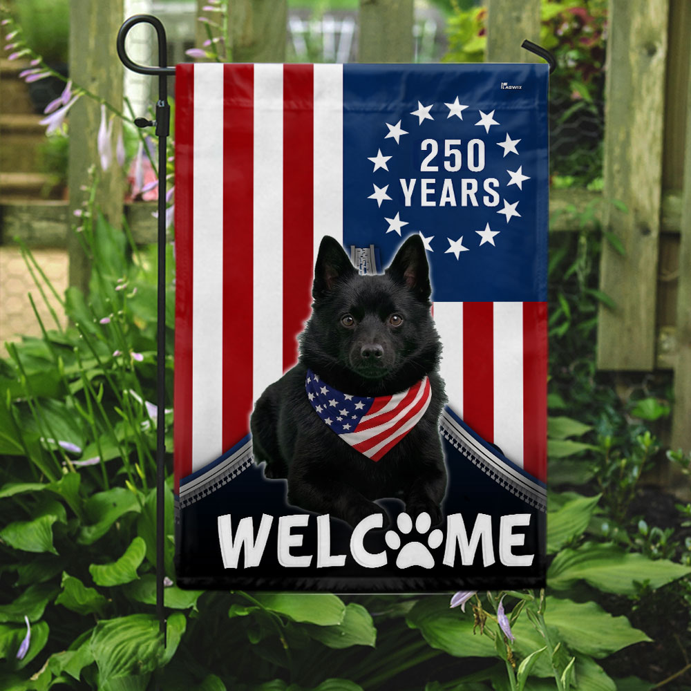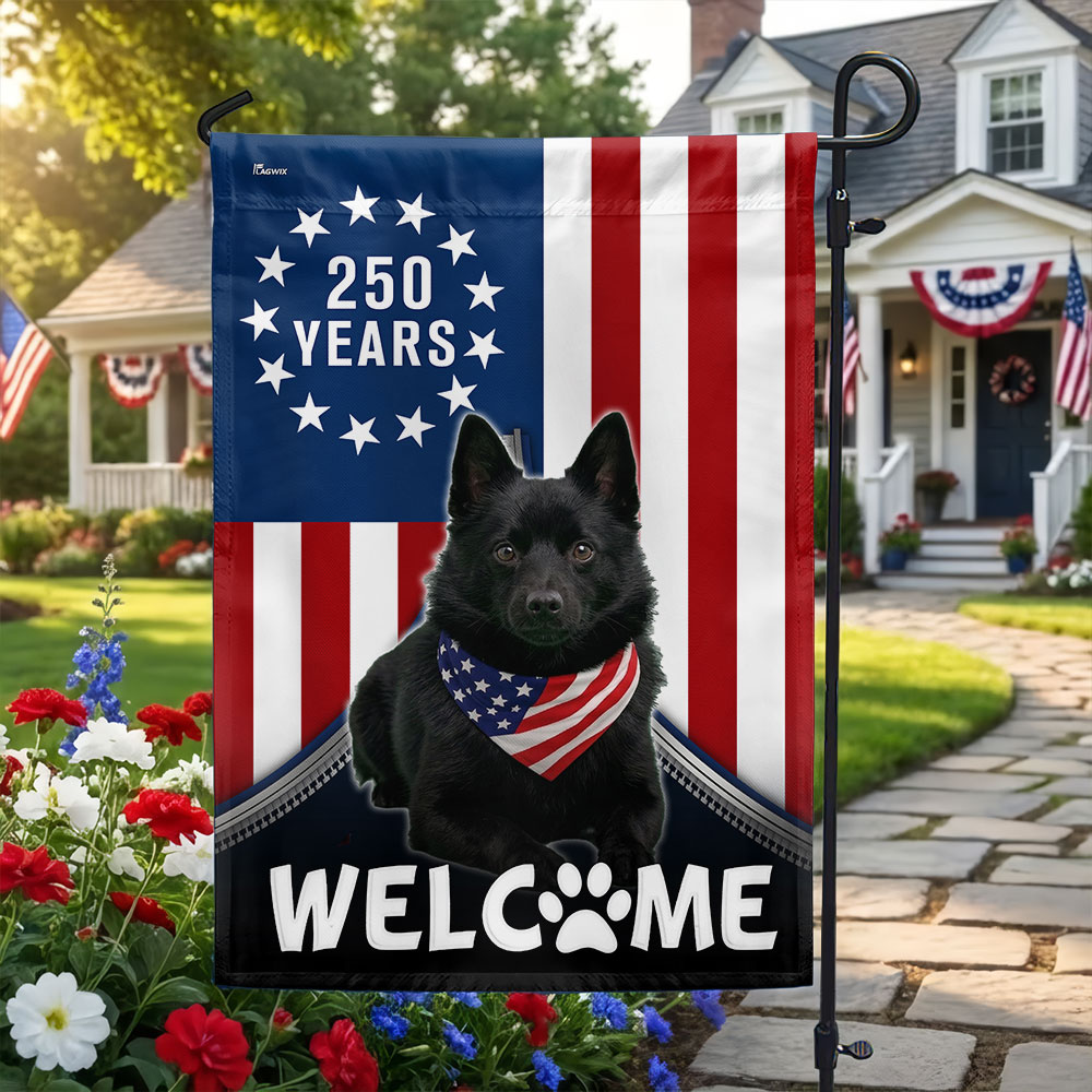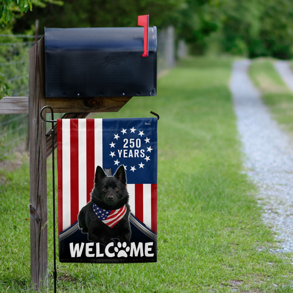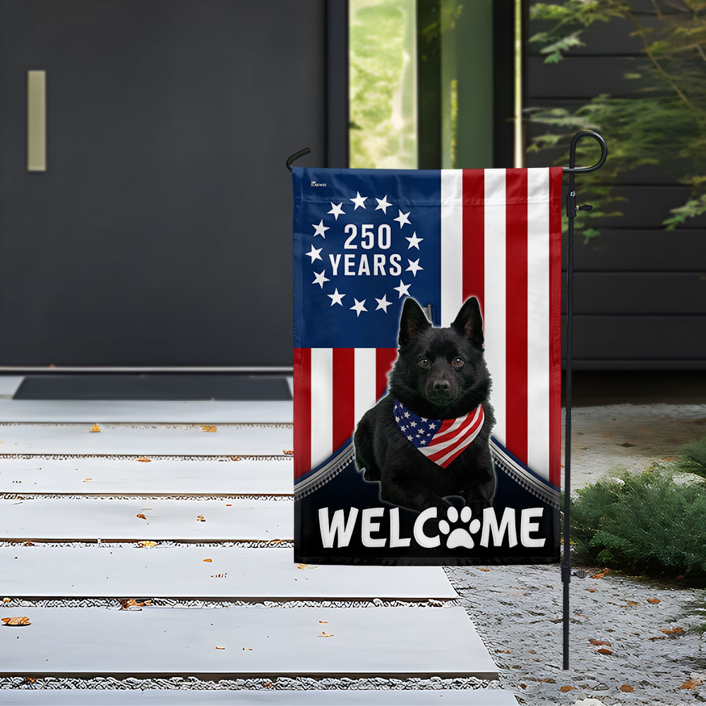 Patriotic Welcome Dog Garden Flag, 250 Years Schipperke 1776 2026 Flag Decor