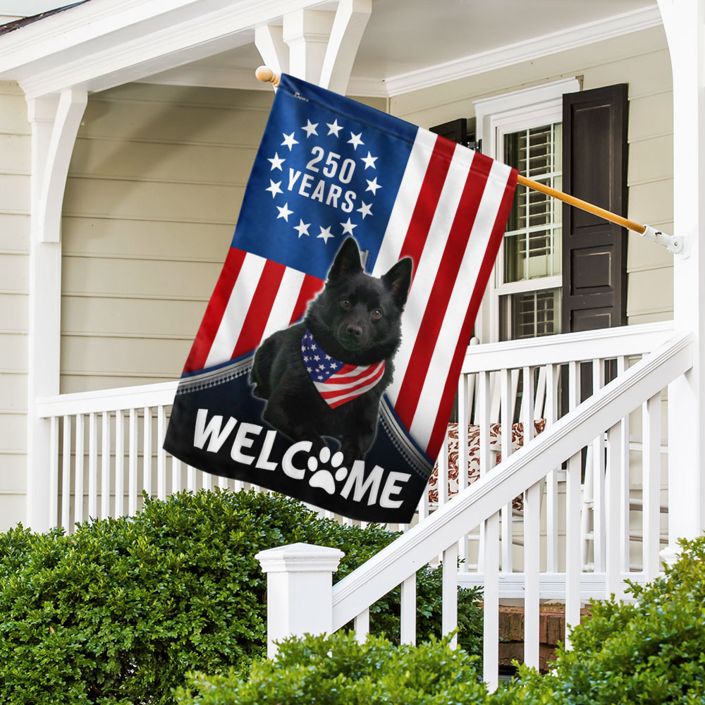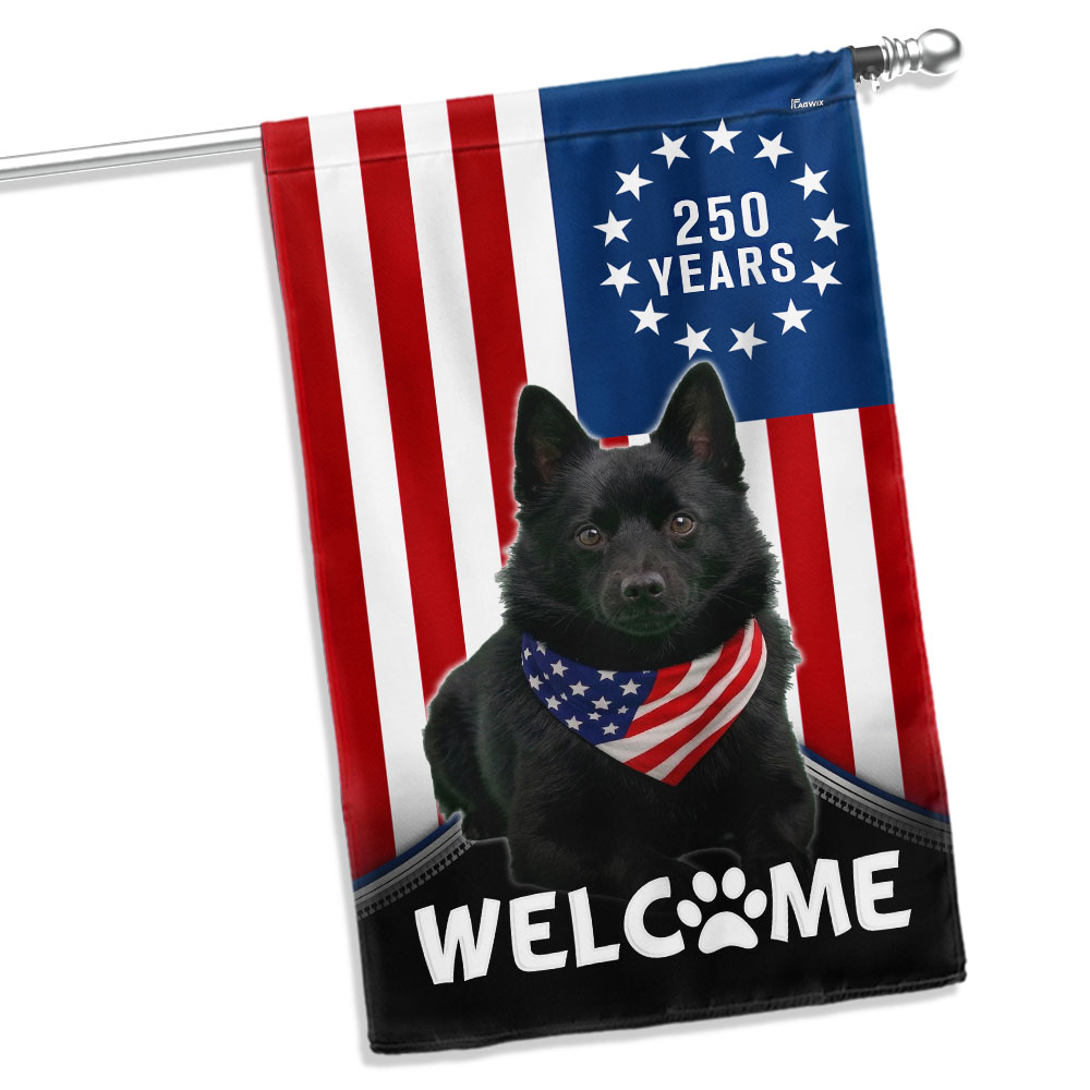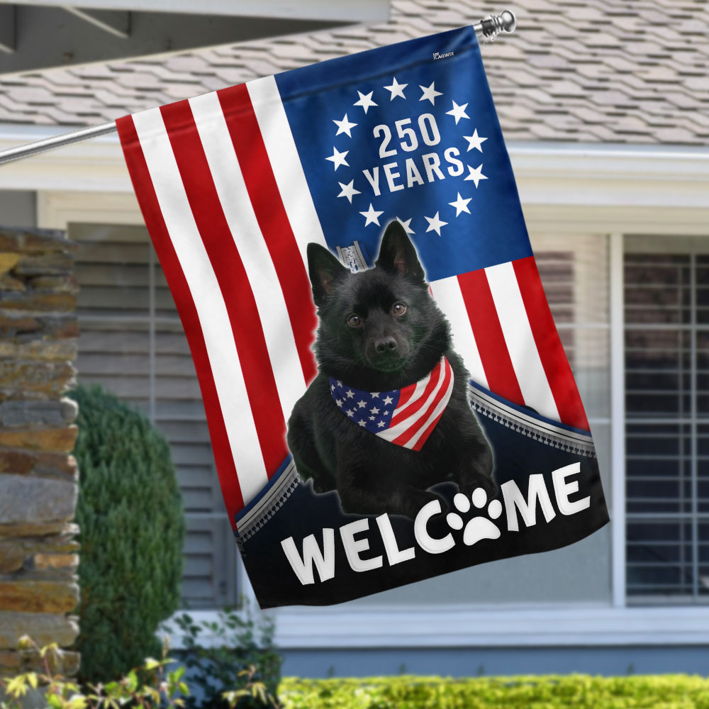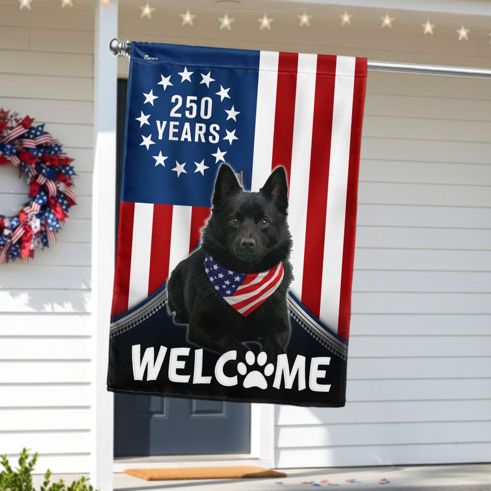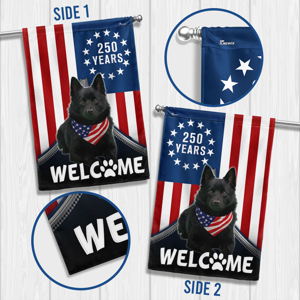 Patriotic Welcome Dog Garden Flag, 250 Years Schipperke 1776 2026 Flag Decor