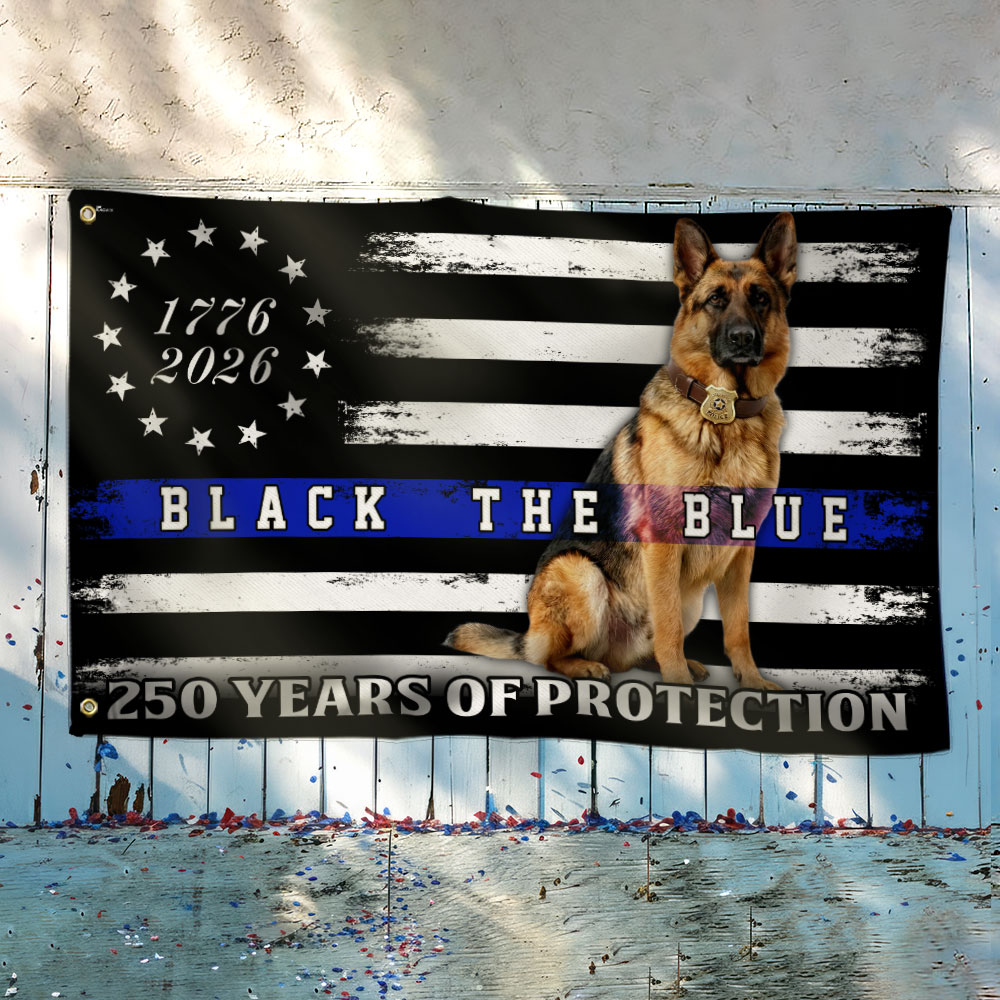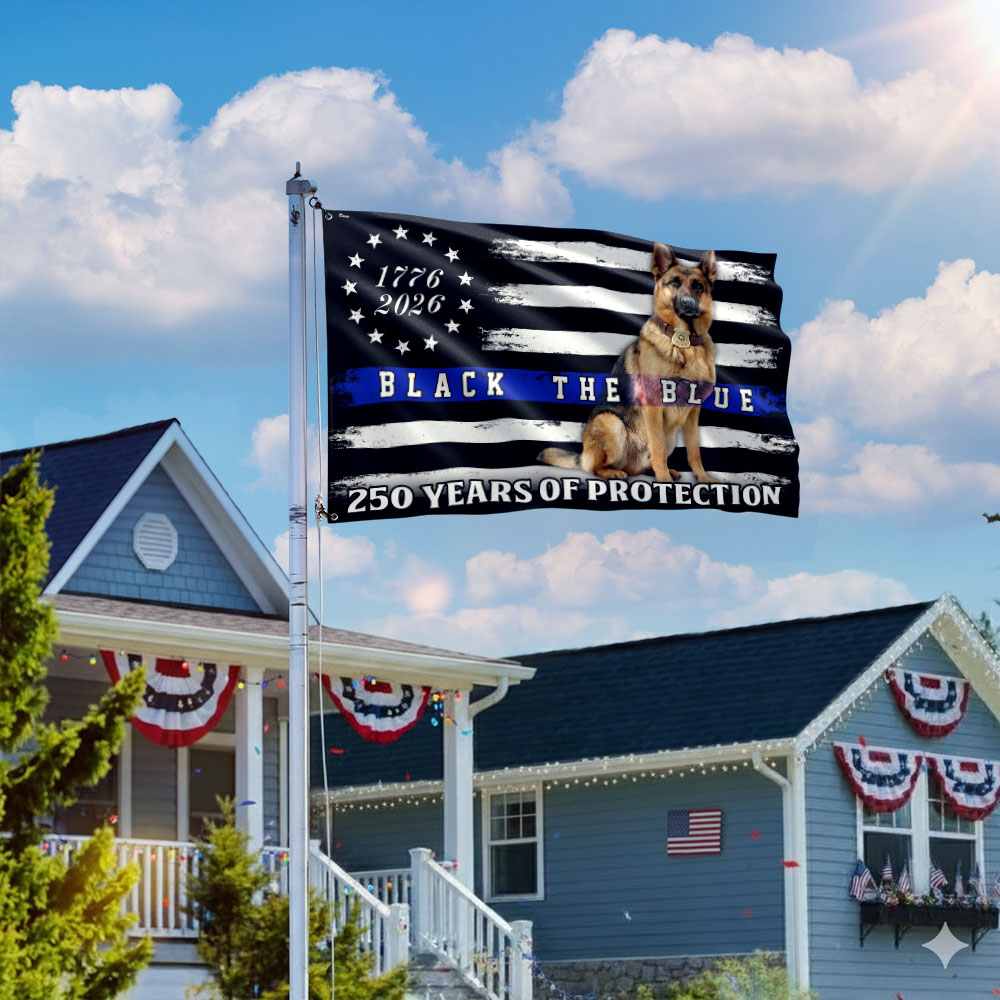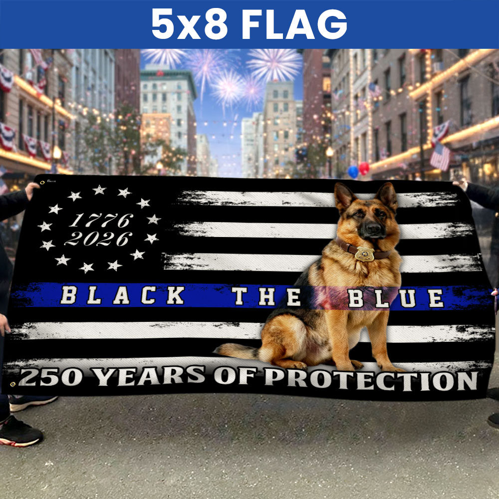 Police US Flag, 1776 2026 German Shepherd Thin Blue Line Grommet Flag