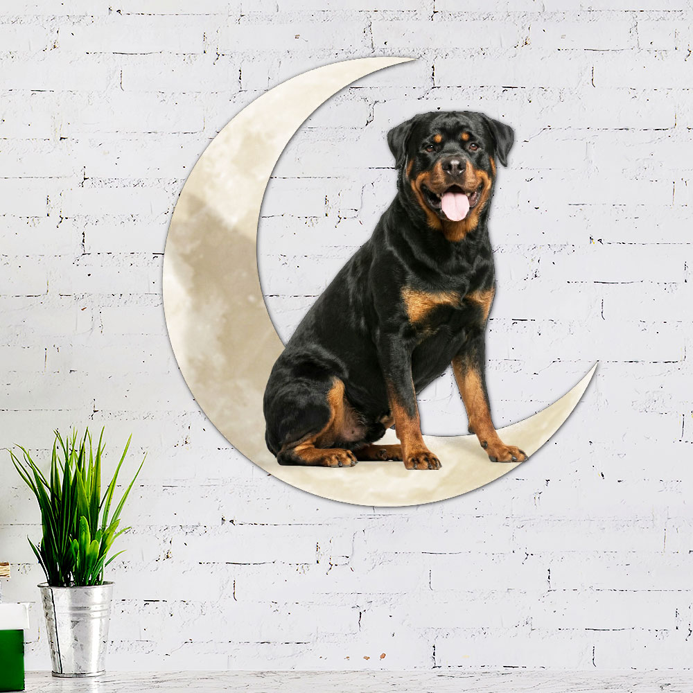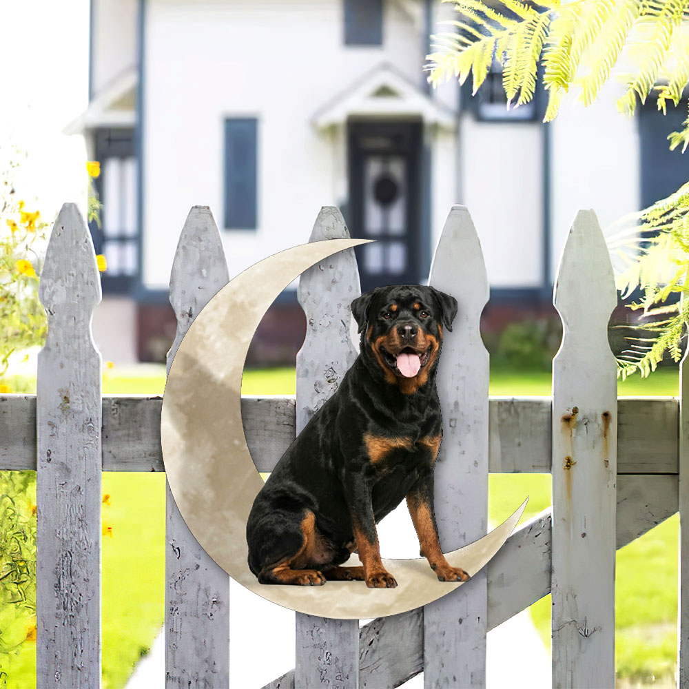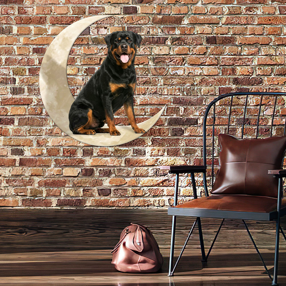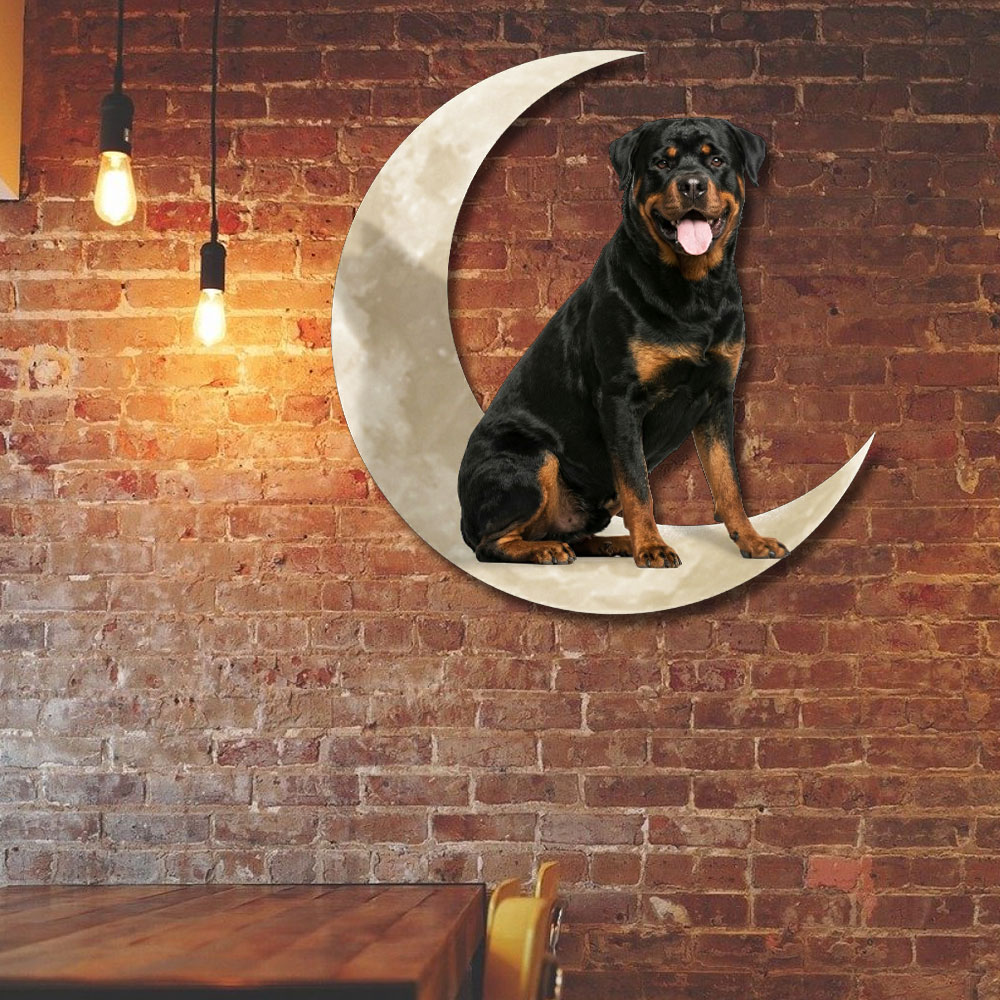 Rottweiler Dog And Moon Hanging Metal Sign