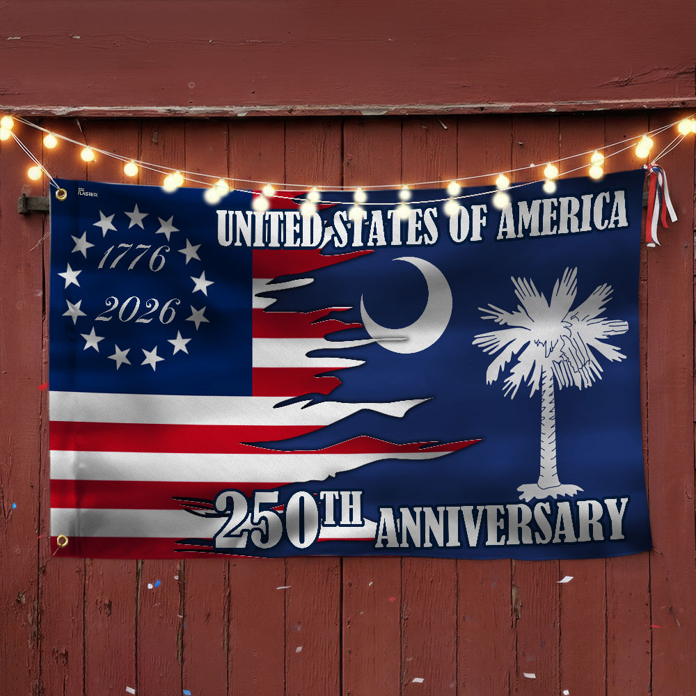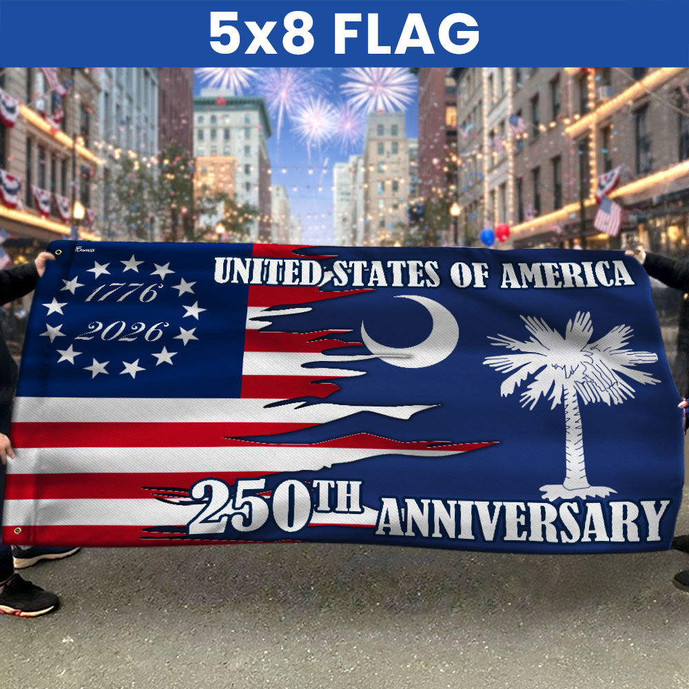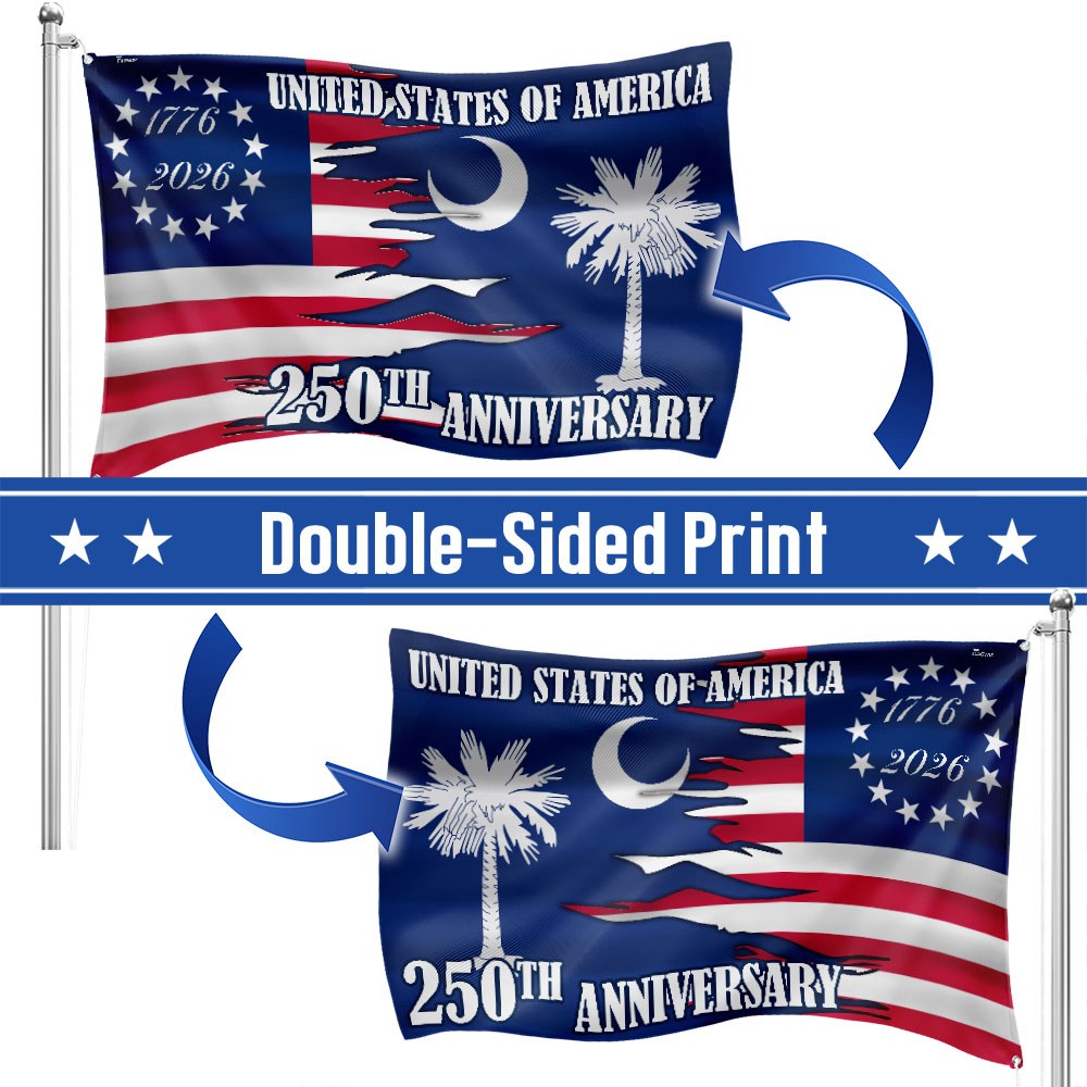 SC 250Th Anniversary Flag, 1776 2026 America South Carolina Grommet Flag