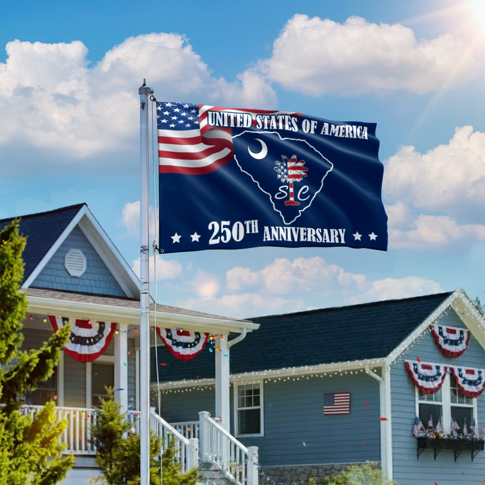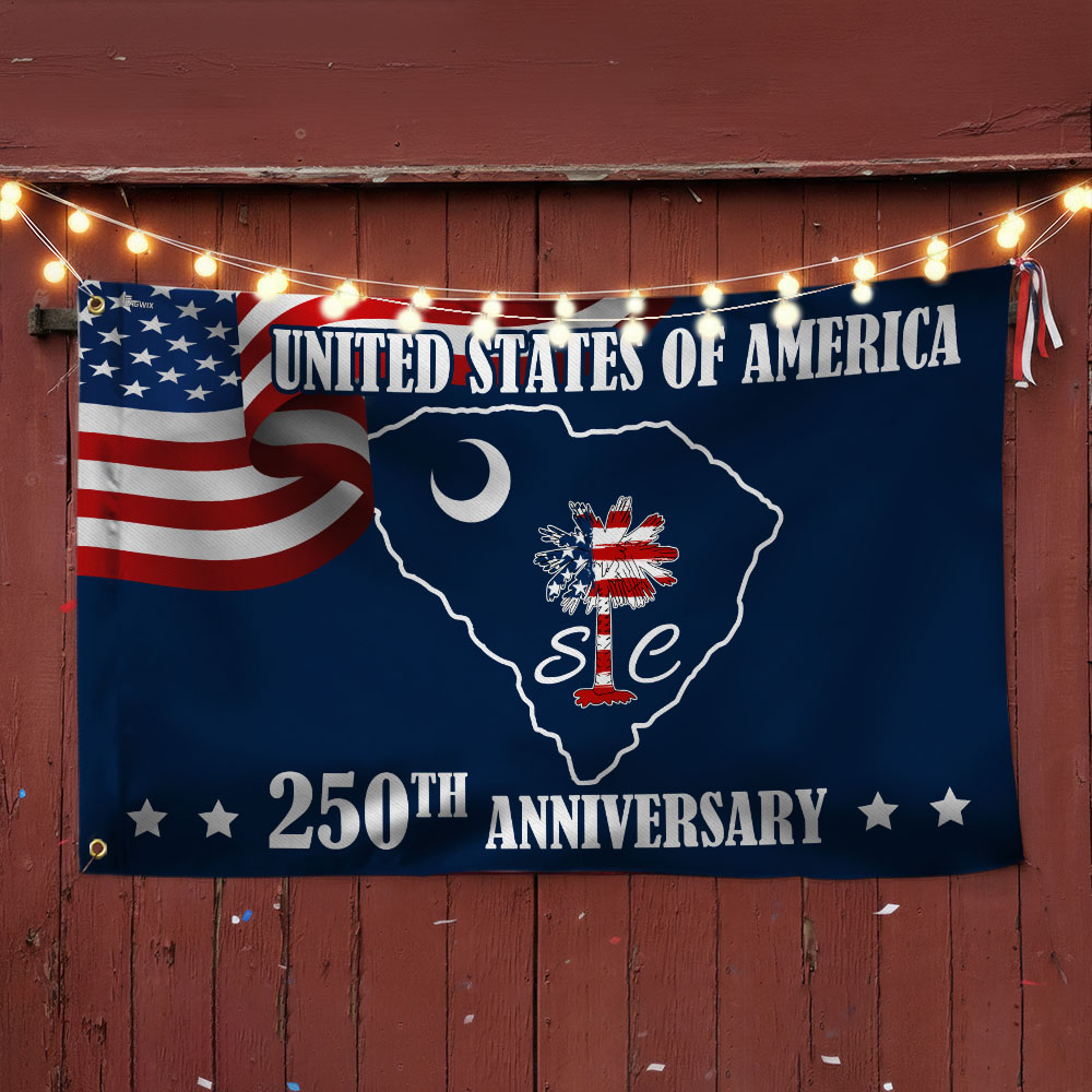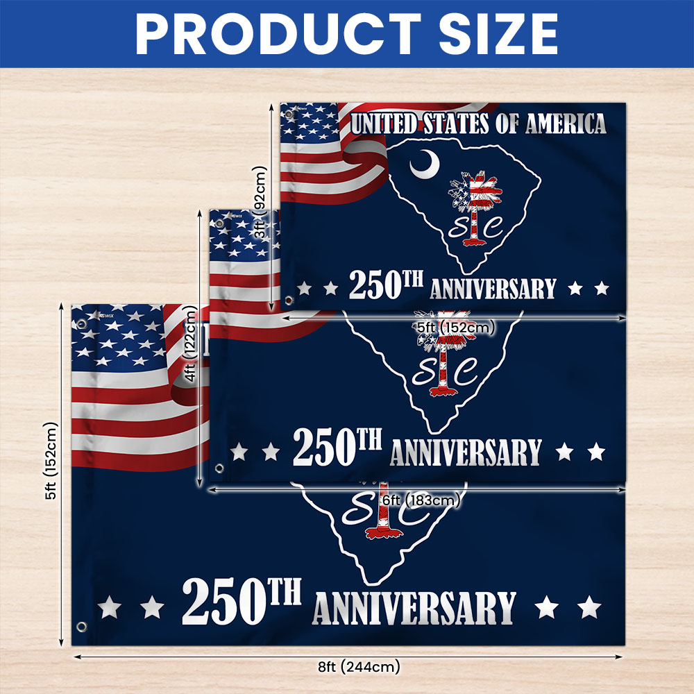 SC 250th Anniversary Patriotic Flag, South Carolina USA 1776–2026 Decor