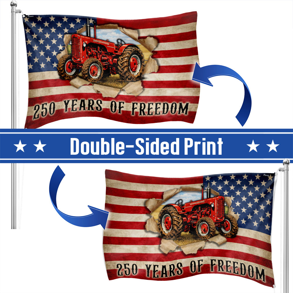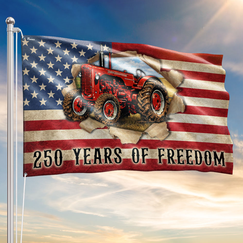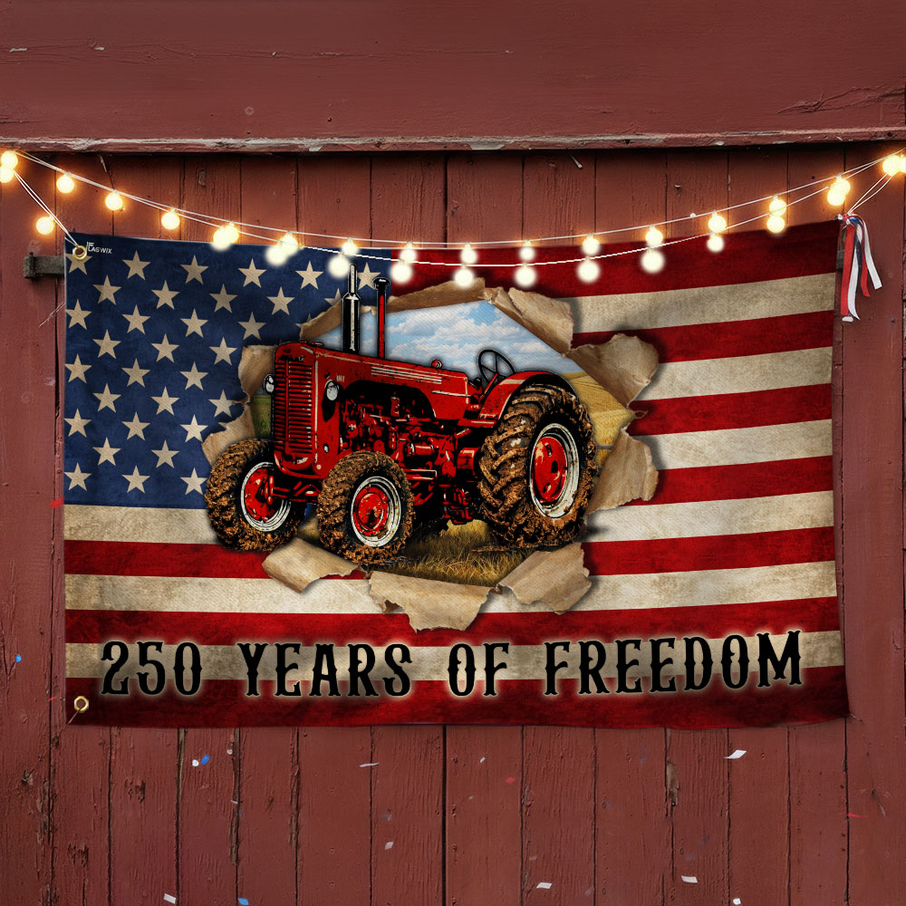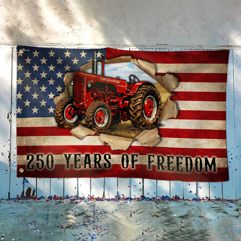 Tractor Farmer Flag, 250 Years of Freedom Red Tractor Grommet Flag