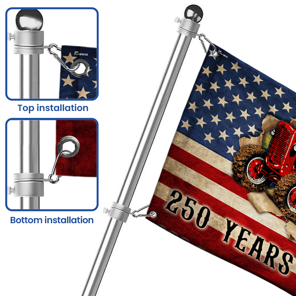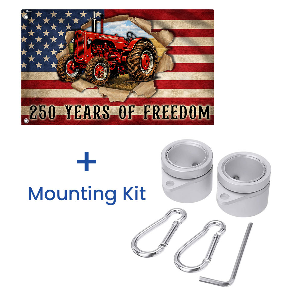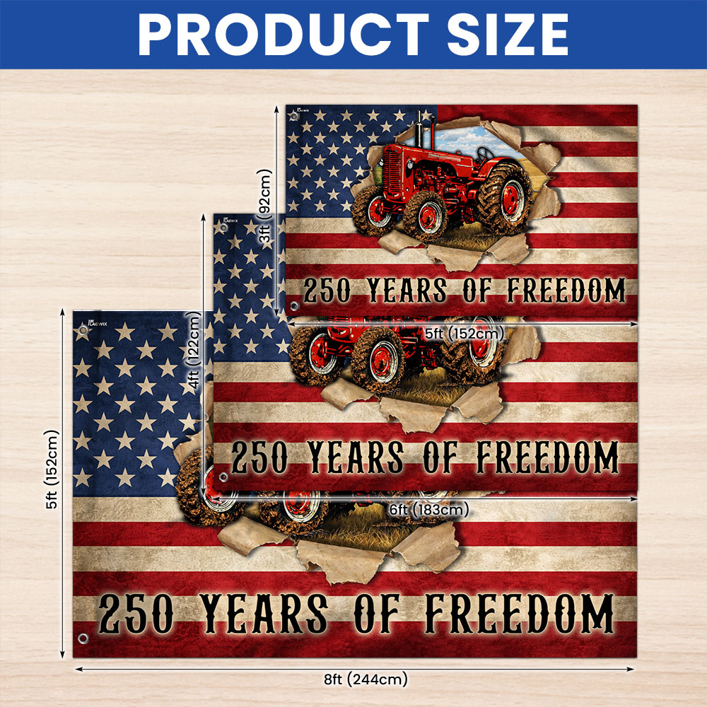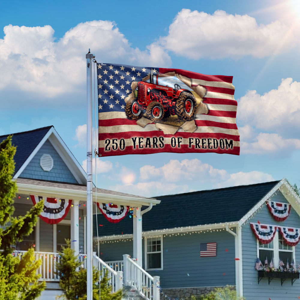 Tractor Farmer Flag, 250 Years of Freedom Red Tractor Grommet Flag