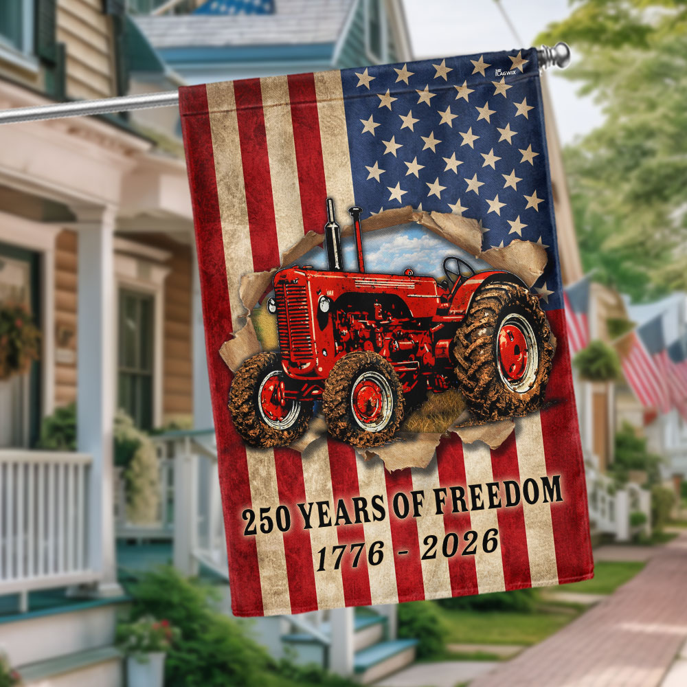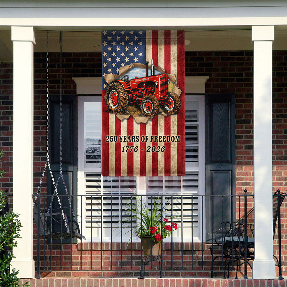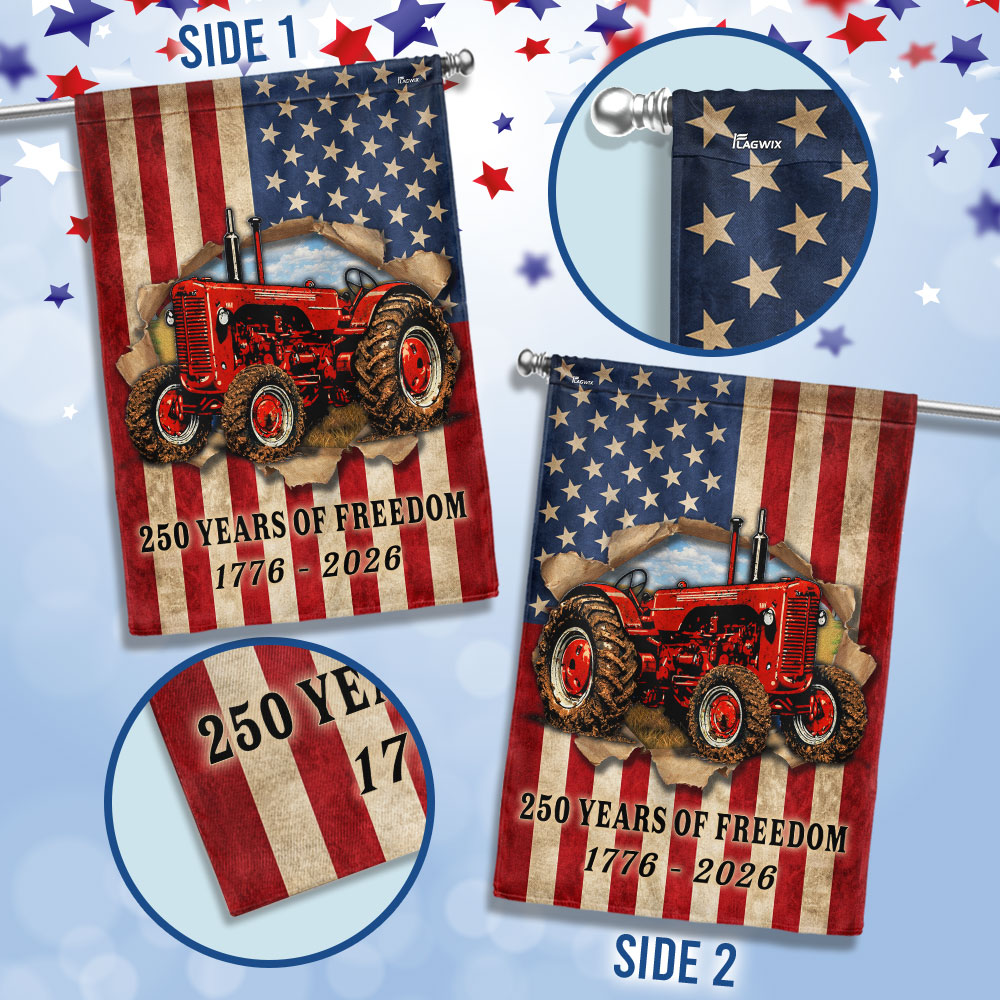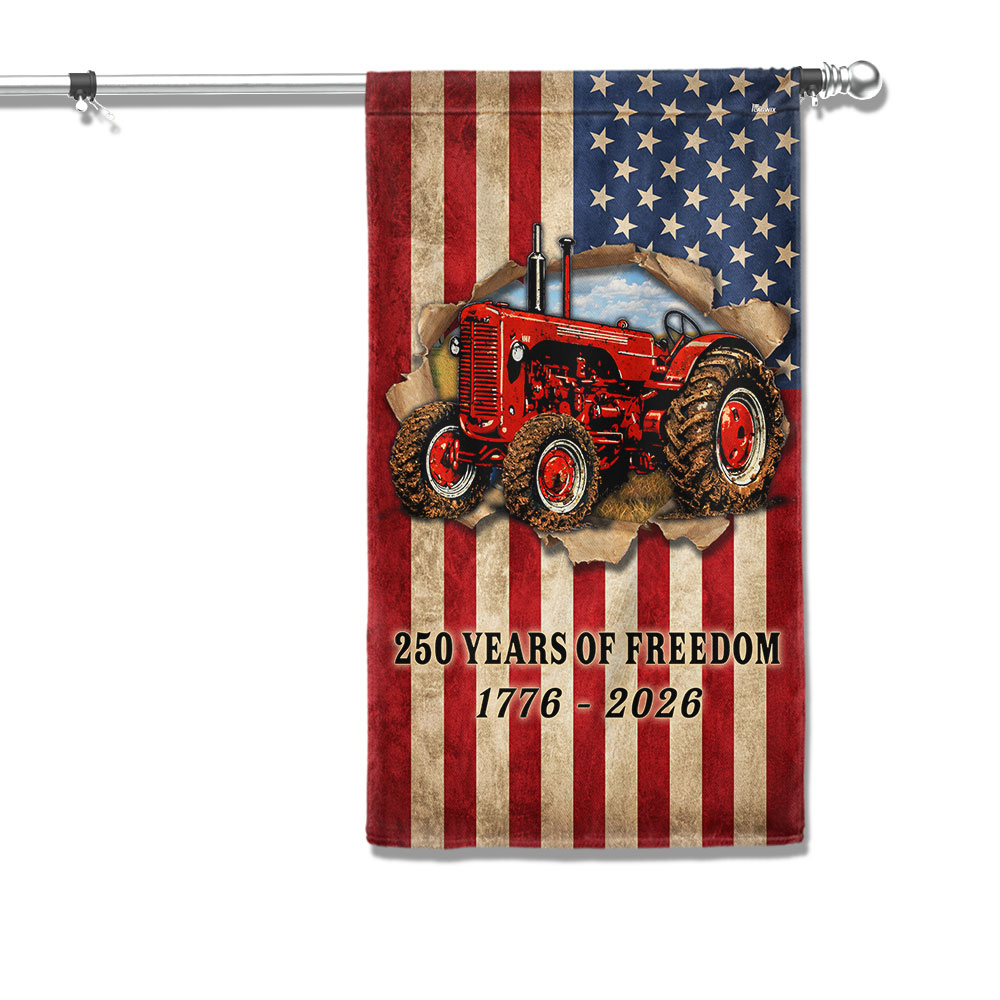 Tractor Farmer Flag, 250 Years of Freedom Red Tractor US Flag
