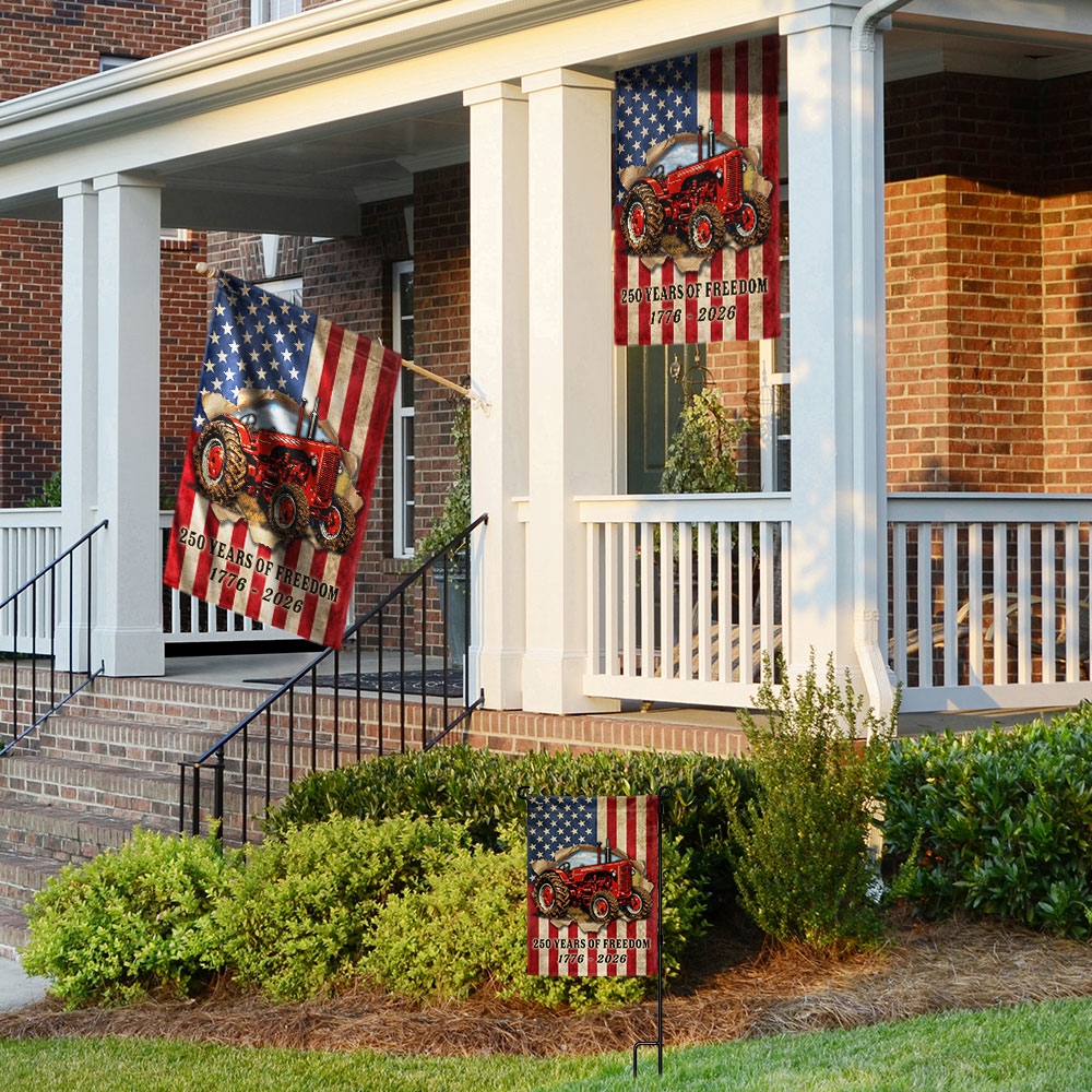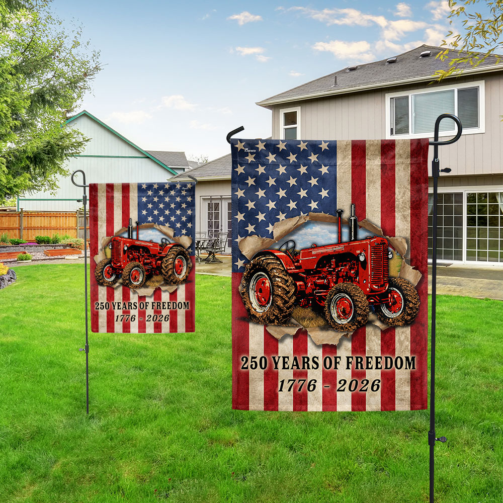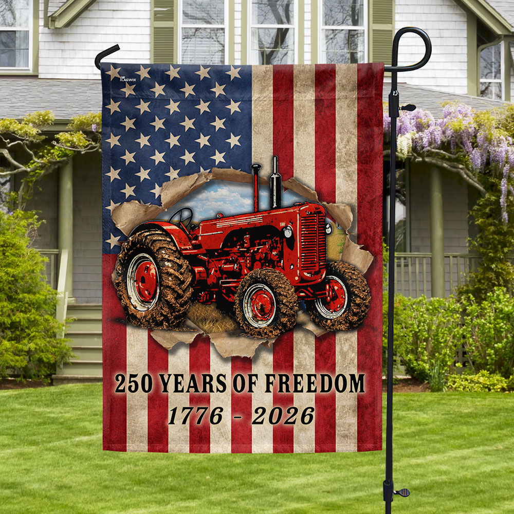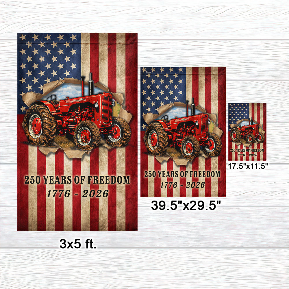 Tractor Farmer Flag, 250 Years of Freedom Red Tractor US Flag