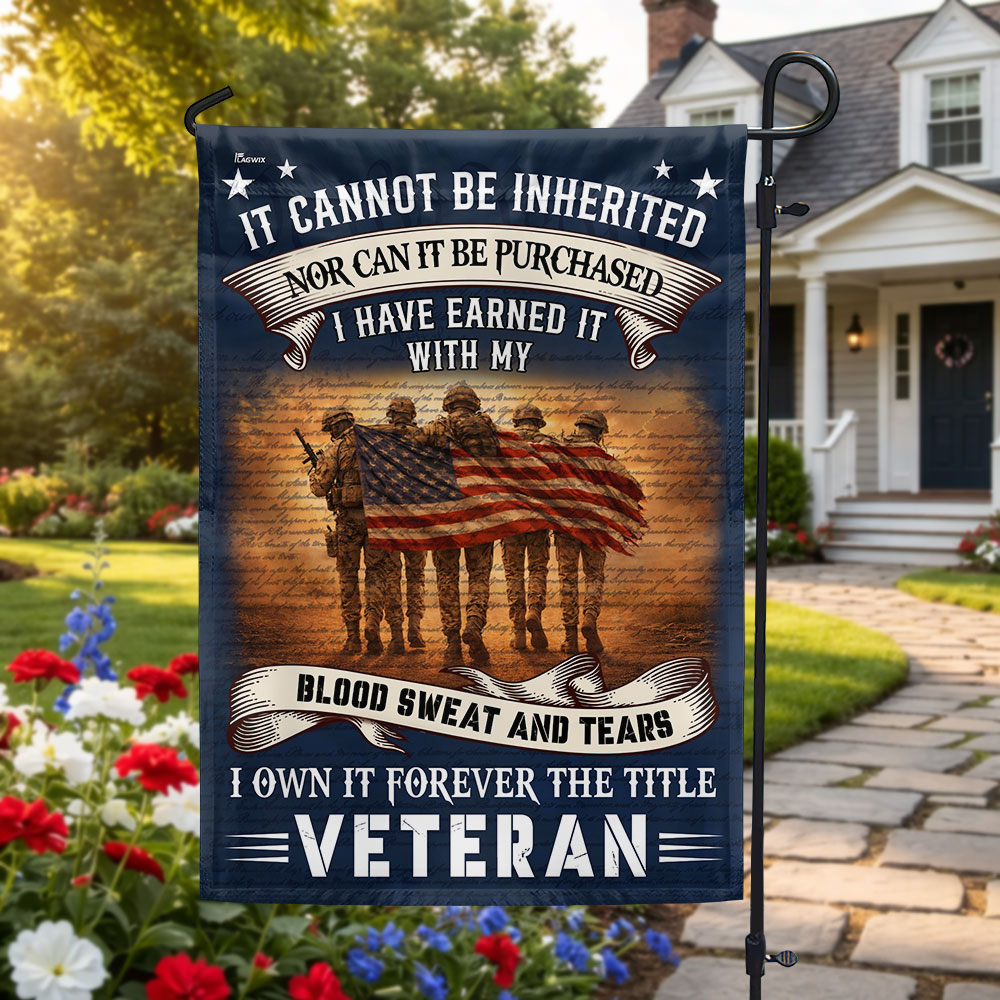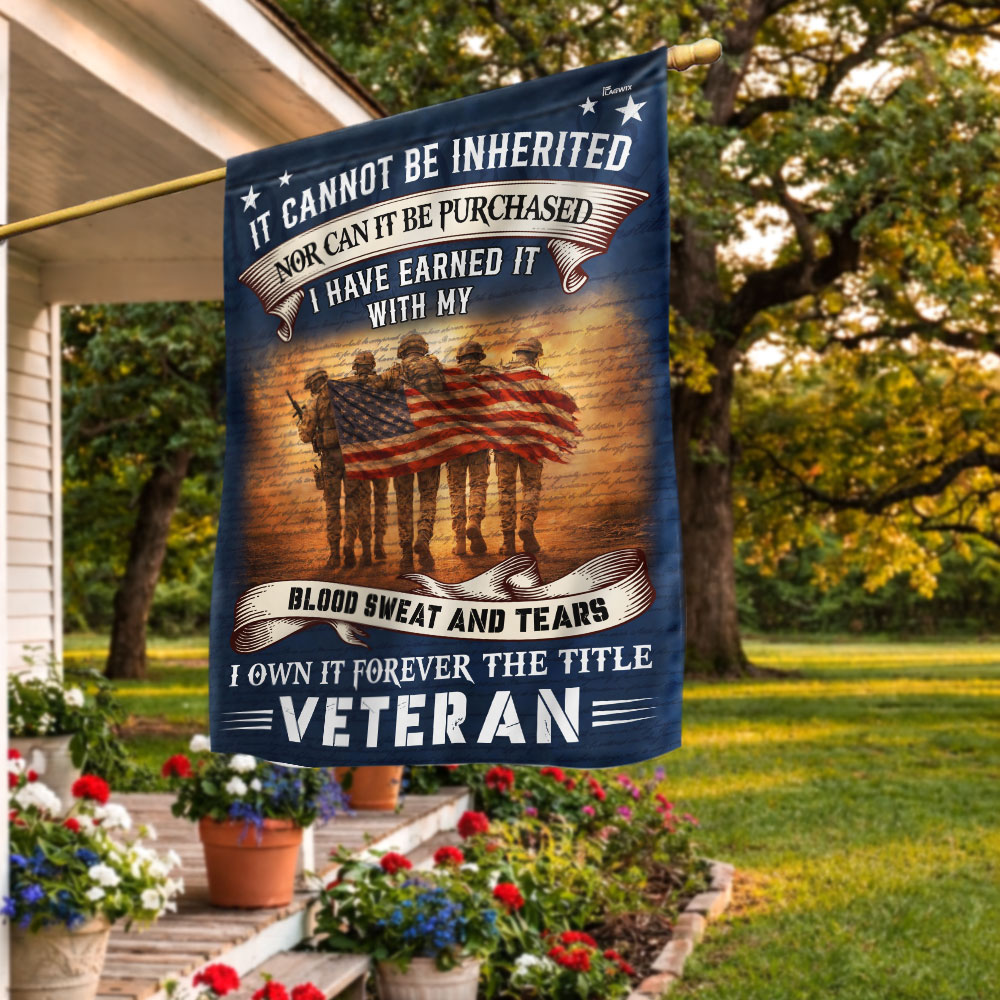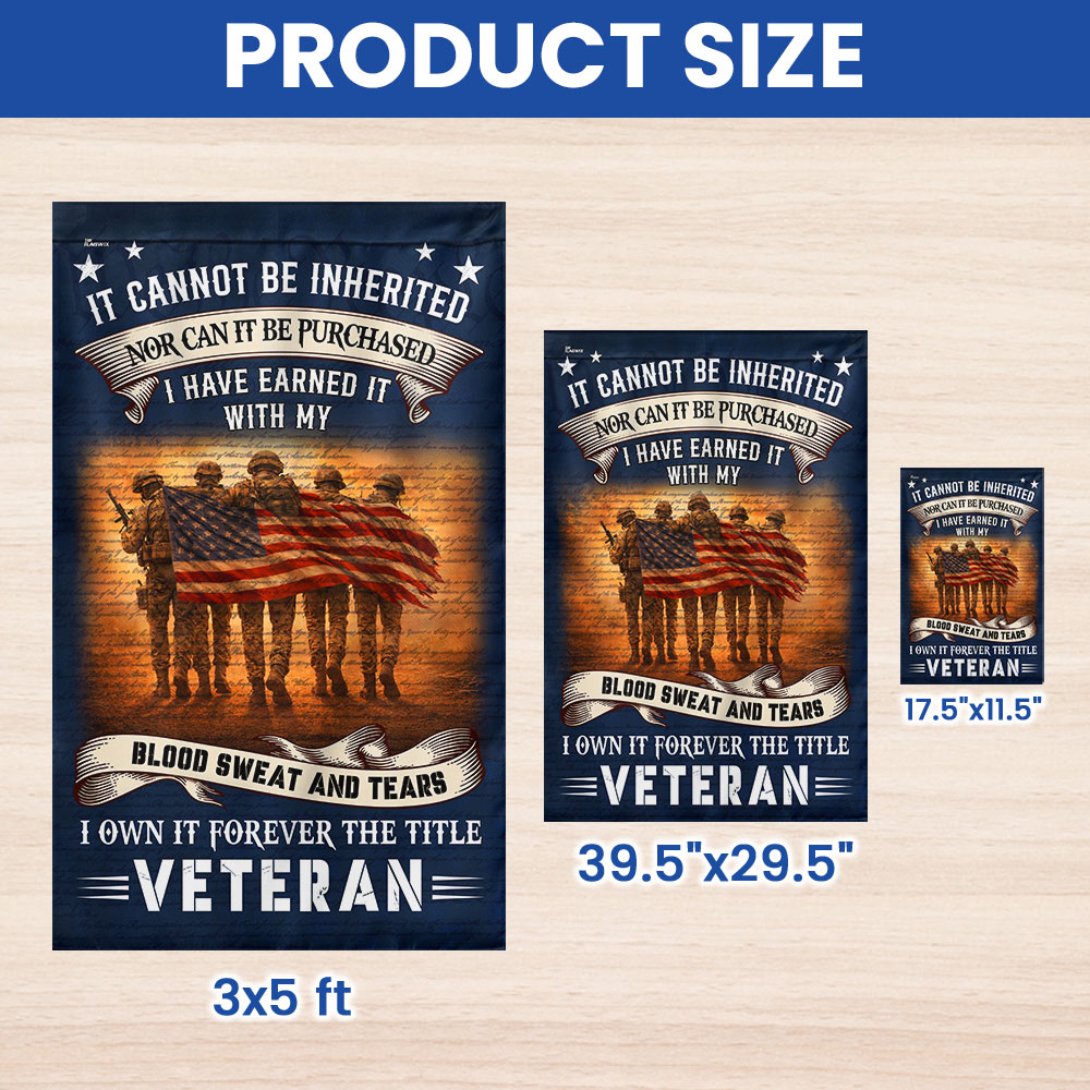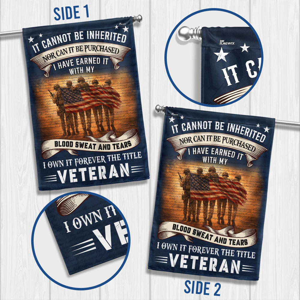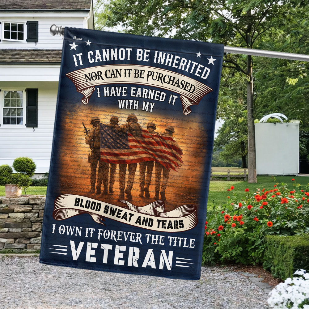 Veteran American Flag, It Cannot Be Inherited Blood Sweat and Tears Decor