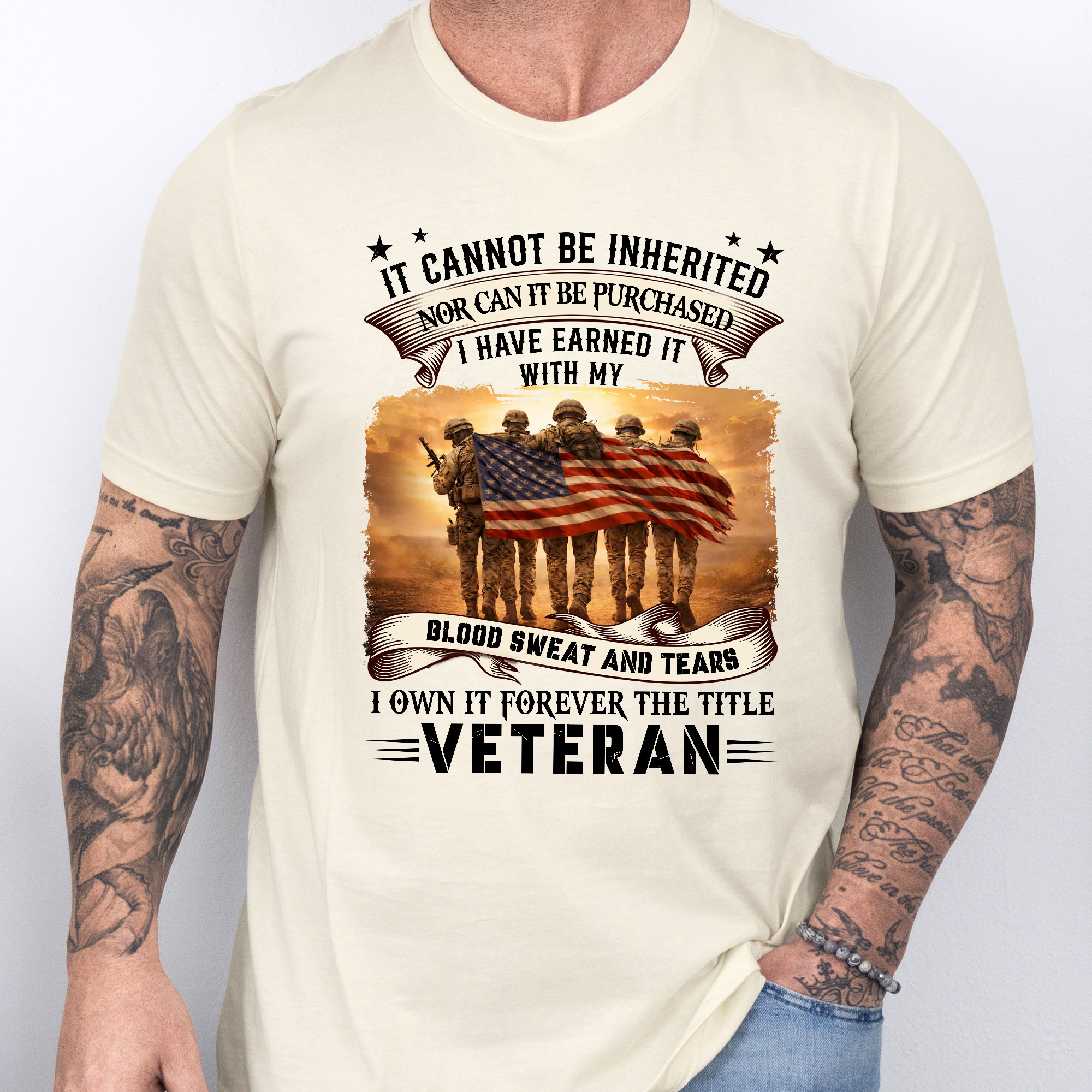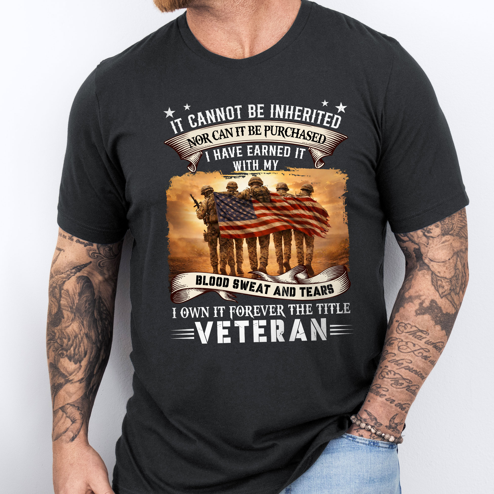 Veteran Shirt, It Cannot Be Inherited Blood Sweat and Tears T-shirt