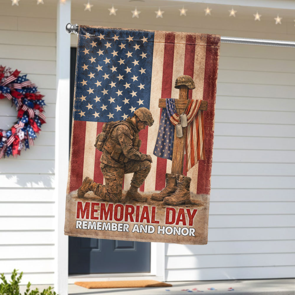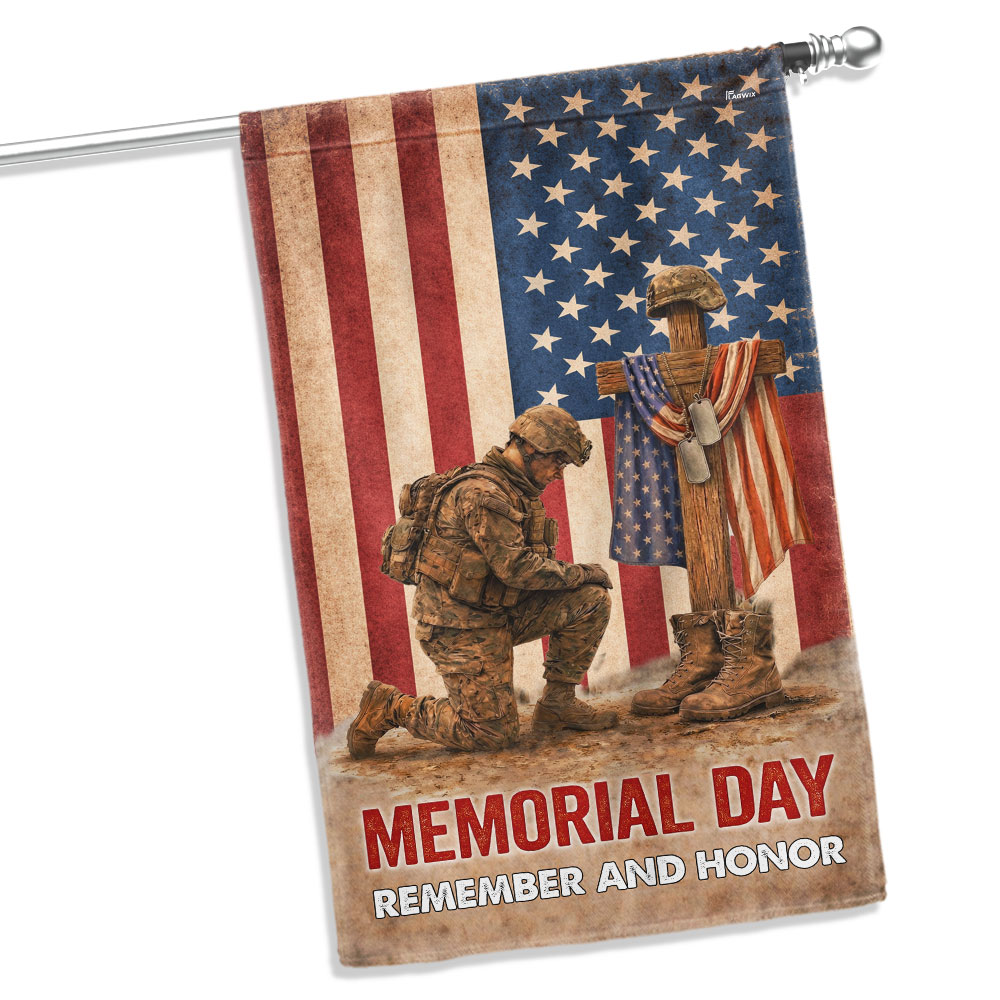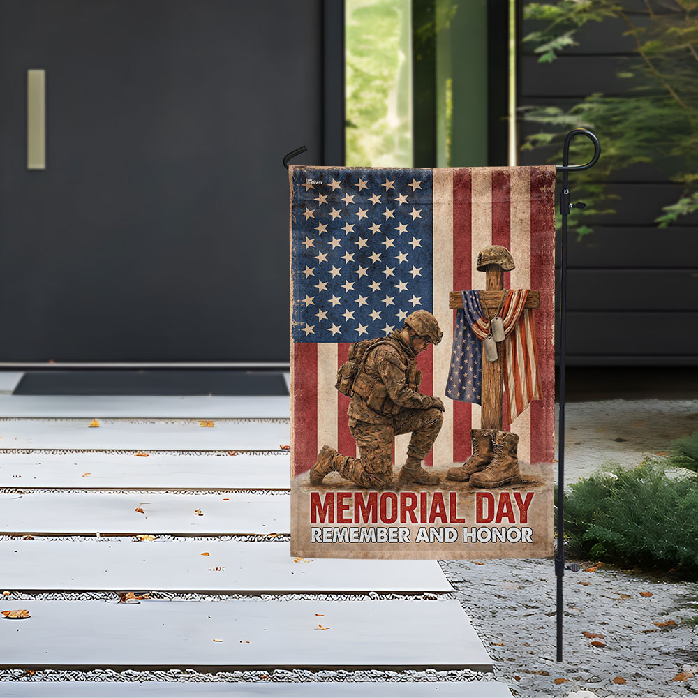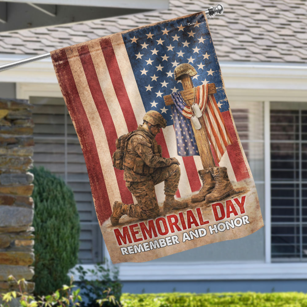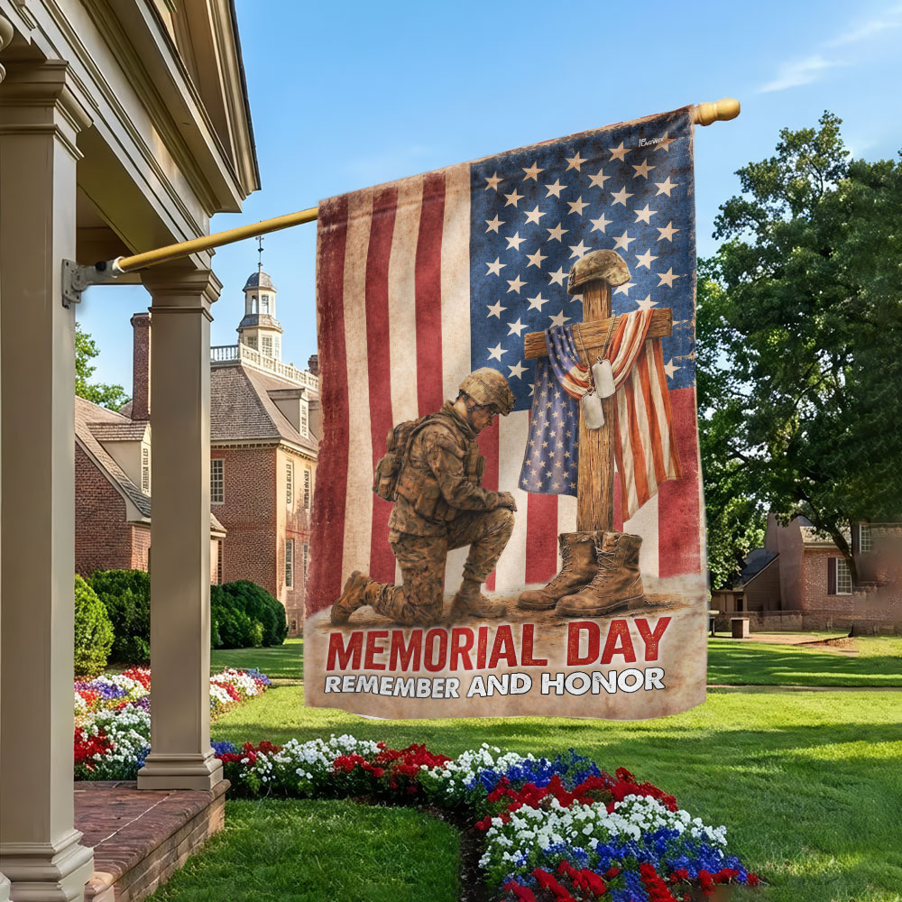 Vintage Memorial Day Flag, Remember and Honor Patriotic Cross US Flag