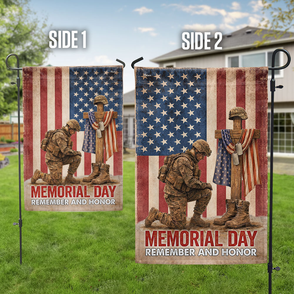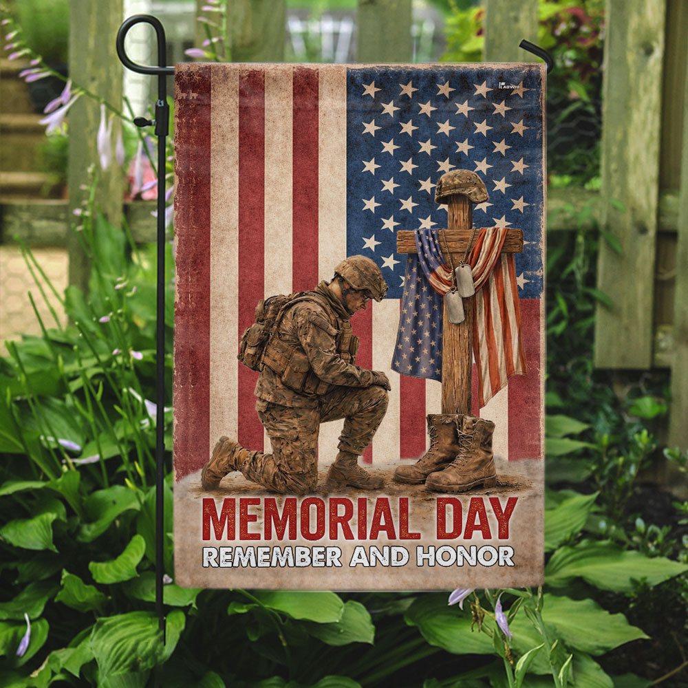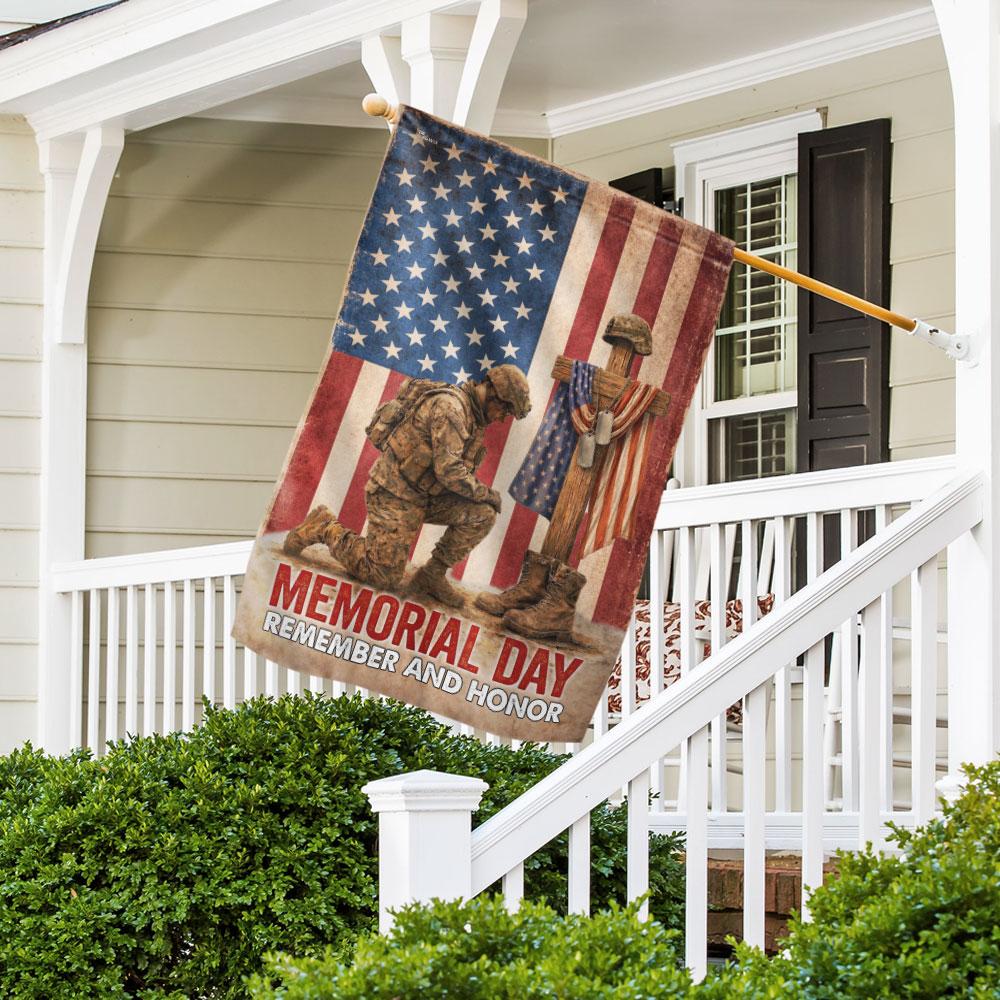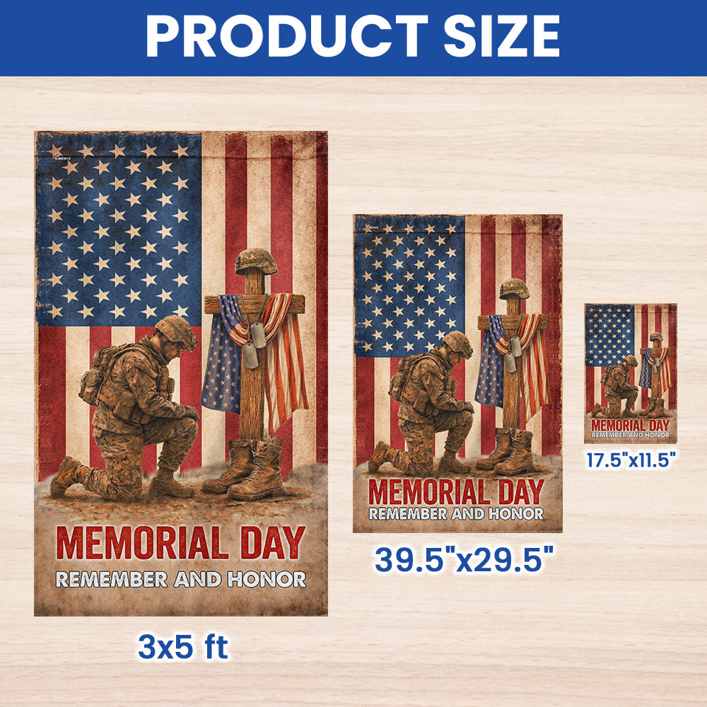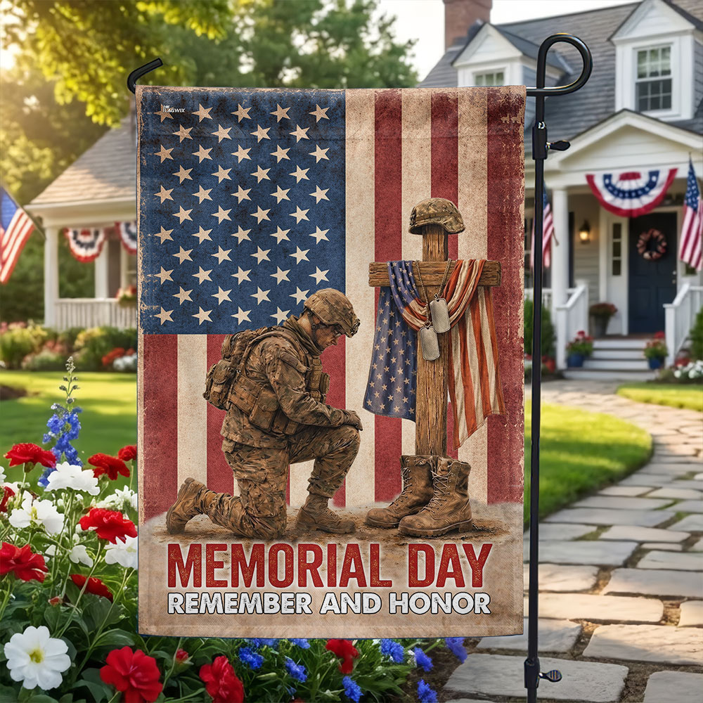 Vintage Memorial Day Flag, Remember and Honor Patriotic Cross US Flag